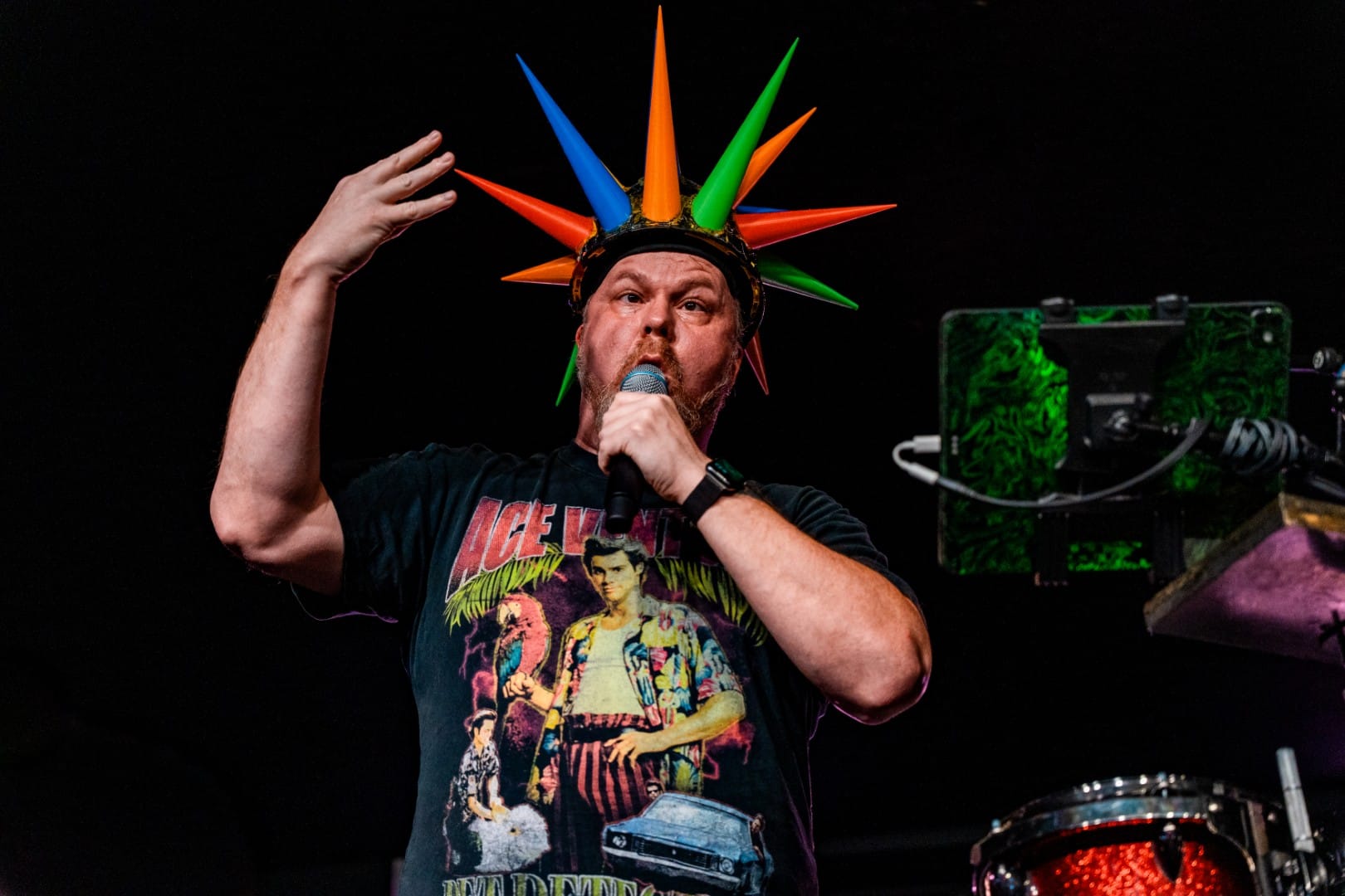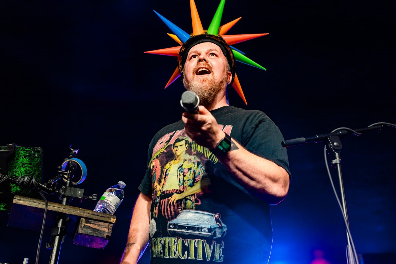With the opening track “Eye to Eye,” they spared no time and immediately sprayed water into the eager crowd from their signature water drums. Before long, vocalists Scott Beck and Steve Rauckhorst had already jumped off of the stage, with Beck launching himself into the crowd to surf and sing.