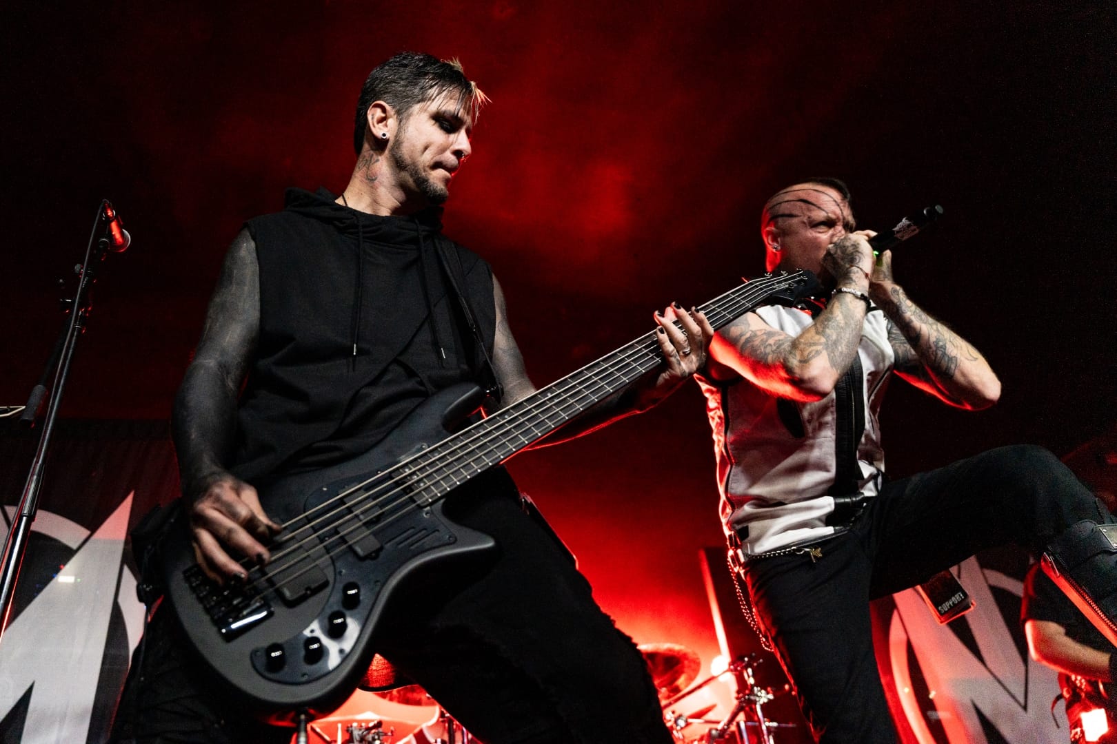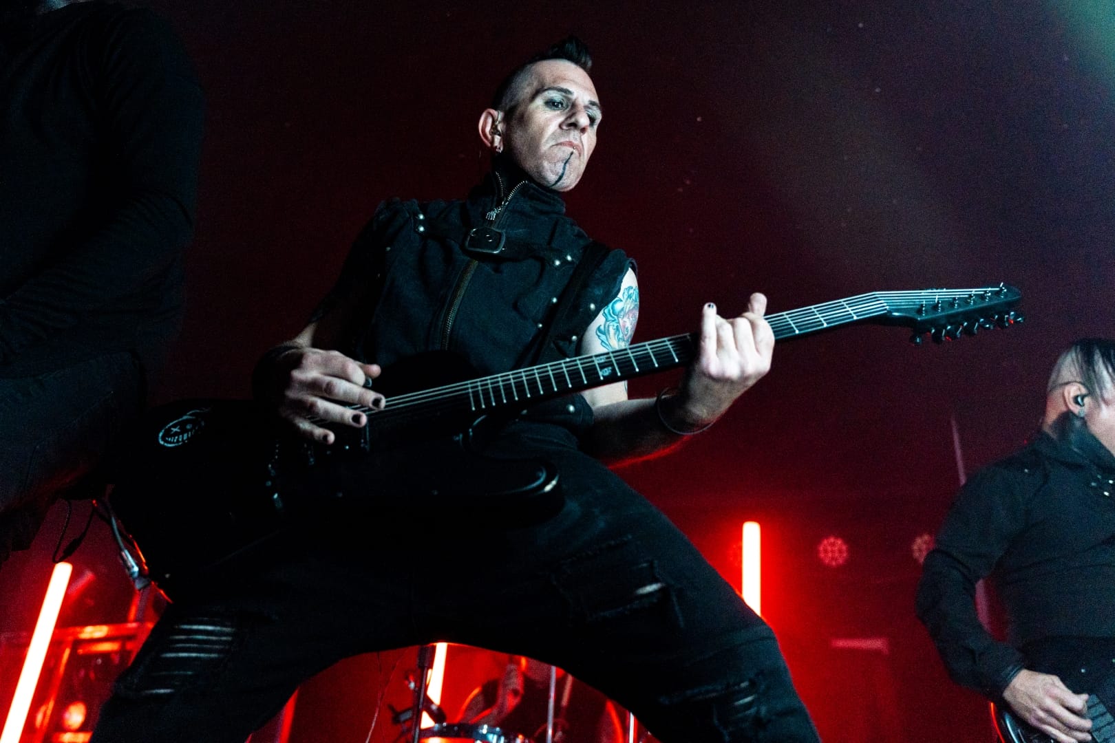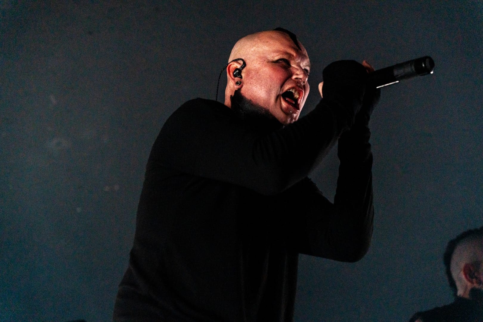 Industrial rockers There Is No Us hit the stage in near-darkness, only illuminated by a few pulsing light bars. The atmosphere was just right for their mix of metal and industrial, with more than a few punk riffs and elements to boot. The crowd was hungry for more aggressive tracks, and vocalist Jim Louvau immediately jumped from the stage to the barricade to rile up the crowd even more. The variety of the tracks, from the electronic elements, harsh vocals, and chugging riffs made for a set that easily worked alongside more traditional metal acts. Towards the close of their set, they also brought out a cover, with “Killing in the Name Of” by Rage Against the Machine also managing to start a mosh pit.