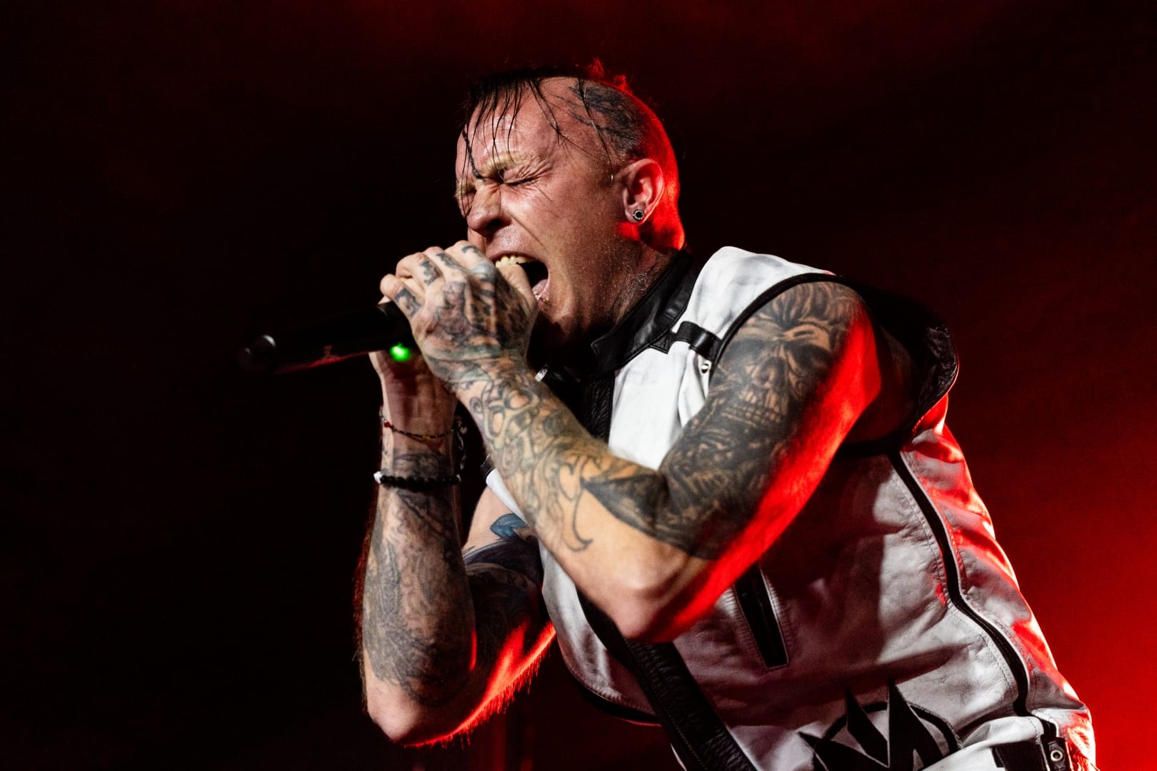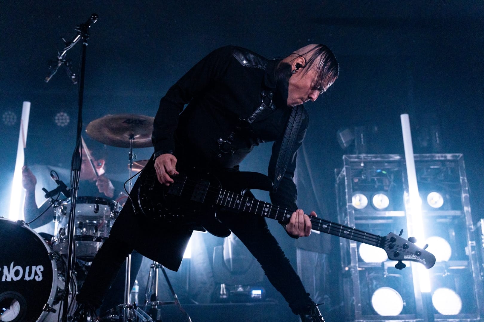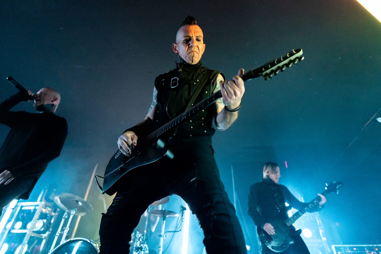 Industrial rockers There Is No Us hit the stage in near-darkness, only illuminated by a few pulsing light bars. The atmosphere was just right for their mix of metal and industrial, with more than a few punk riffs and elements to boot. The crowd was hungry for more aggressive tracks, and vocalist Jim Louvau immediately jumped from the stage to the barricade to rile up the crowd even more. The variety of the tracks, from the electronic elements, harsh vocals, and chugging riffs made for a set that easily worked alongside more traditional metal acts. Towards the close of their set, they also brought out a cover, with “Killing in the Name Of” by Rage Against the Machine also managing to start a mosh pit.