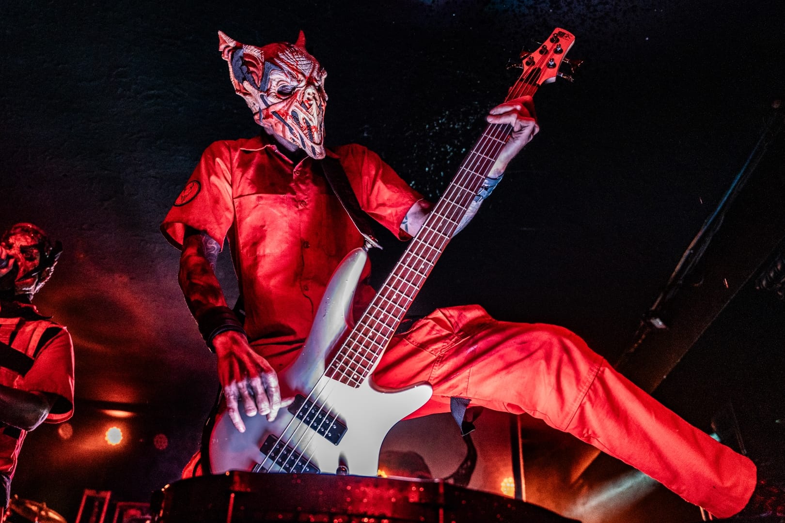 With Halloween nearly here, masked metallers Mushroomhead coming to The Rave in Milwaukee, Wisconsin fits well with the theme of the creepily-decorated venue. Attendees pour into the lower level of the multi-story venue, with plenty of faces painted for the occasion. The signature water drums already mounted at the front of the stage don’t leave much room for the opening acts, but they are thankfully able to work around it, with standing platforms behind the drums.
