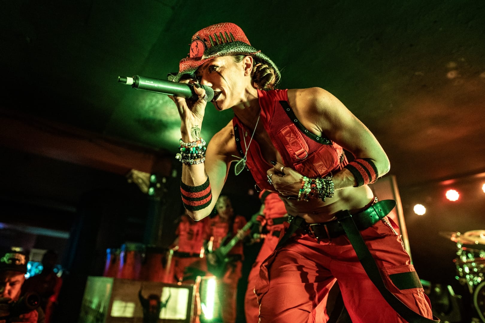Vocalist Jackie LaPonza joined the fray early in the set for “Fall in Line,” the first of only two tracks off of the new album. LaPonza jumped into the crowd early, walking across hands to the center of the pit, where she performed a good deal of the song. The energy in the room was electric, and the turnout was very good considering the Sunday night show slot and having a popular rock group performing at the same time just one floor above.