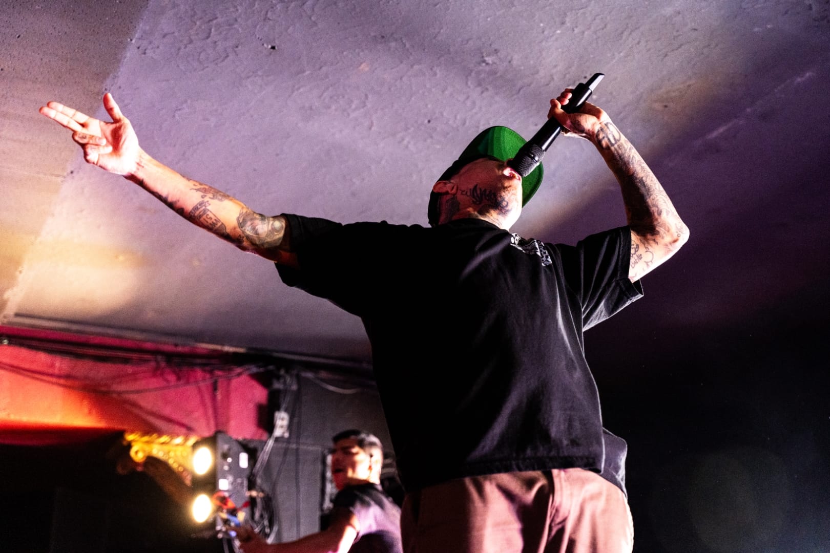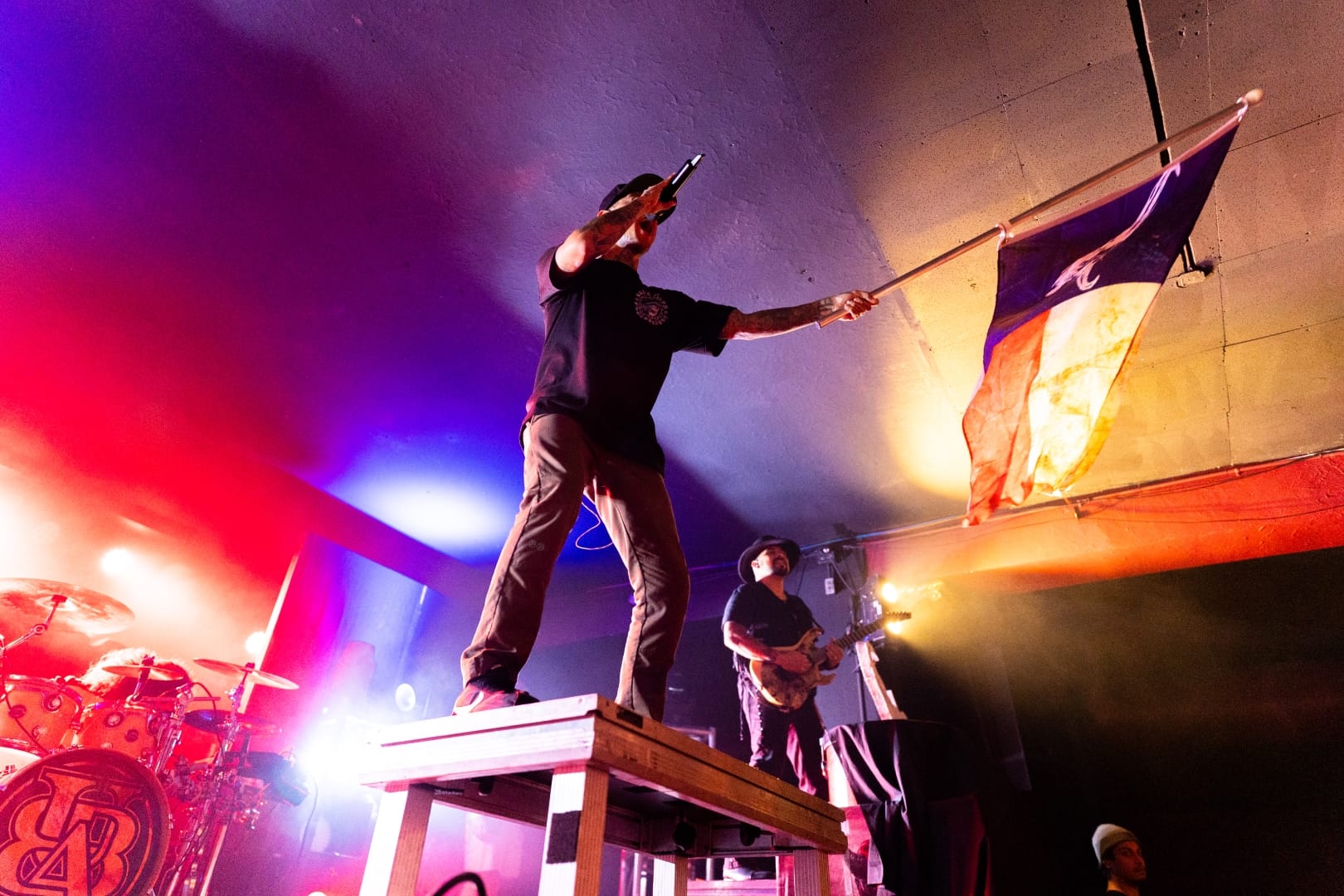 Texas metalcore group Upon A Burning Body has made their origins front and center, and even so live, as vocalist Danny Leal ran onto stage waving a Texas flag, nearly hitting the roof of the basement venue. They kept the mosh pit going constantly, with action happening during every song, with the pit hitting the peak during “B.M.F.,” where Leal encouraged the pit to grow even larger. “Sin City” got the crowd screaming and singing along to “Life sucks and then you die,” a short break before moshing commenced again.