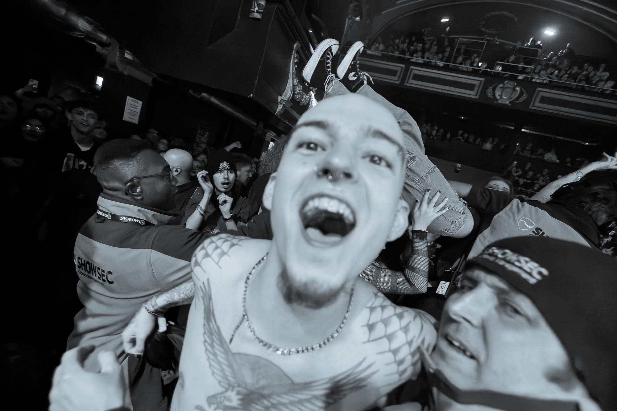 Right from the starters pistol, it is absolute pandemonium inside the O2 Institute, with a maelstrom of bodies in the pit and a constant flow of limbs over the barrier, all of which are met by a blur as the lads from Wrexham go absolutely ham on stage. If anyone thought that any collective energy had been spent during Boston Manor, then they were very much mistaken.