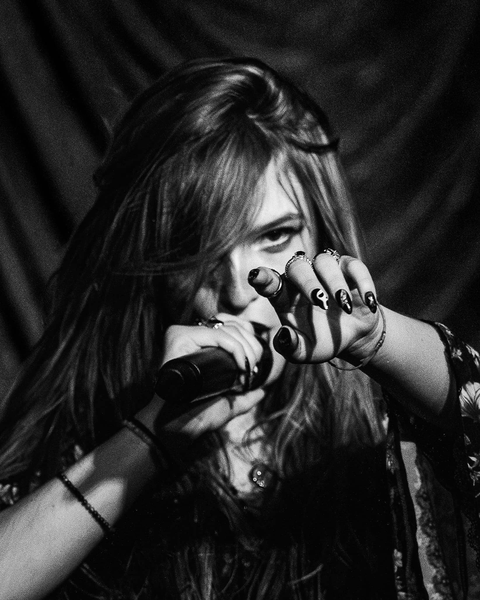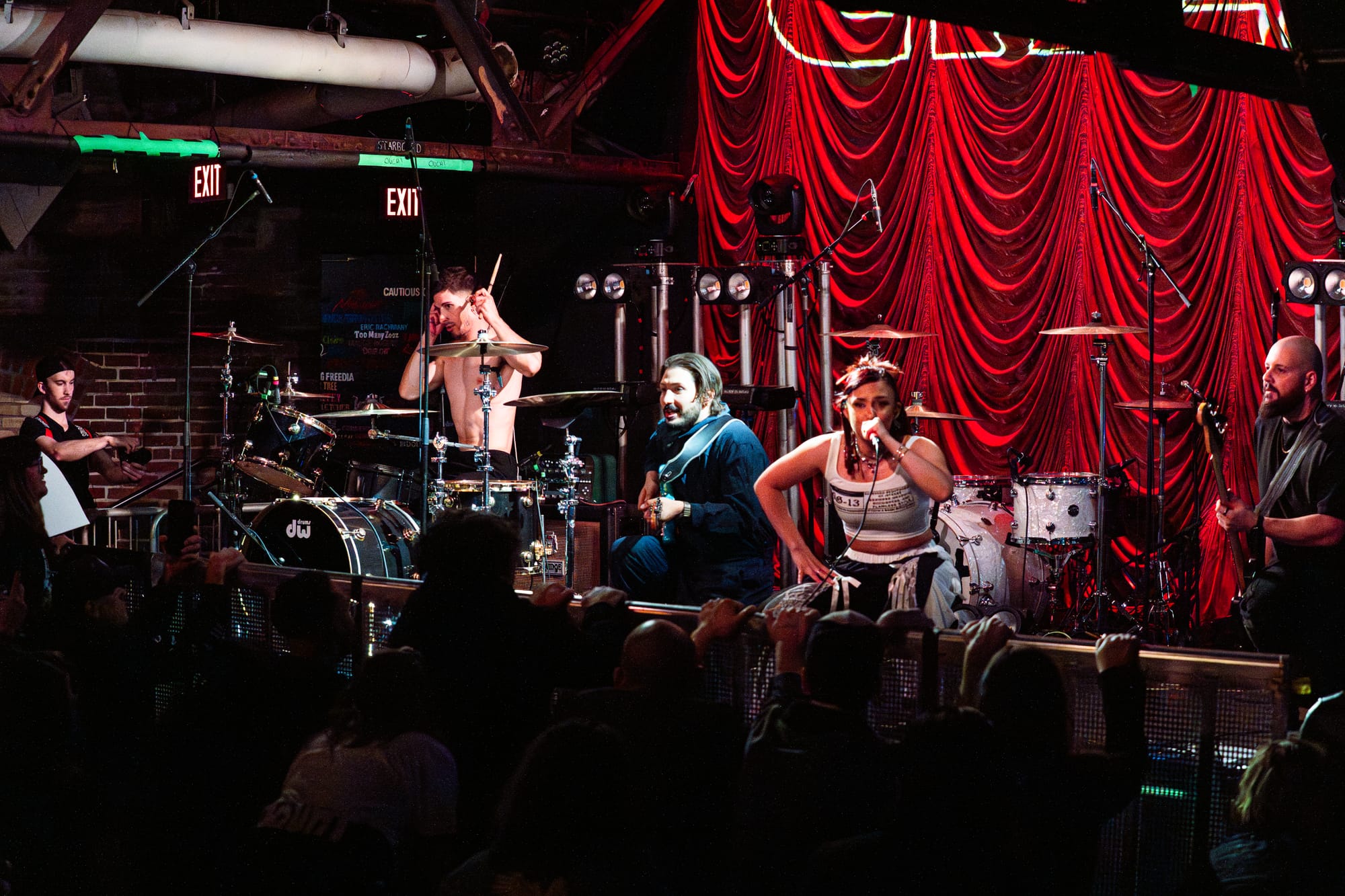 The time had finally come for The Haunt. Fans were ecstatic, getting as close to the stage as they could. The room went dark, and then The Haunt walked on stage to "Bring Da Ruckus" by the Wu-Tang Clan. Starting their set off strong, The Haunt opened with "Bad Omen," which immediately got fans jumping up and down. Lead singer Anastasia towered over the audience on a box she brought on stage, which added a nice element of stage presence for the performance, and lead guitarist Maxamillion kept fans active and moving by engaging with fans and giving them things to do, like clapping their hands, jumping around, and having fans pull out their flashlights for an intimate moment. The Haunt kept playing banger after banger, like "Little Like Hell" and "Claws."
