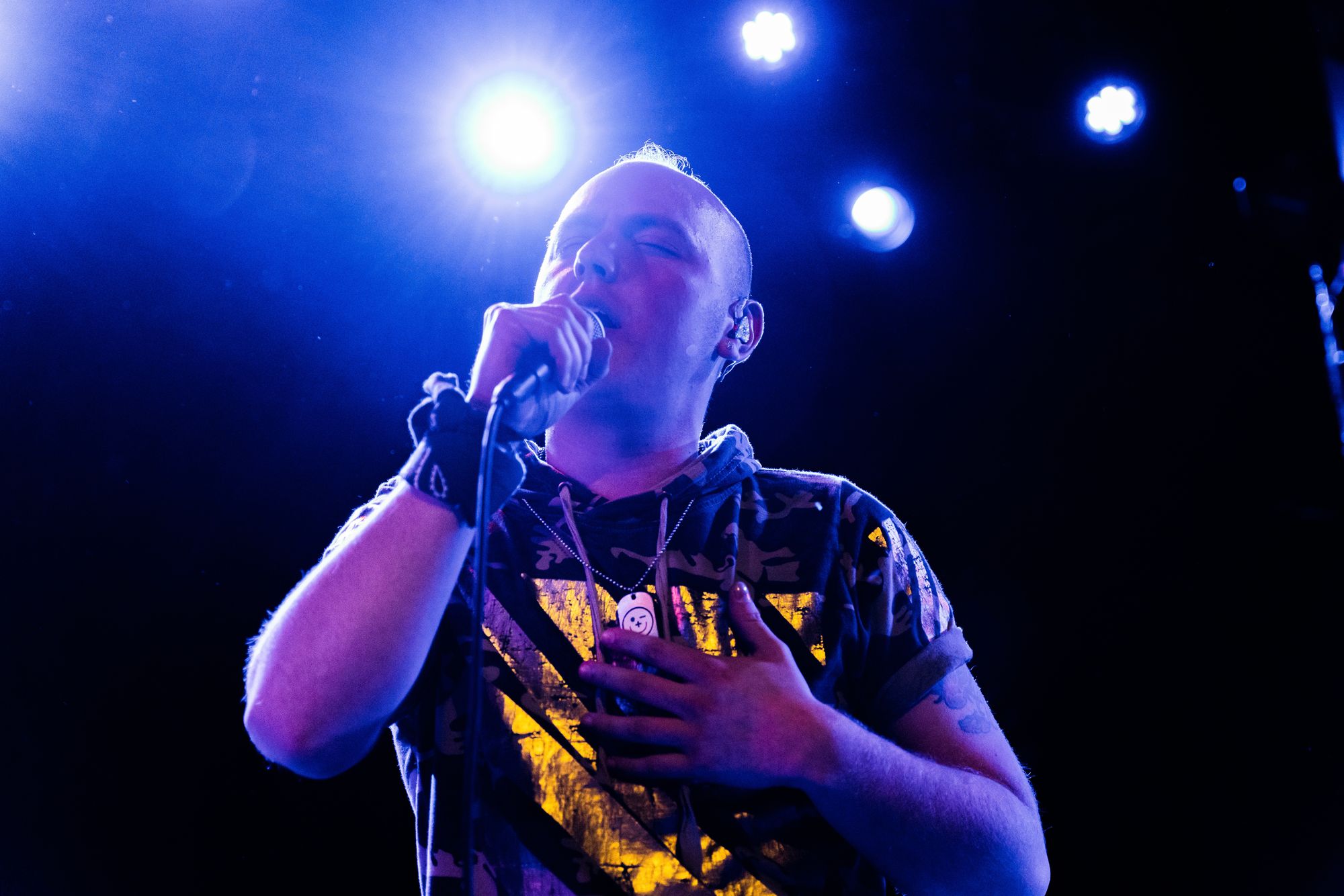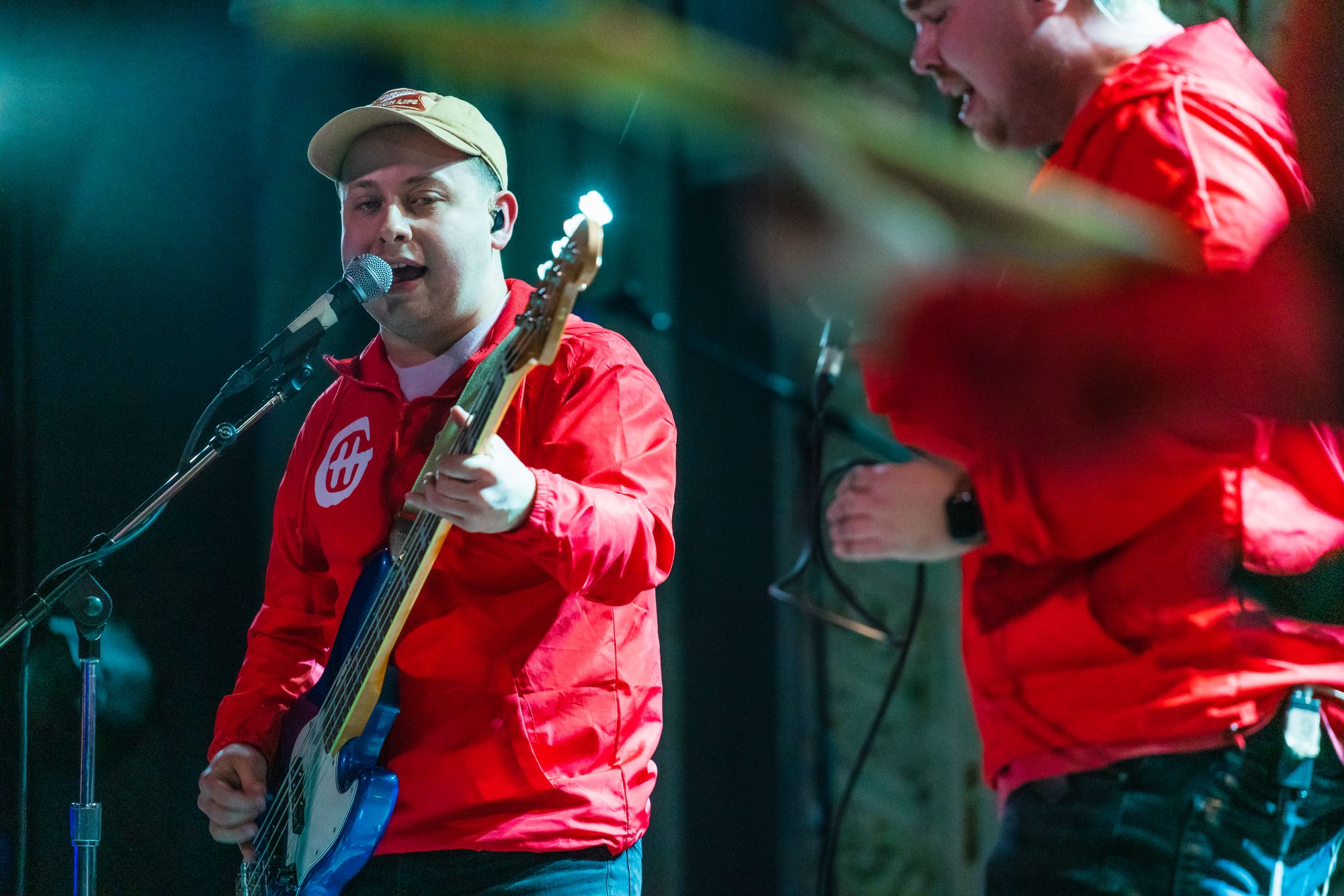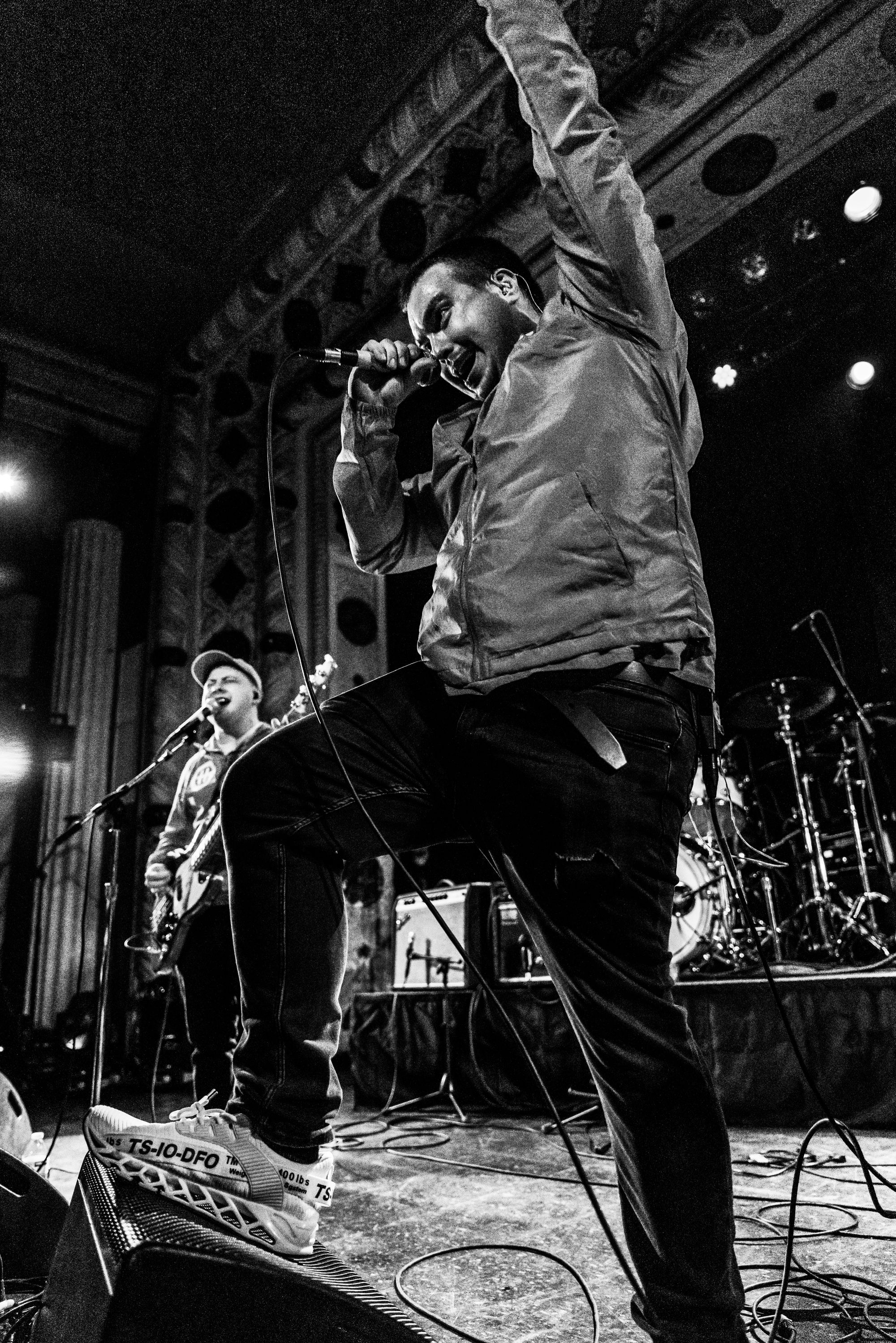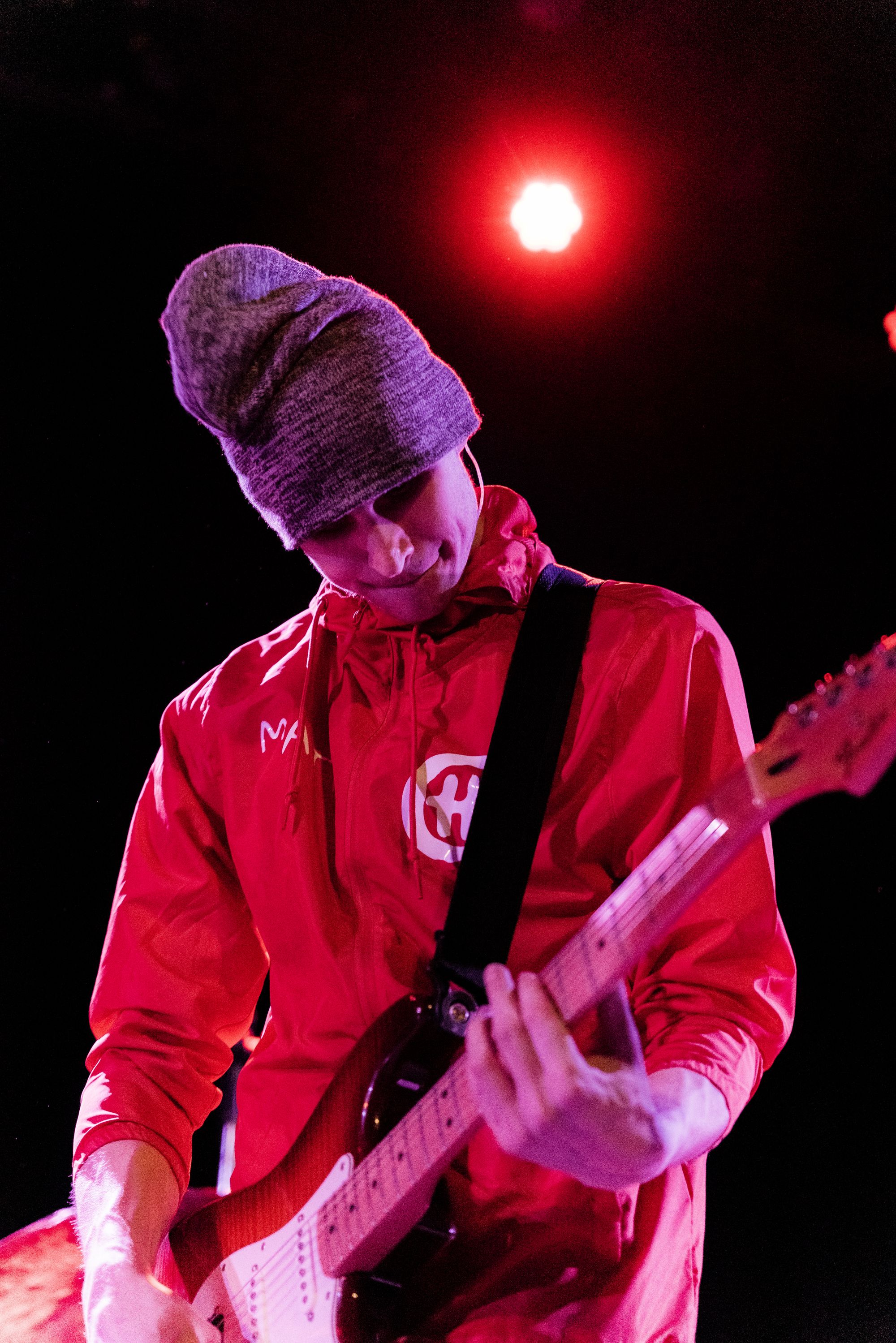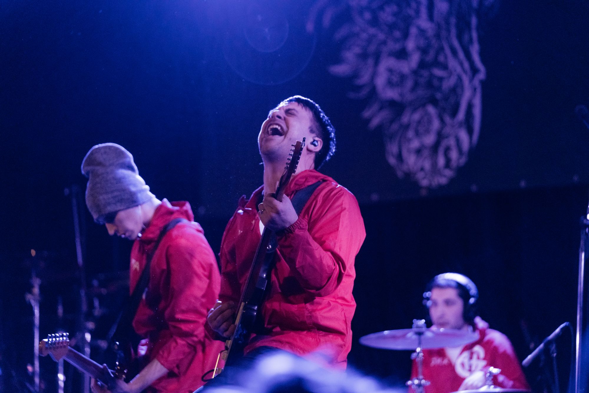 It’s strange to stop and think that pop-punk/emo has been around long enough to be separated into several ‘eras’. Self-described torch carriers of the early 2000s emo sound, Good Hangs (singer/frontman Michael Steinheiser, guitarists Anthony Pierri and Matt Ackman, bassist Dominic Pierri, and drummer Jack Mancuso) hit the stage wearing matching red hoodies and set the tone for the night with a very “fuck it, why not party?” mindset that matched the theme of most of their songs perfectly. Kicking the night off with lyrics like “My boys are the reason I’m wasted/We’re all back in town for a summer/’Bout to fuck shit up in the suburbs” Good Hangs isn’t going to be mistaken for Shakespeare any time soon. And that’s meant as a compliment. Either you know exactly what it’s like drinking beers and fucking shit up in the suburbs when you’re back for summer break and this music is for you, or you don’t. And judging by the crowd’s reaction, there were some major flashbacks to nights of staying up listening to Deja Entendu with the worst haircuts of their lives.