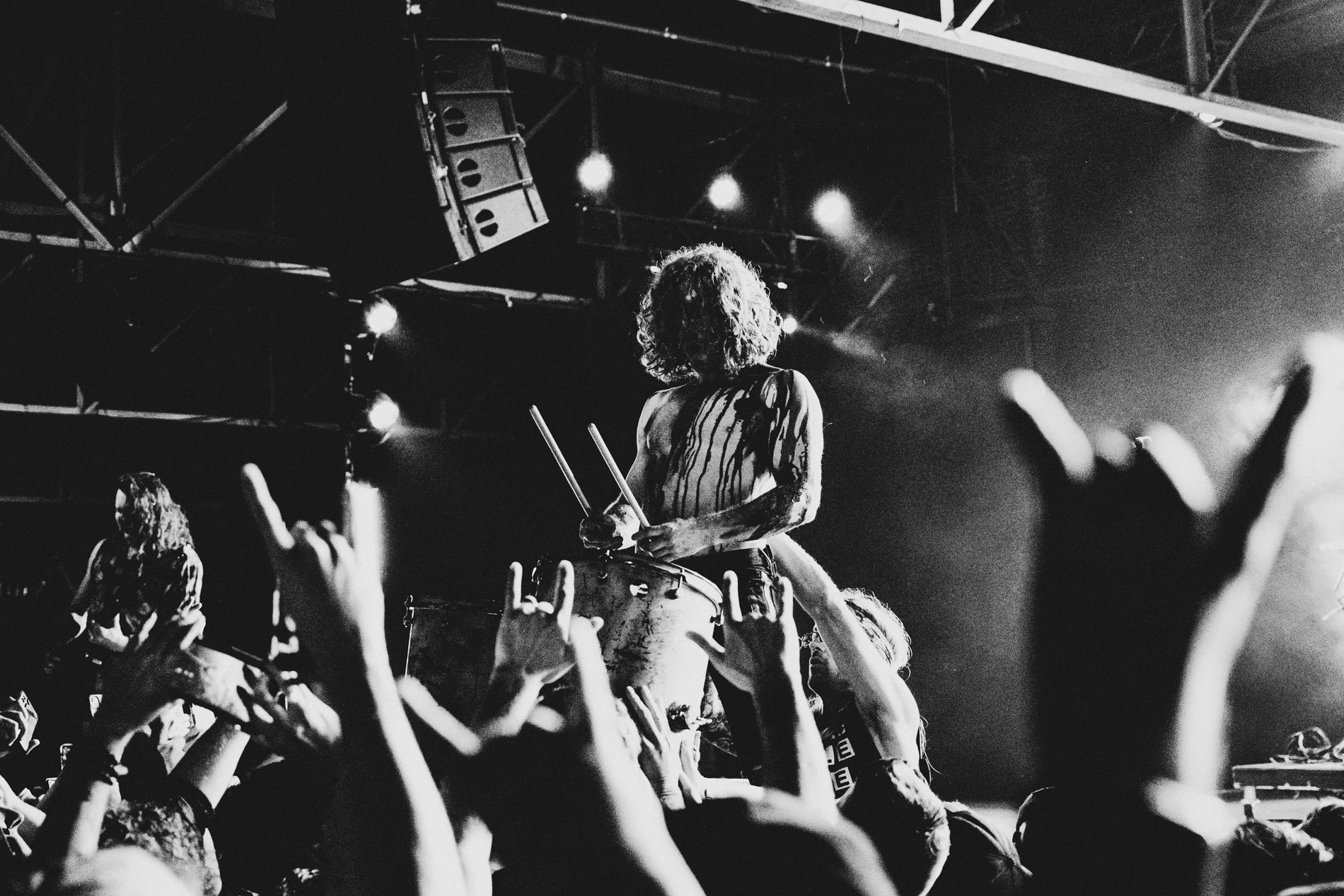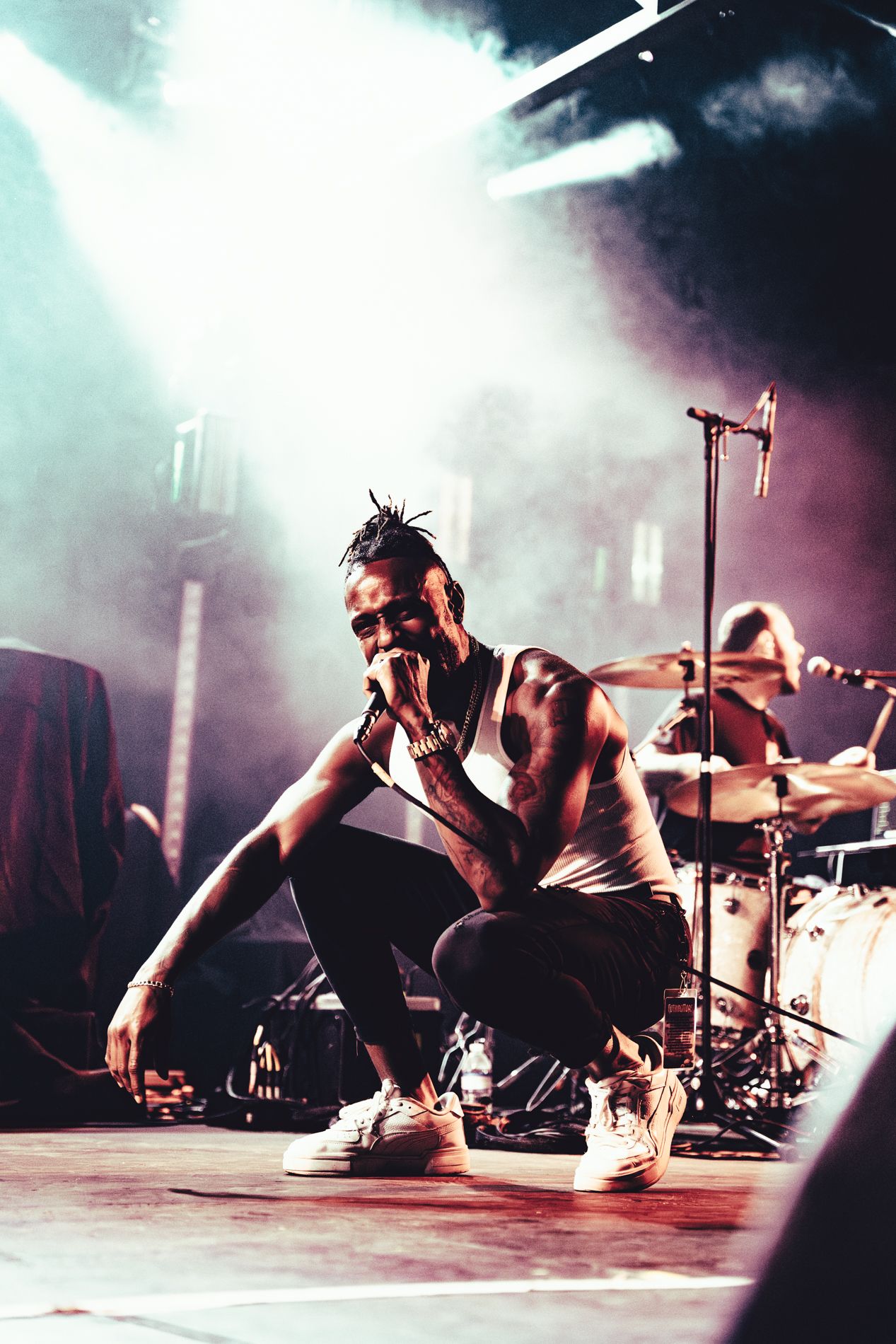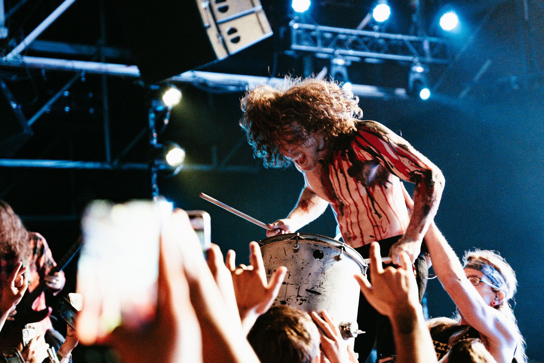 Frontman Jonny Hawkins is known for a specific look during performances, and this night was no exception. Completely shirtless, barefoot, and covered in war paint he brought the energy. Hitting every note, and projecting his charm, the crowd was going crazy. To finish off their set, he brought a drum from on stage, walked on the crowd, and drummed away. It was really cool to see this type of crowd interaction from a band.