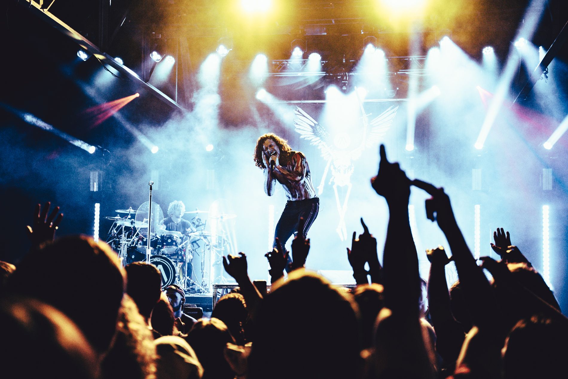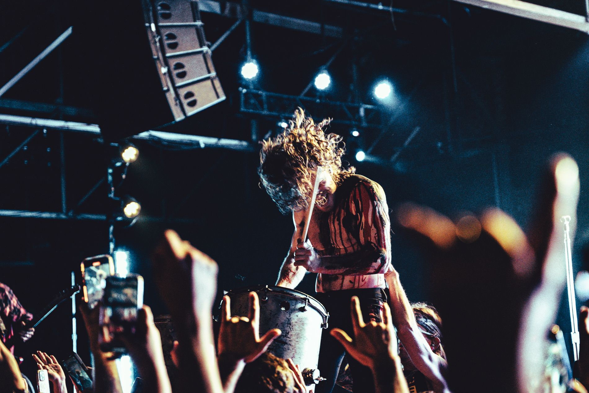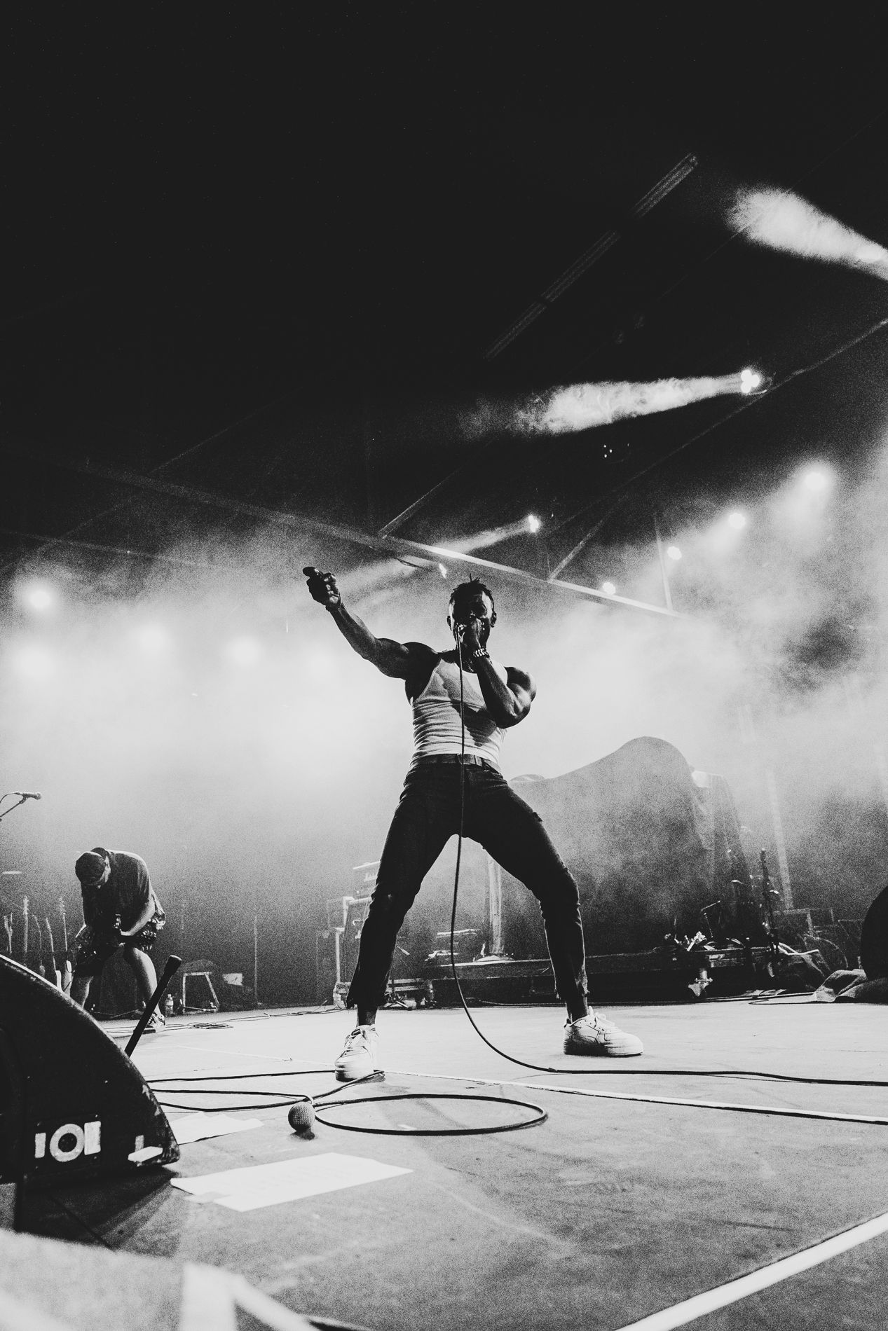 Frontman Jonny Hawkins is known for a specific look during performances, and this night was no exception. Completely shirtless, barefoot, and covered in war paint he brought the energy. Hitting every note, and projecting his charm, the crowd was going crazy. To finish off their set, he brought a drum from on stage, walked on the crowd, and drummed away. It was really cool to see this type of crowd interaction from a band.