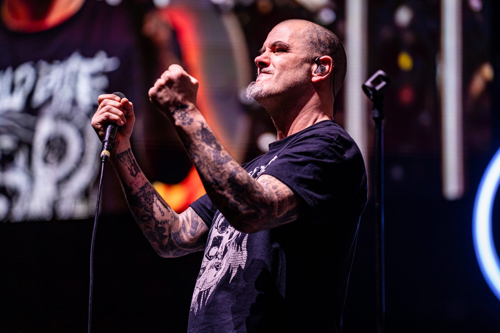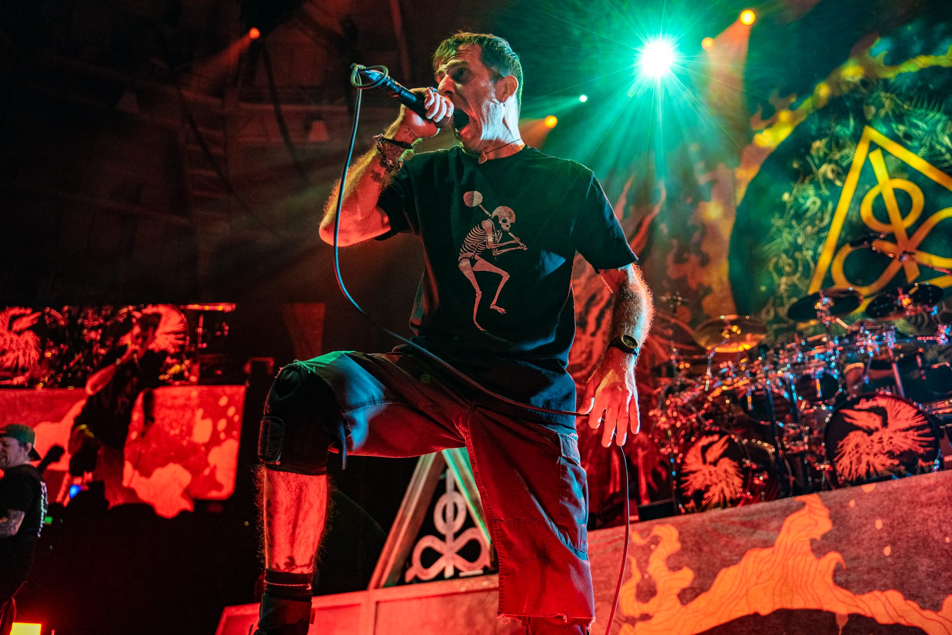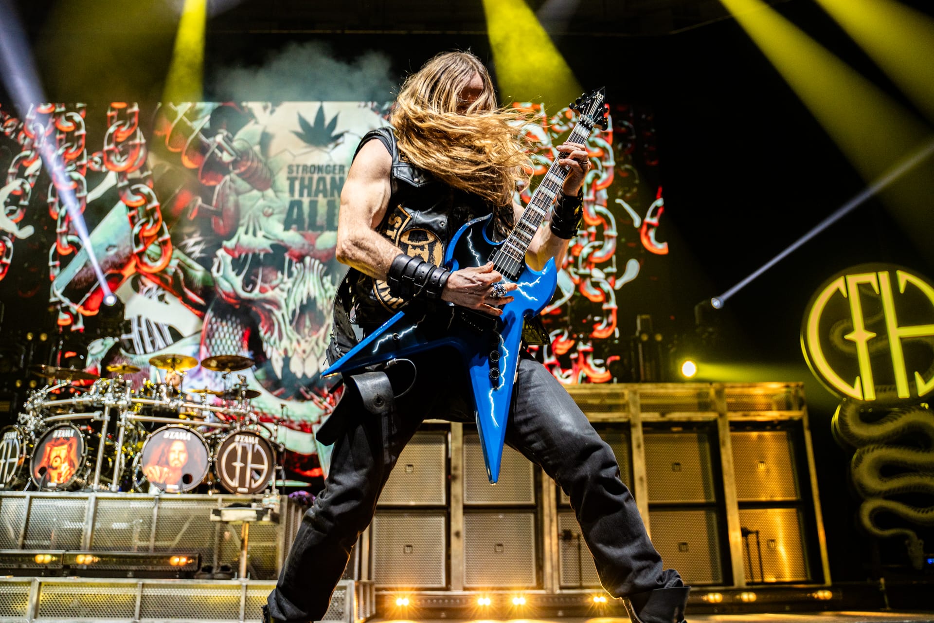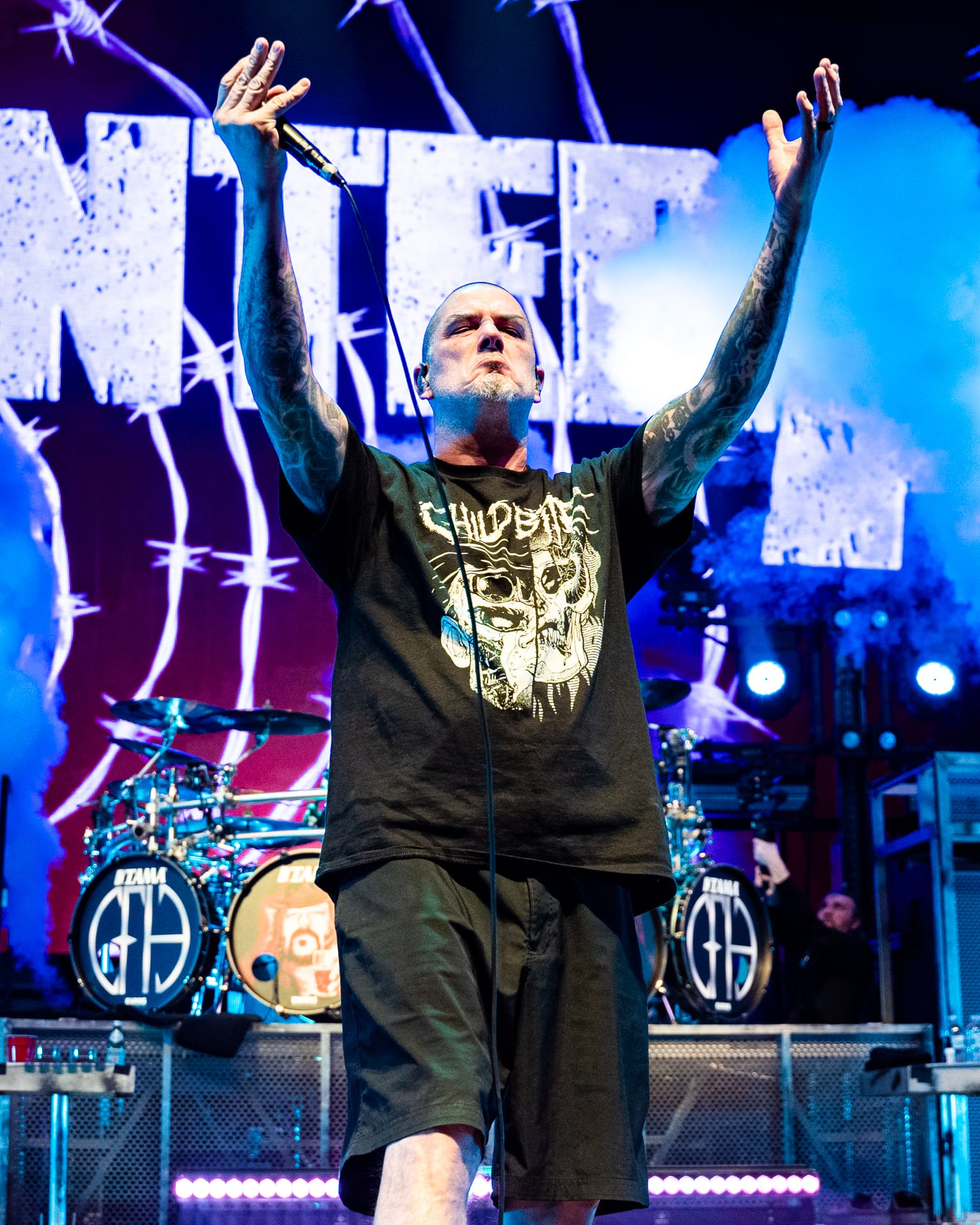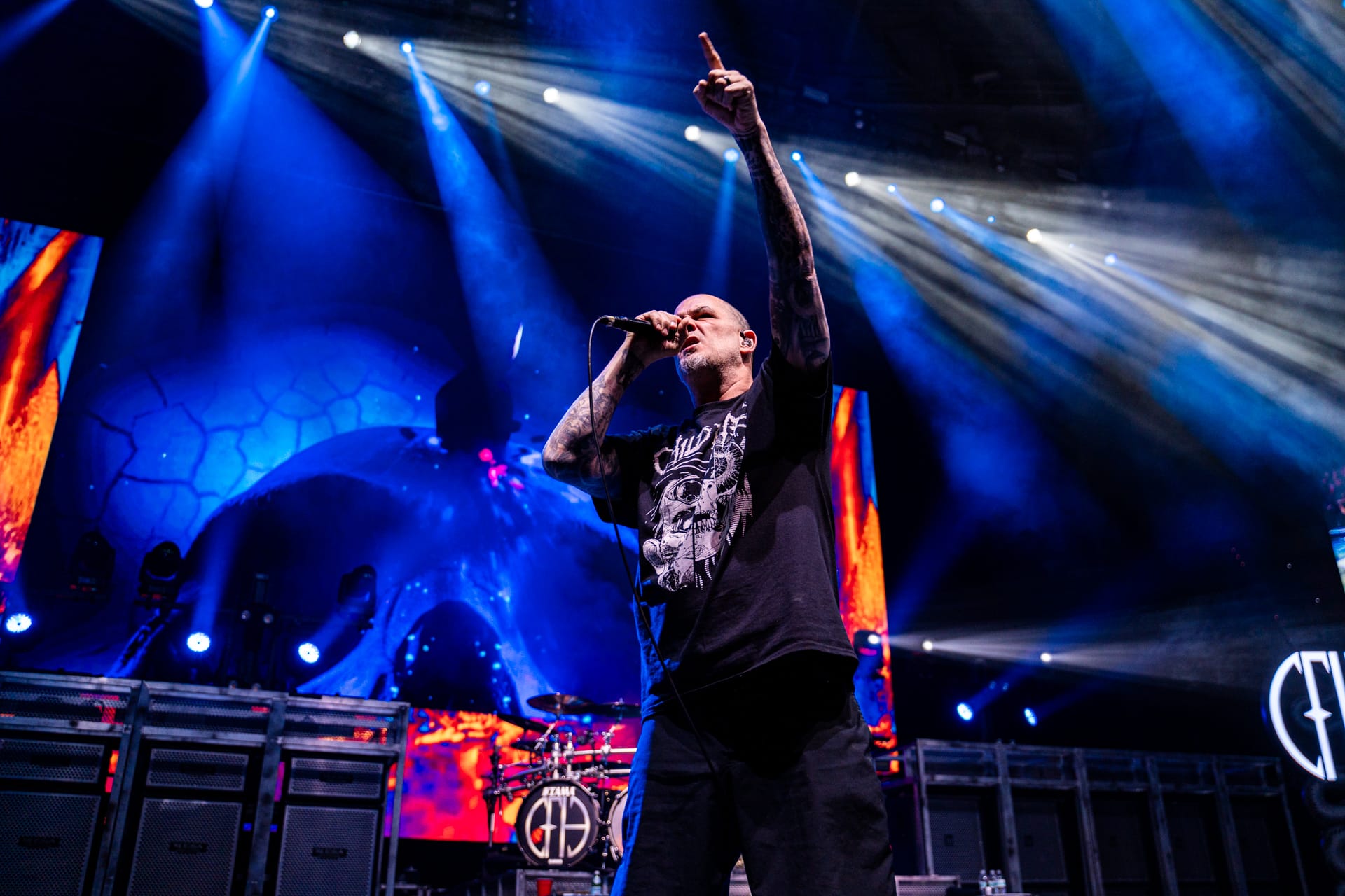 This tour is all about legacy, and the opening video made that very clear as it showed footage from throughout the history of Pantera, including live stage videos and wild offstage antics. Original Pantera members Phil Anselmo and Rex Brown were joined by Wylde on guitar and Anthrax’s Charlie Bennante on drums, whose kit was adorned with the faces of guitarist Dimebag Darrell and original drummer Vinnie Paul; yet another tribute to the lost members.