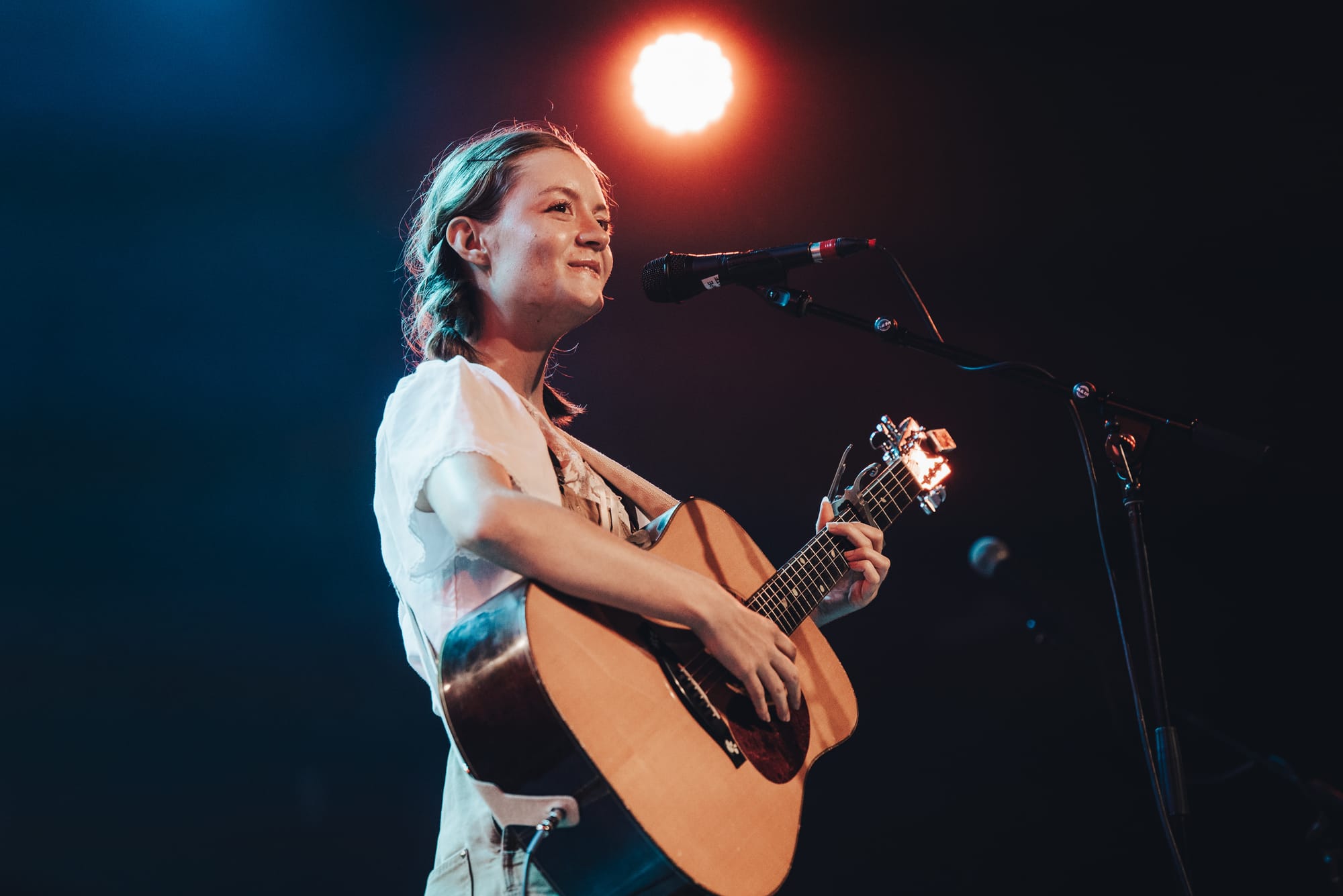 Noah invited the adorable Gabrielle Hope to open for her, and the audience was enamored with her southern charm and girlish giggles. She won over the crowd when she joked about how she asked her sister what she thought of her outfit, to which she said she looks like an Amish girl– the crowd chuckling in response. Originally from Noah’s same home state of Tennessee, Gabrielle introduced many of us in attendance to something called “Appalachian shape note singing.” You’re likely wondering what in the world that is, and truthfully, to get the full idea, you’ll just need to listen to the clip below. It’s different than what most of us are used to listening to, and perhaps the audience was a bit confused at first, but they quickly warmed up. She messed up a few times but played it off with that lovable grin, mentioning that she was nervous. Seeing the audience’s faces, they were understanding and were grinning back in encouragement. Our hearts were softened to hear Noah next.