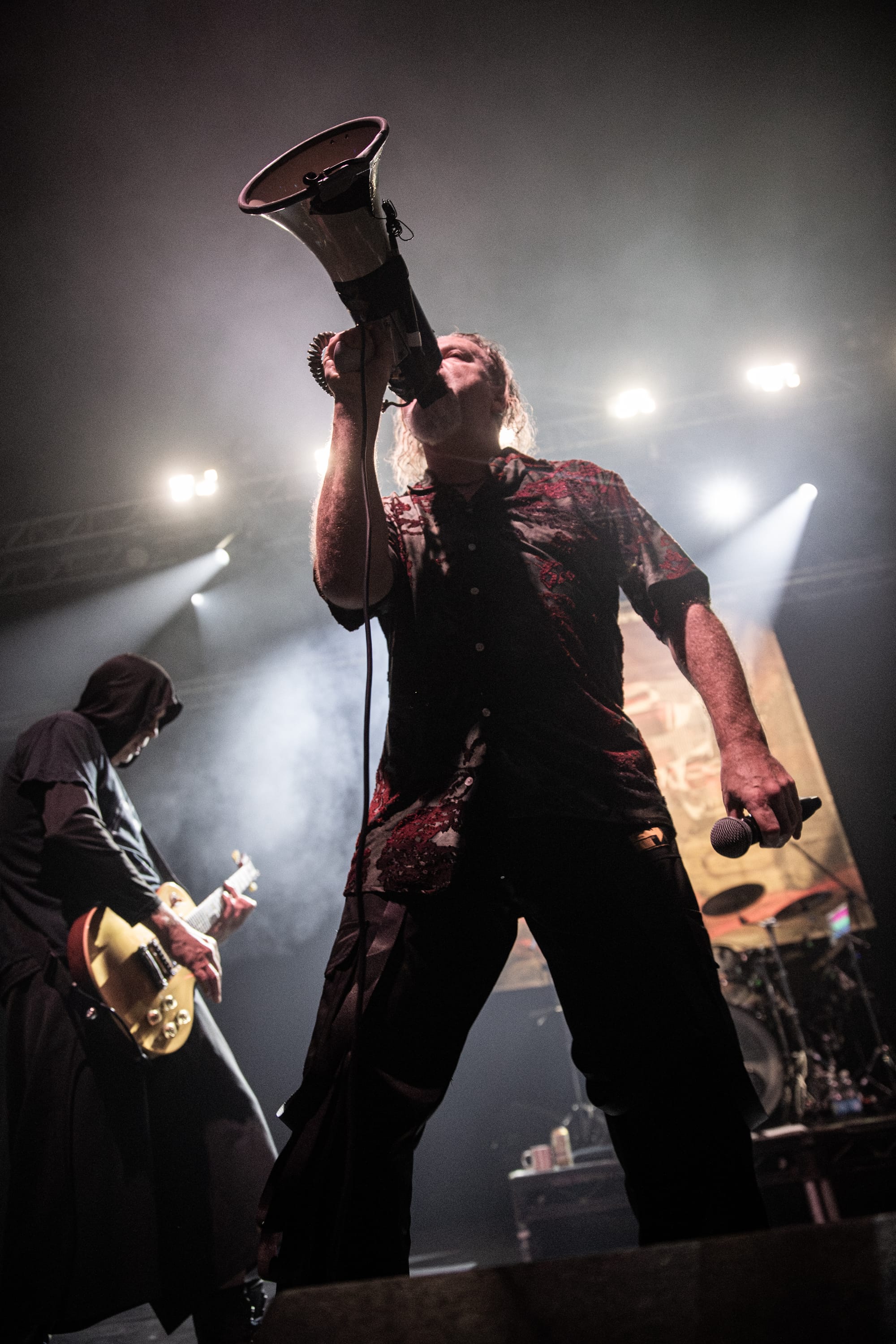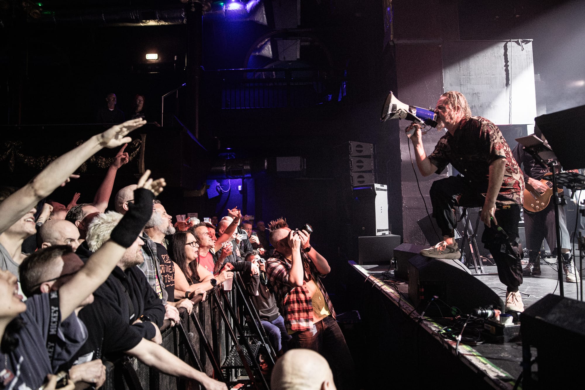 Now it was time for the headliner, Pop Will Eat Itself, to commandeer the stage, opening with the first track of their new album, “The Slammer.” The electro-punk pioneers wasted no time jumping around the stage. The dual vocalists have garnered a unique following of fans, from young industrial goths at the barrier donning “Rammstein” t-shirts, to 90s raver veterans who have followed the band since their beginnings. An entirely cocktail of industry attendees were all there, celebrating the band.