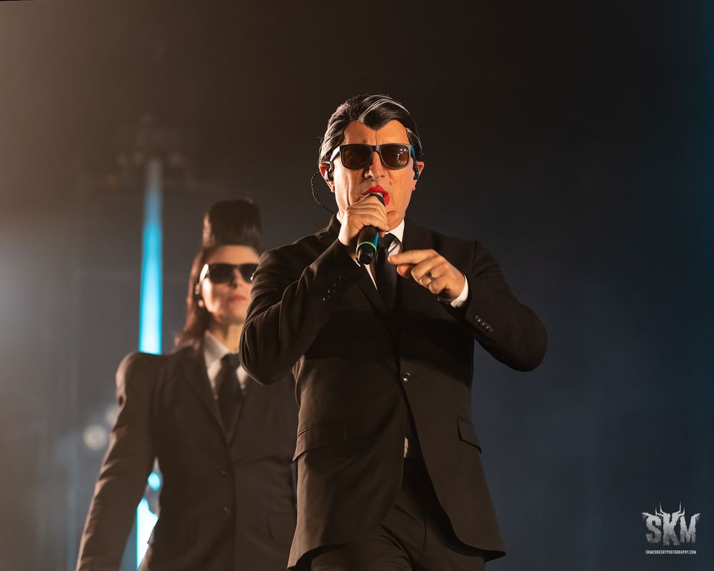 After a 30 minute intermission, the show promptly began at 8:30 with a video of agent Dick Merkin (MJ Keenan) endorsing the tasty meat SPAM. He then explained that if anyone was caught taking photos or videos during the show, they would be removed and become an ingredient in the tasty meat treat. I guess the no-phone policy was not to be taken lightly! The house lights dimmed and Puscifer walked on stage dressed in a “Men In Black” look of suits and sunglasses.The now-packed venue erupted into a frenzied cheer! From the start of the first song “Bread and Circus”, the show was a trippy visual and musical journey. The stage consisted of a drum kit sitting under a 15-foot-high platform and 3 large screens at the rear. Throughout the show, videos would play with glitches and skips, recreating a flawed signal that tied into the show. At the end of the second song, another MJ Keenan character, “Billy D”, is seen sneaking to the edge of the stage from the audience with a phone in hand. He is trying to get a picture during the show of all the “Agents”, but he’s quickly grabbed and hauled away across the stage, further reinforcing the no-phone rule. The crowd went absolutely wild after that! With a lengthy 18 song set, we had seen it all. Movie clips about alien and rogue cloning depicting famous people and their true lineage. Joining Puscifer on stage, the crowd was treated to several skits of other special agents coming and going. Several Aliens frequenting the stage in the background and eventually trying to do some “probing” of their own. Musically, the band was spot on. With a heavy techno beat driven by bass and drums, the sound was intense and mesmerizing. Adding to the sound was an 80s vibe of synthesizers and just right guitar, that tied it all together. Vocals were in on point, Keenan and Round nailed the performance! Speaking of Carina Round, many, many times during the show, a random shout could be heard from the crowd...”Love you Carina”. She is definitely a fan favorite! I am glad they performed my personal favorite song “The Humbling River”, it was a shortened version but sounded excellent nonetheless. Before the last song started, Keenan announced to the audience, “I guess you can take out your stupid phones now and record the show”. Out came the phones to capture a quick memory of the night. Puscifer won me over and I would love to see them again in the future. I highly recommend checking out a live show as you won’t be disappointed!