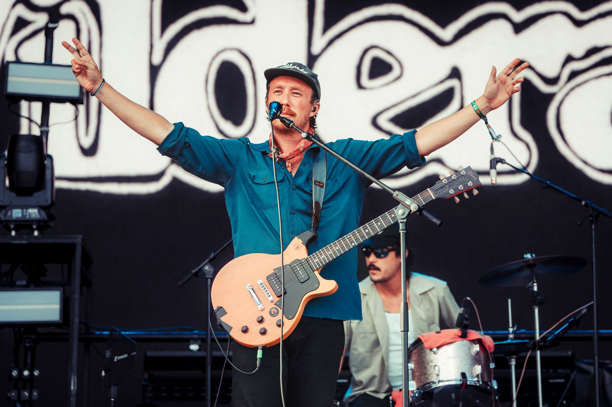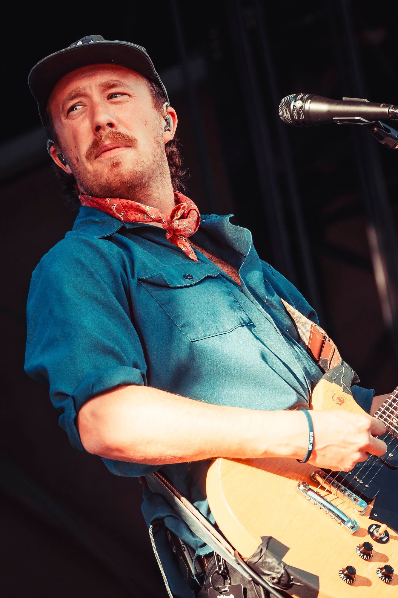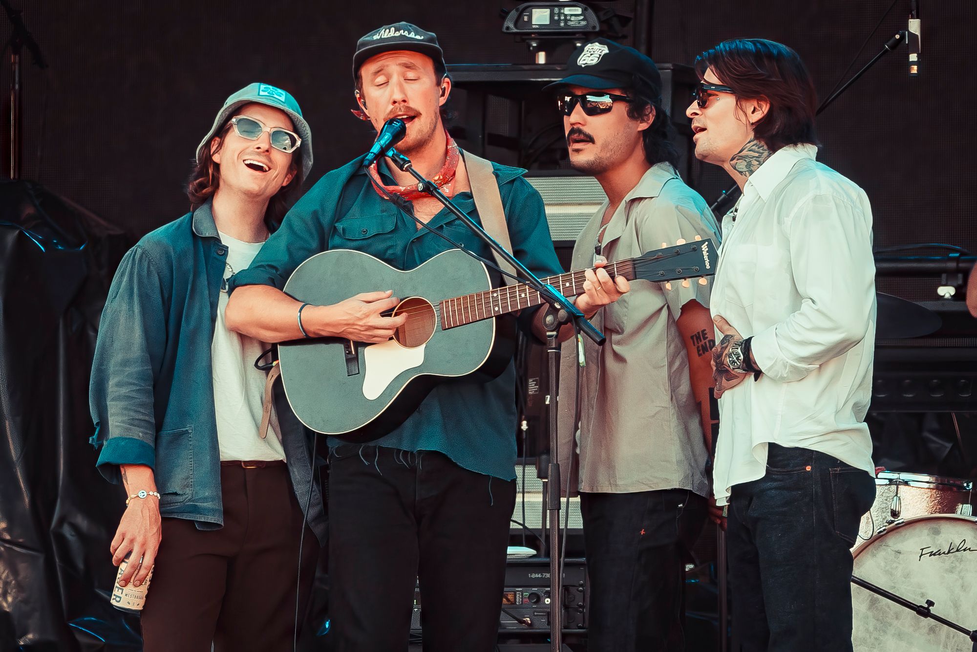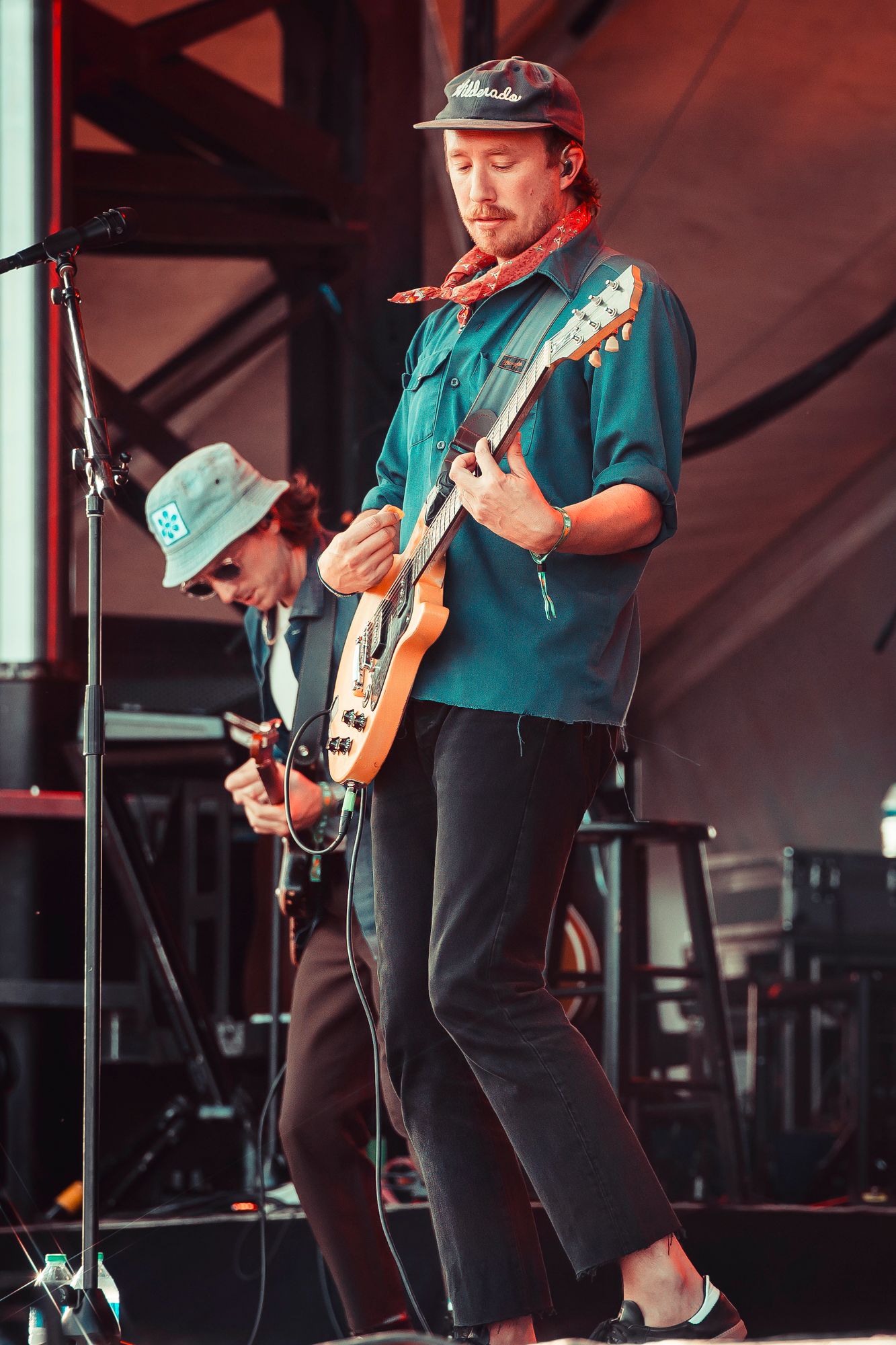 Wilderado had an outstanding set. Max Rainer (lead singer, guitarist), Tyler Wimpee (guitarist, vocals), Aaron Boehler (bass), and Justin Kila (drums) took the stage. Max introduced the foursome from Tulsa, Oklahoma with a sly smirk presumably amused by the ocean of fans chanting “Wilderado!”. They kicked off their set with “Stranger” from their 2021 self-titled album. Delivering more of an indie rock sound than previous acts, Wilderado’s catchy hooks and driving guitar riffs woke the crowd up. When they played the song “Morning Light” from the 2017 Latigo EP even the blanket crowd stood up and danced. Wilderado's set was a unique blend of southern rock and high-energy indie with a western flare, like when you put BBQ sauce and an onion ring on a cheeseburger.