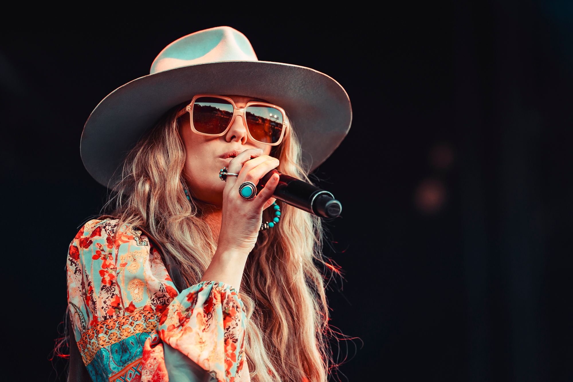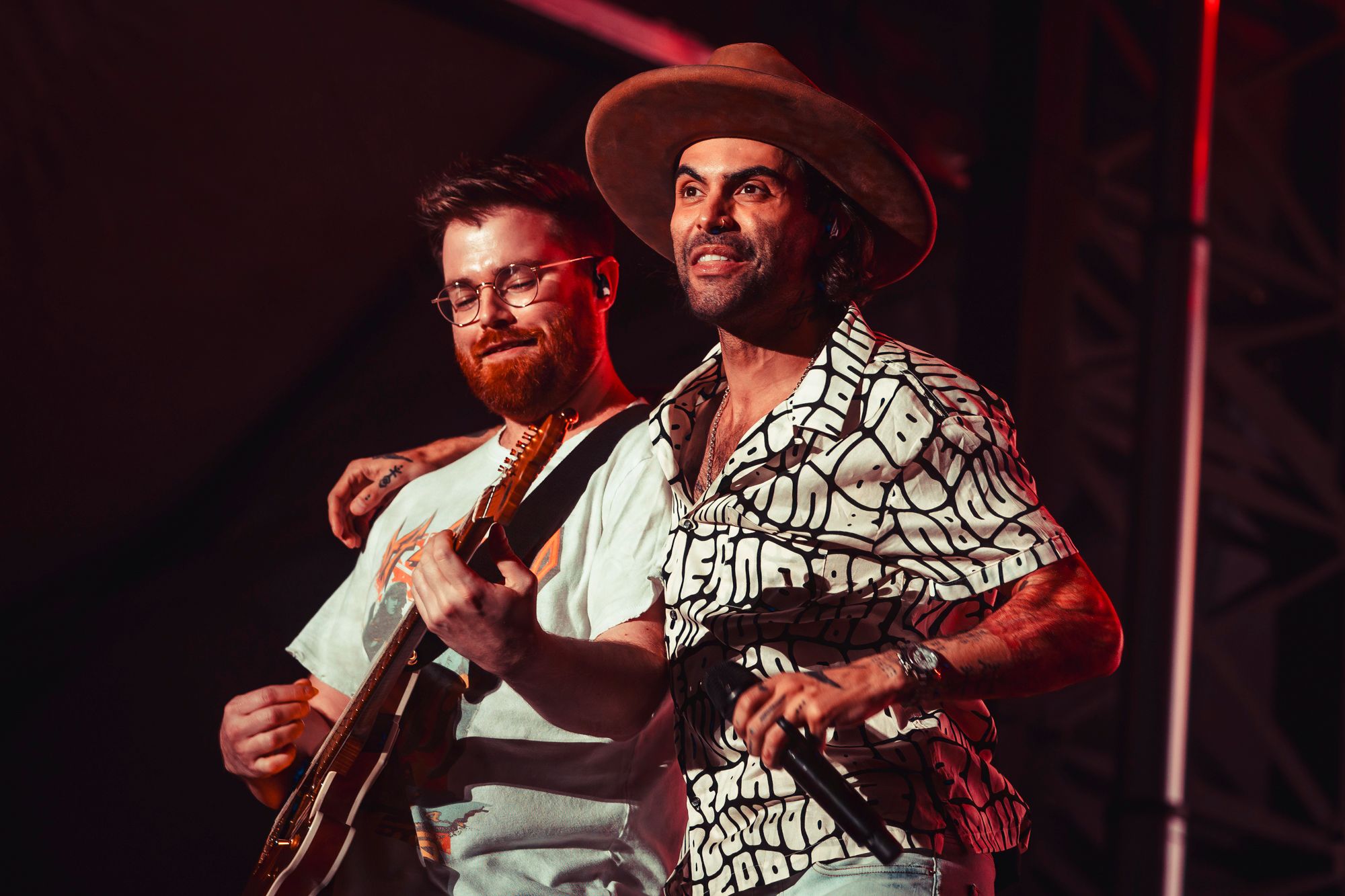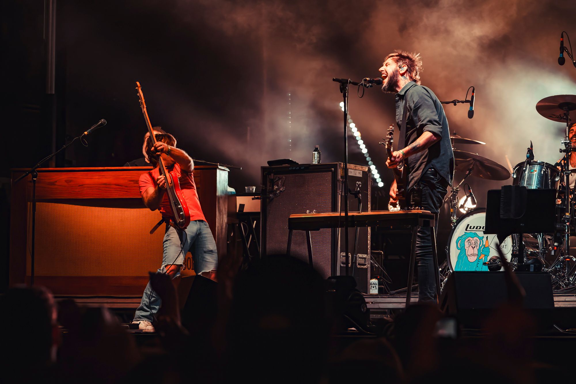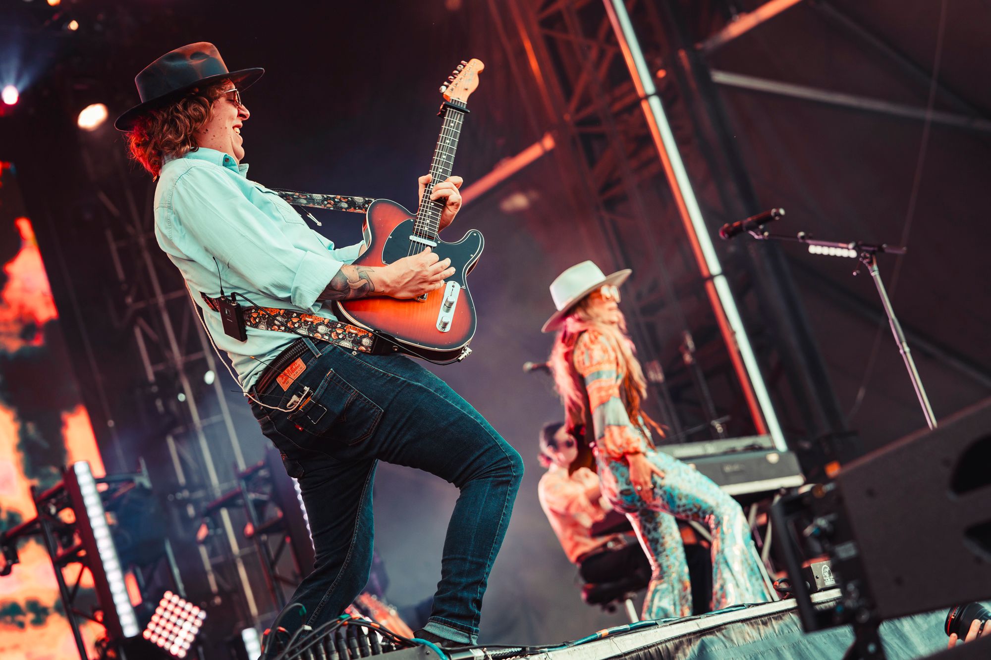 Wilderado had an outstanding set. Max Rainer (lead singer, guitarist), Tyler Wimpee (guitarist, vocals), Aaron Boehler (bass), and Justin Kila (drums) took the stage. Max introduced the foursome from Tulsa, Oklahoma with a sly smirk presumably amused by the ocean of fans chanting “Wilderado!”. They kicked off their set with “Stranger” from their 2021 self-titled album. Delivering more of an indie rock sound than previous acts, Wilderado’s catchy hooks and driving guitar riffs woke the crowd up. When they played the song “Morning Light” from the 2017 Latigo EP even the blanket crowd stood up and danced. Wilderado's set was a unique blend of southern rock and high-energy indie with a western flare, like when you put BBQ sauce and an onion ring on a cheeseburger.