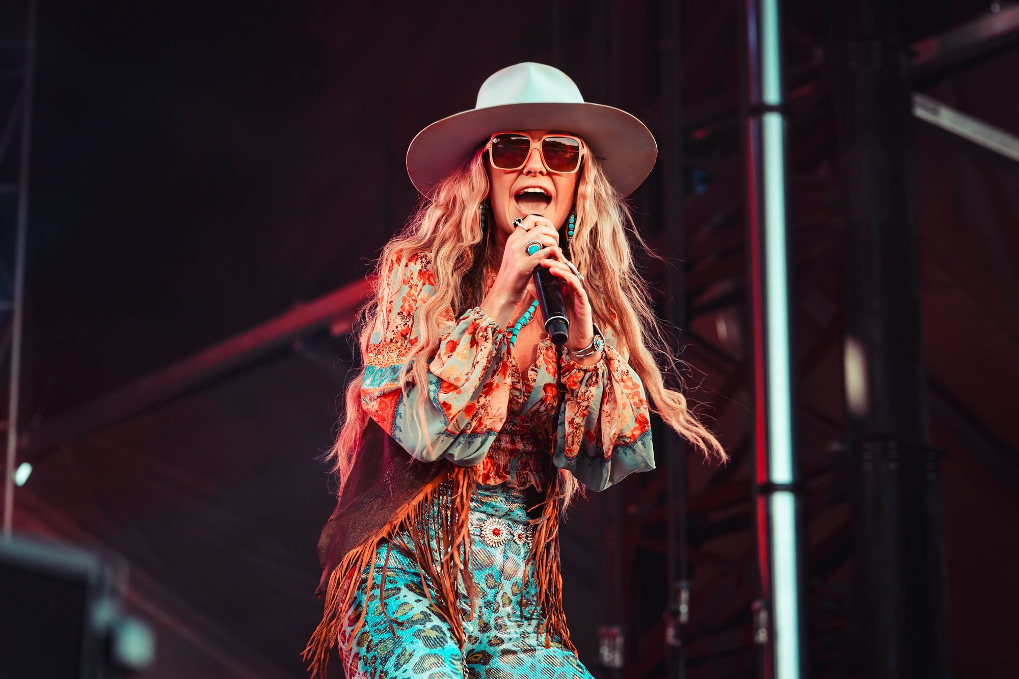 Fans flooded the field of the Live Oak Stage anticipating Megan Moroney. Some wearing University of Tennessee orange in honor of her Billboard Hot 100 and Social media hit “Tennessee Orange” from her 2023 debut album Lucky. The singer did not disappoint, delivering a powerful and emotional performance of the smash hit and completely captivating the ocean of people.