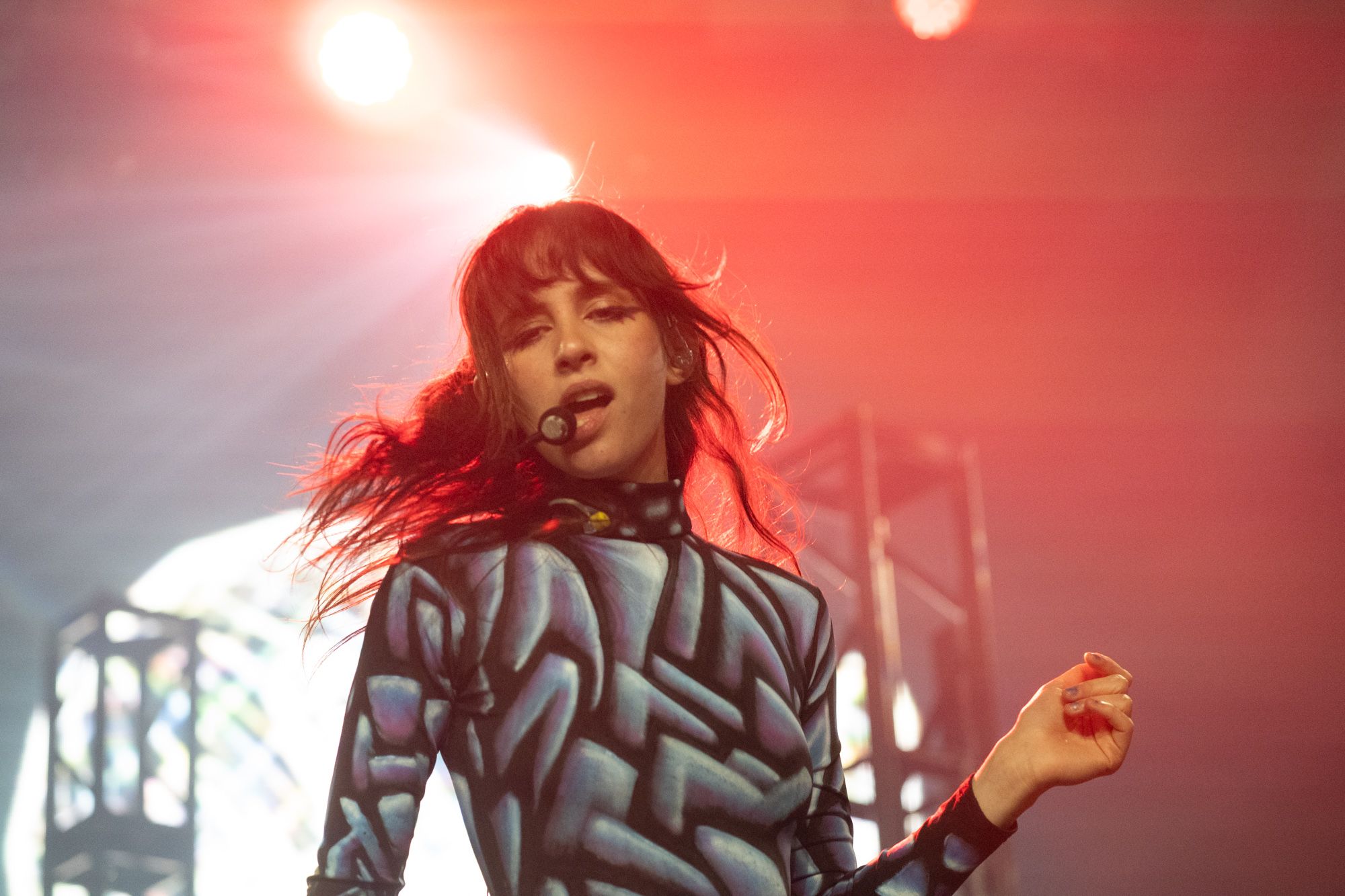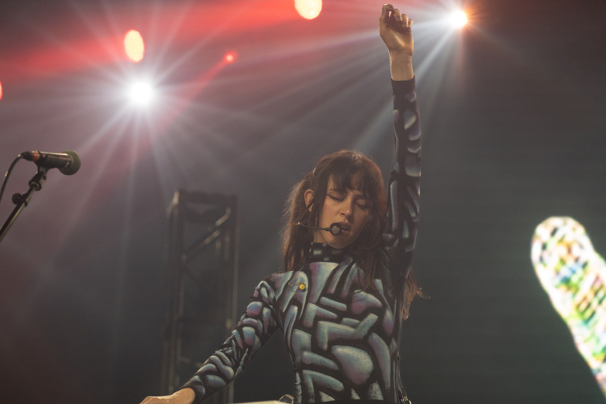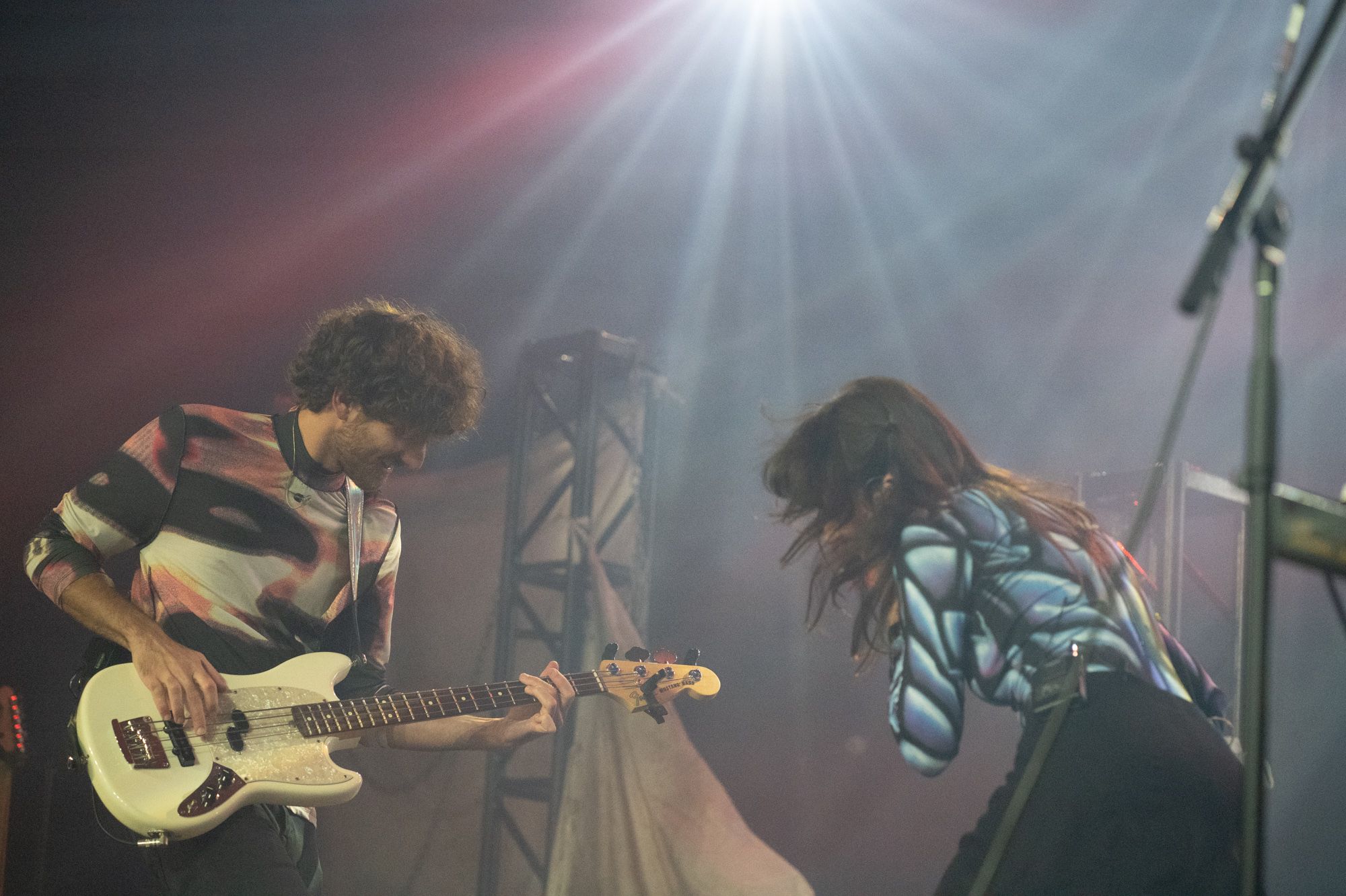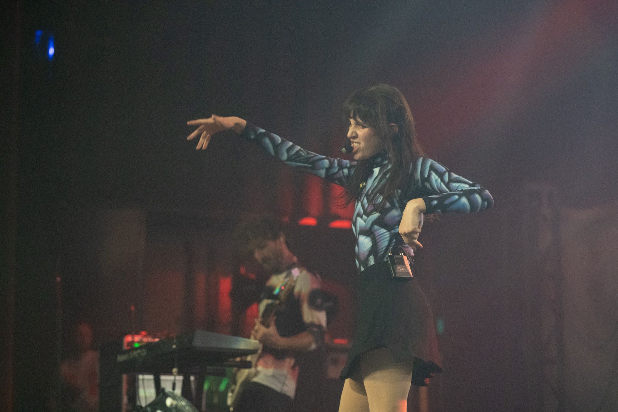 Half an hour after Disko Cowboy’s performance, Magdalena Bay came out on stage to perform their mellow electronic songs. Opening with their song “You Lose!” the duo wasted no time getting into the groove of their set. The duo’s vocalist, Mica Tenenbaum, swayed around, singing and dancing, gracefully moving to the drum of the opening song. As the set progressed, Magdalena Bay’s producer Matthew Lewin showed off his impeccable skills, shredding solos on his guitar and playing impressive fast-paced melodies on his keyboard. When Matthew started slapping notes on his bass, it left me in a state of amazement, as I don’t remember a bass being so powerful I could feel the soundwaves bouncing through my chest.
