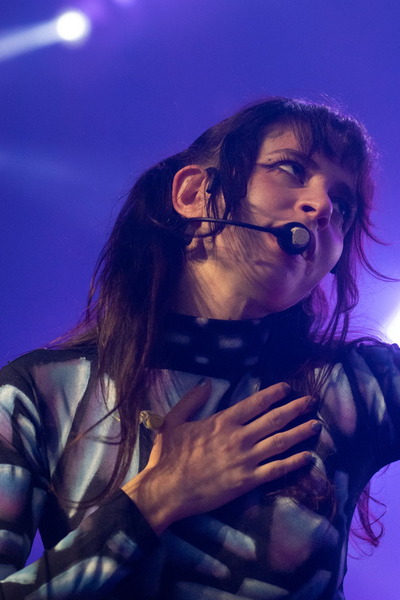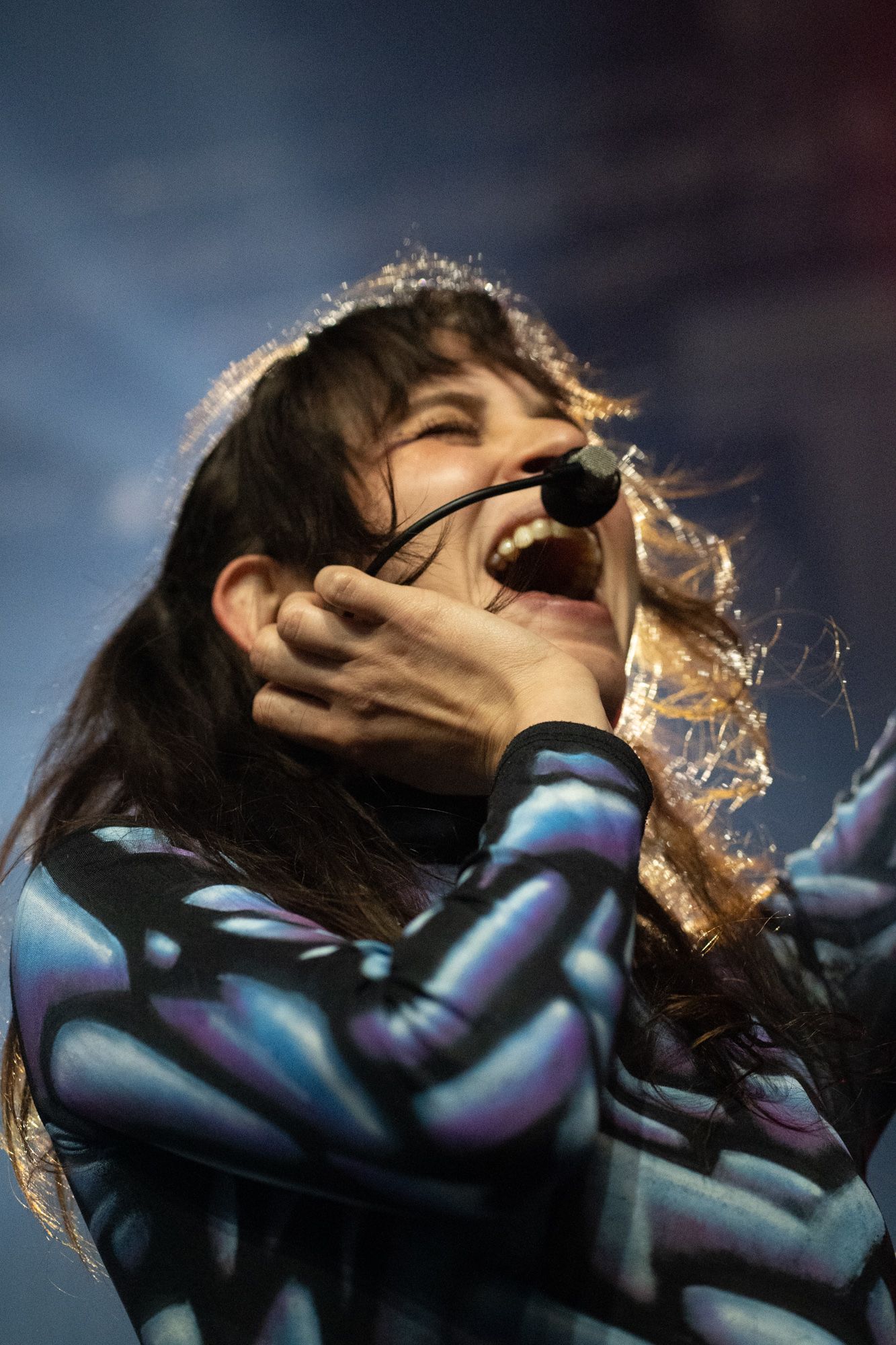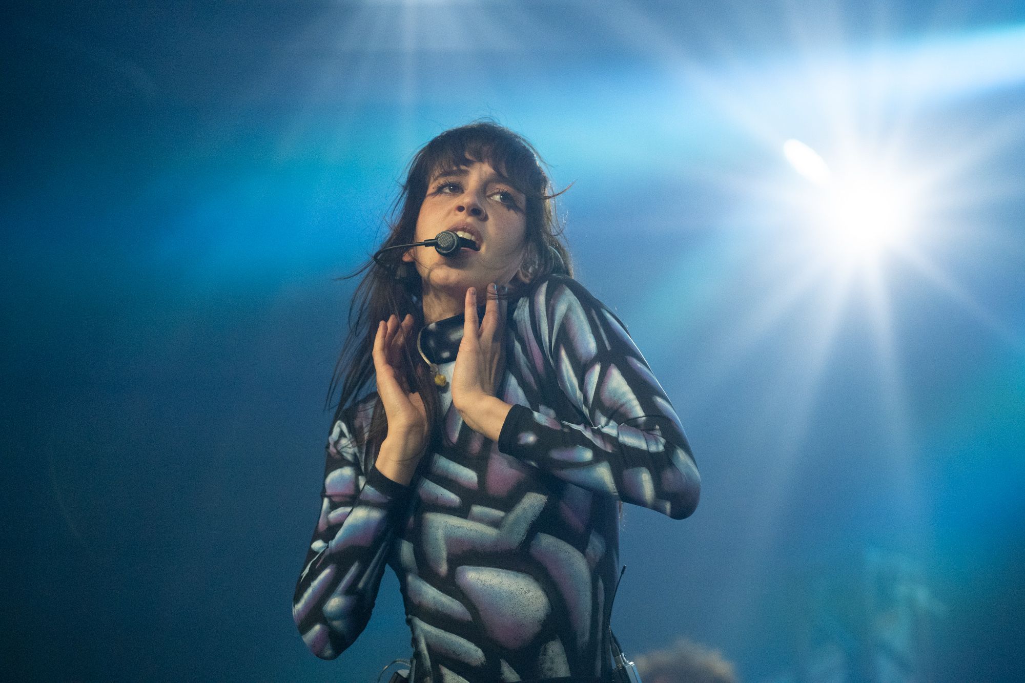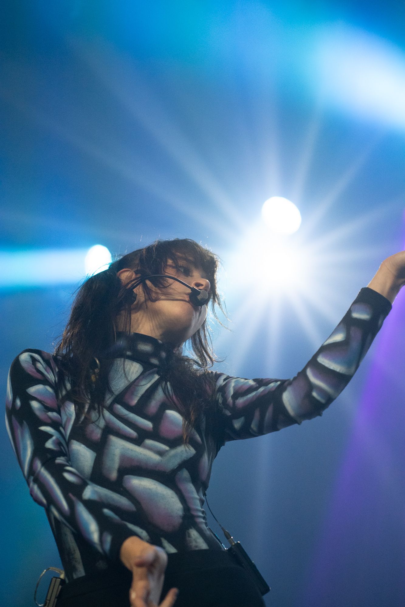 Half an hour after Disko Cowboy’s performance, Magdalena Bay came out on stage to perform their mellow electronic songs. Opening with their song “You Lose!” the duo wasted no time getting into the groove of their set. The duo’s vocalist, Mica Tenenbaum, swayed around, singing and dancing, gracefully moving to the drum of the opening song. As the set progressed, Magdalena Bay’s producer Matthew Lewin showed off his impeccable skills, shredding solos on his guitar and playing impressive fast-paced melodies on his keyboard. When Matthew started slapping notes on his bass, it left me in a state of amazement, as I don’t remember a bass being so powerful I could feel the soundwaves bouncing through my chest.
