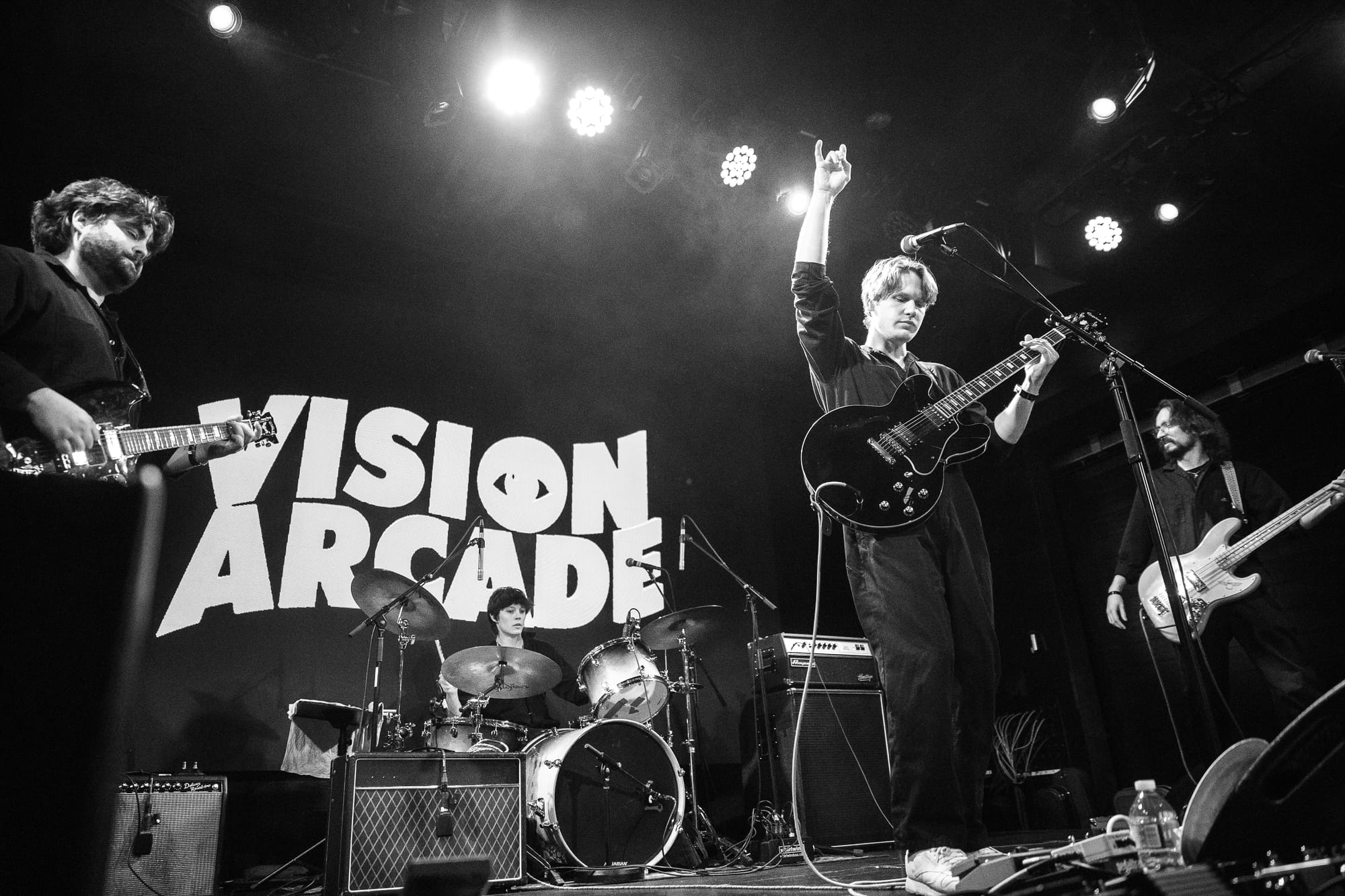 VISION ARCADE: We’ve got four members in the group. Rory Kendall, who’s the man behind the vocals, and a lot of the lyrics come from him. Max Robison is on lead guitar and does all of the backend behind-the-scenes work like socials and, before we signed with management, booking shows, and so on. Evan Brock on bass guitar—some say the best in the world. And Connor Torres on drums.