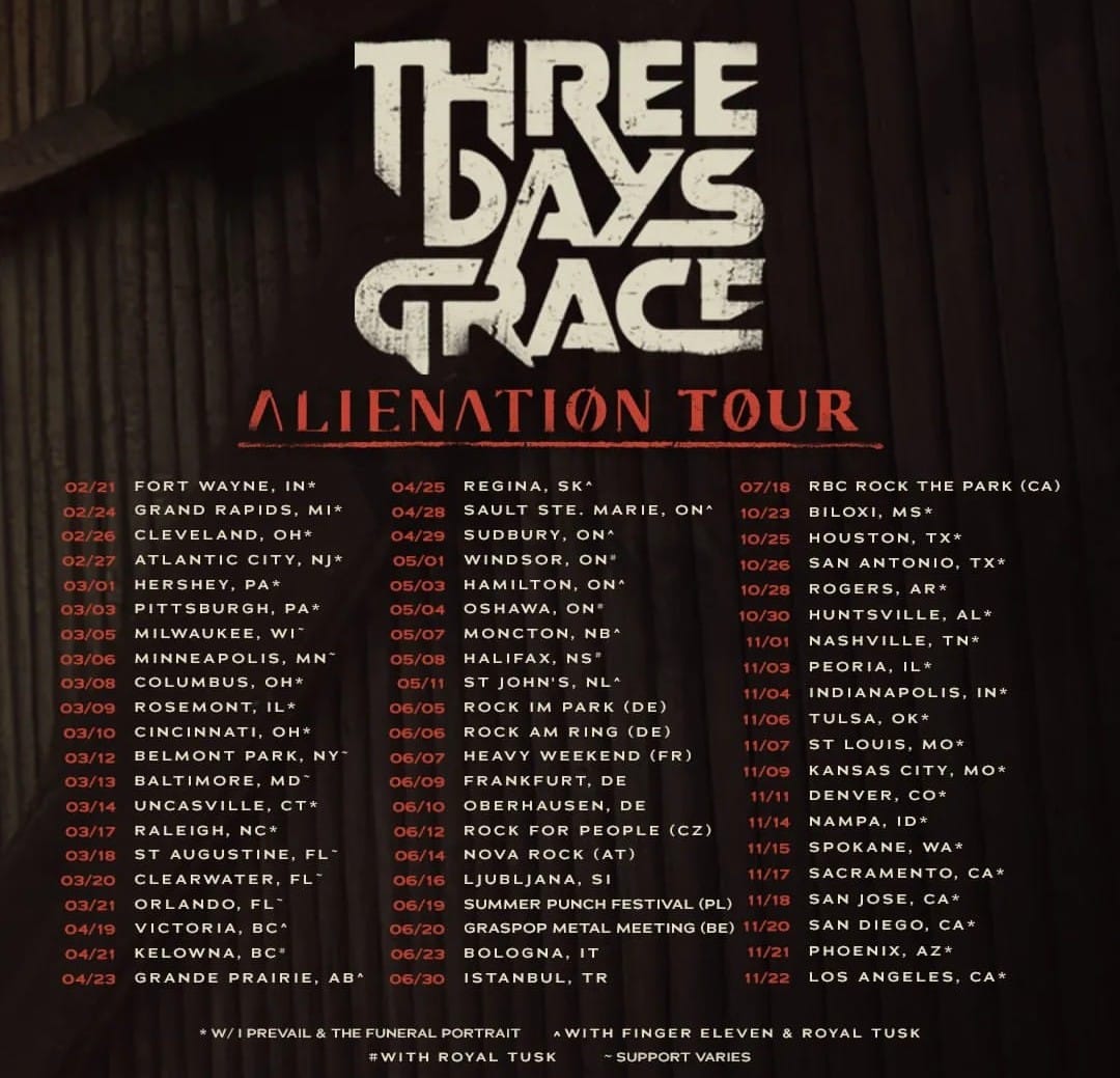 Artists are quickly filling their 2026 schedule with new tours. This week we saw new announcements from Three Days Grace, Meghan Trainor, and Ekoh.