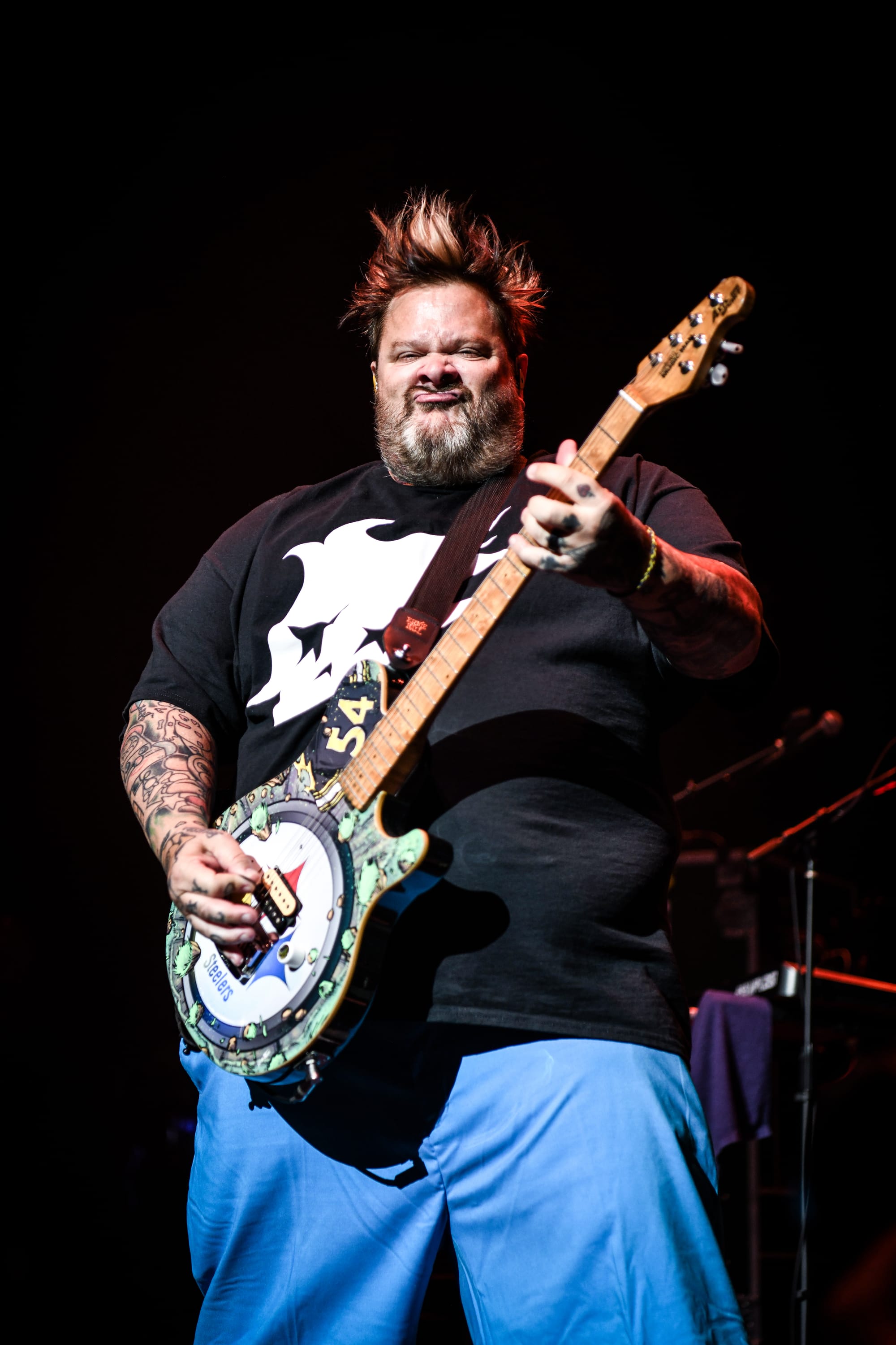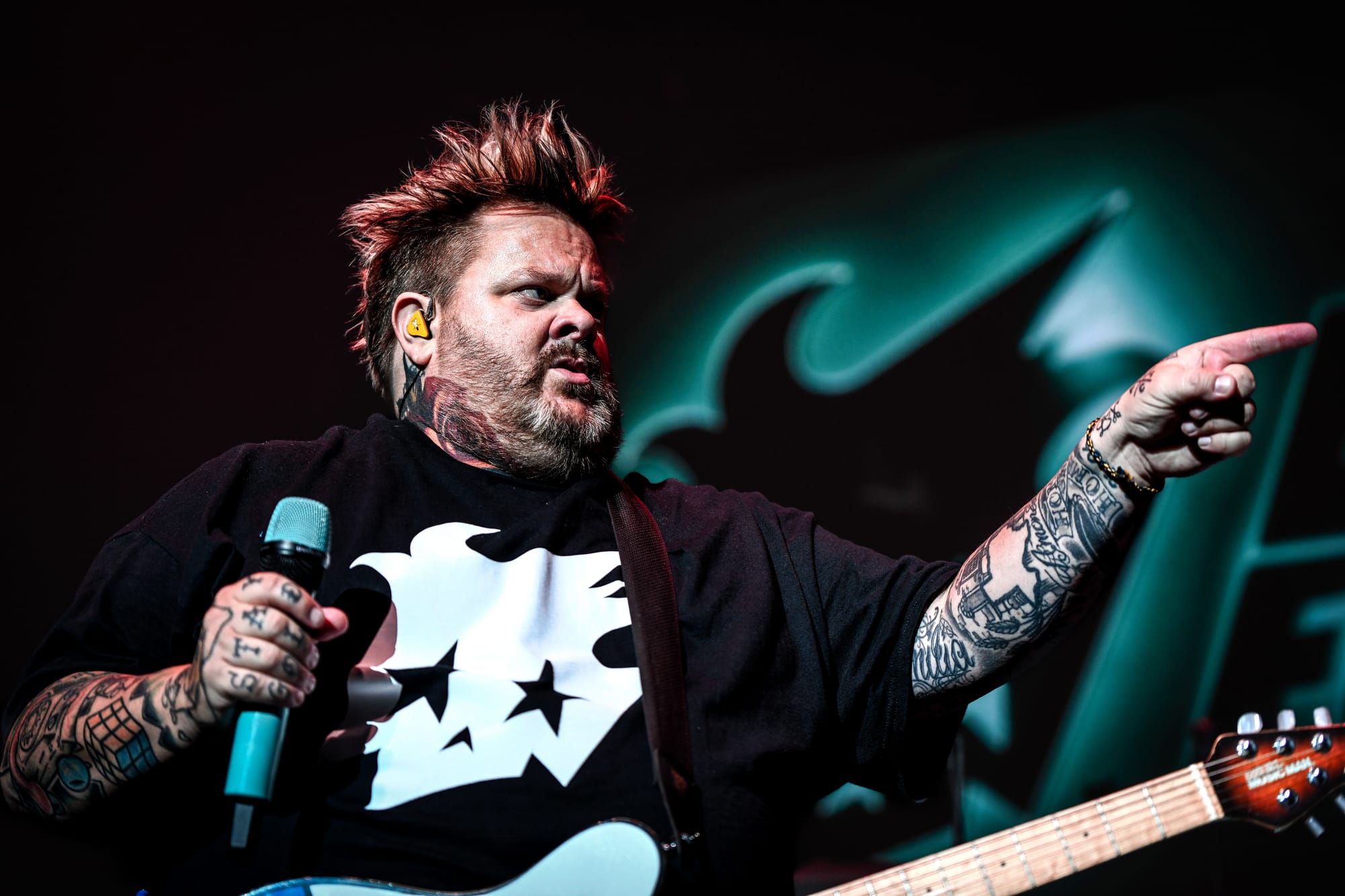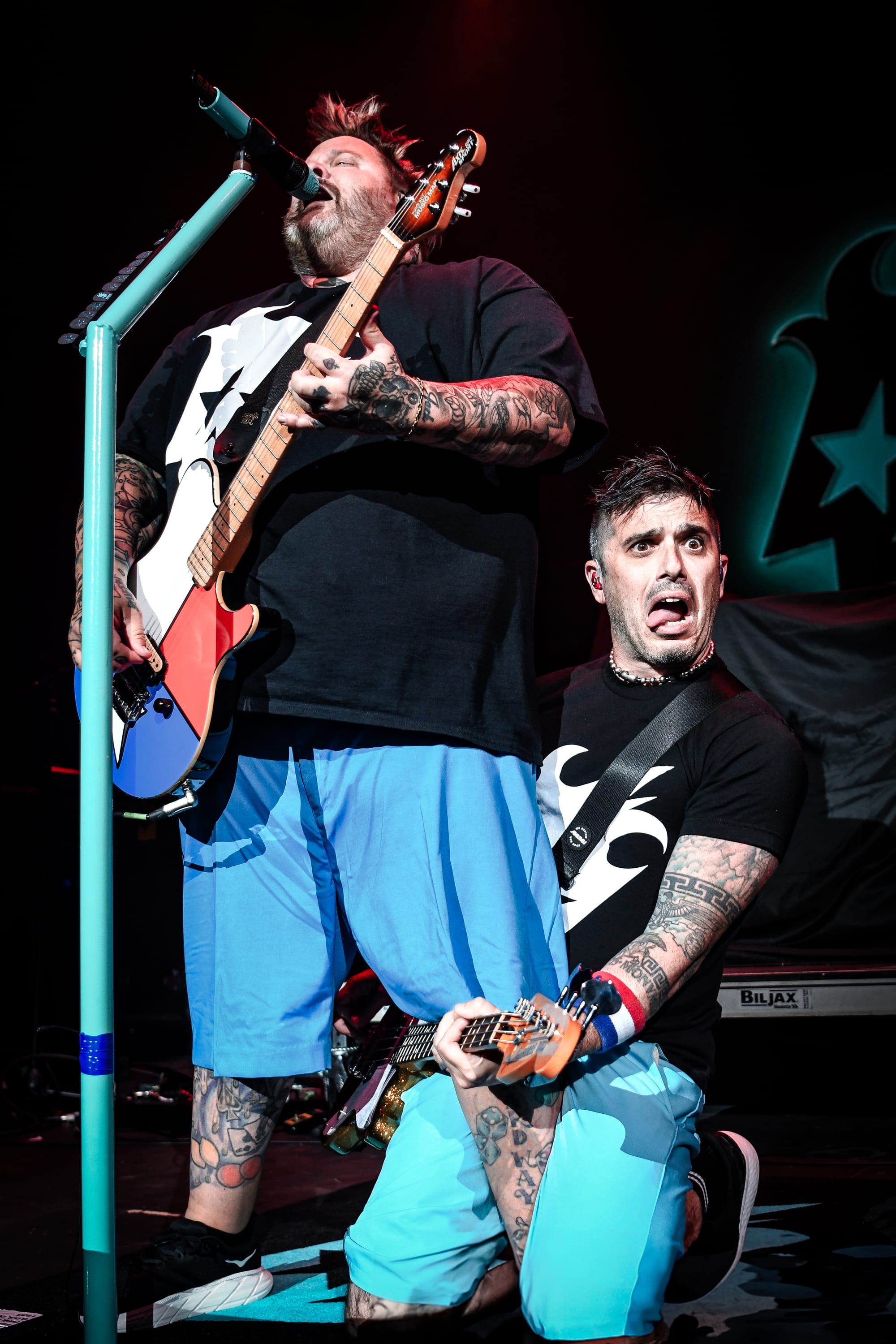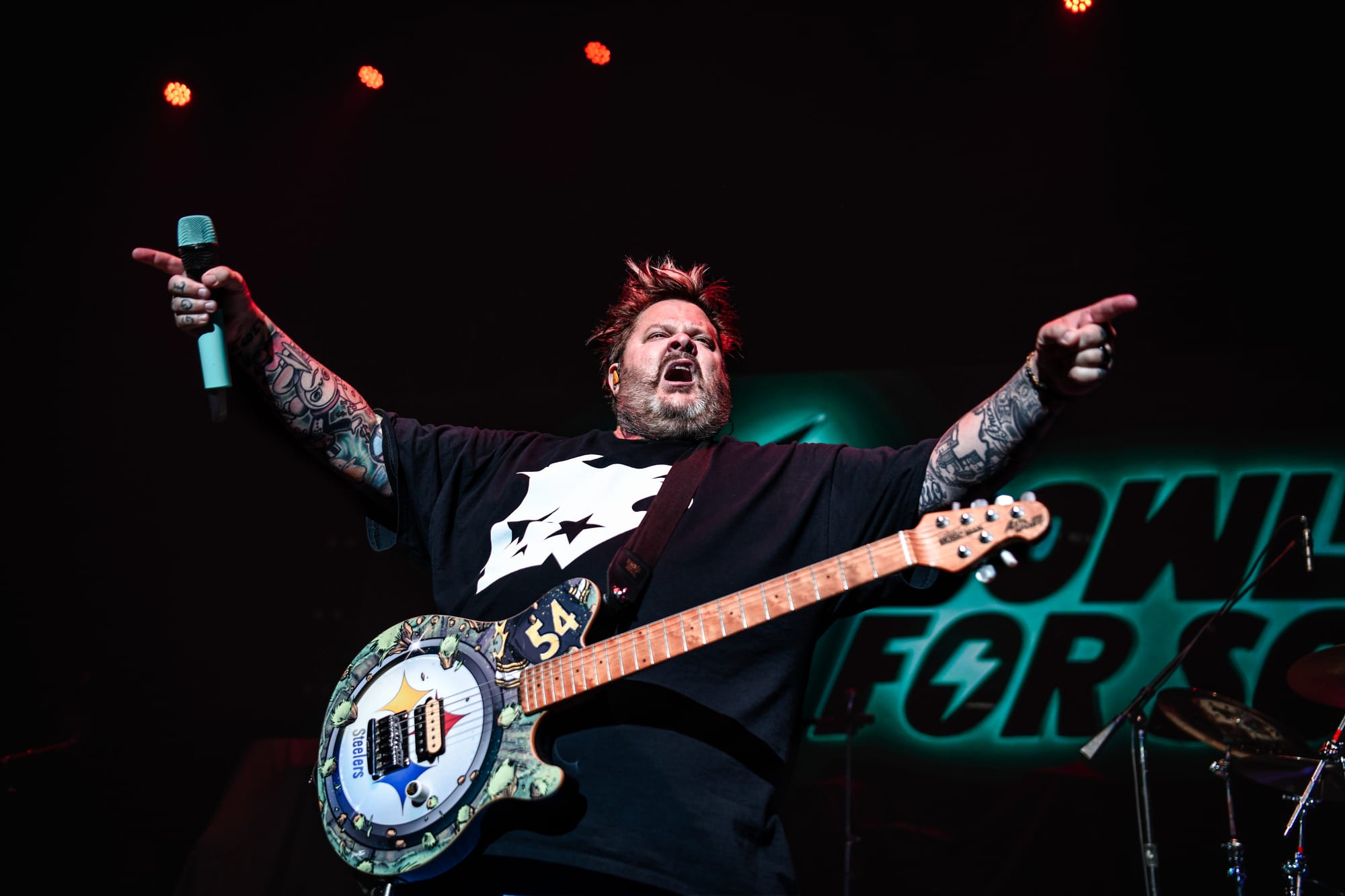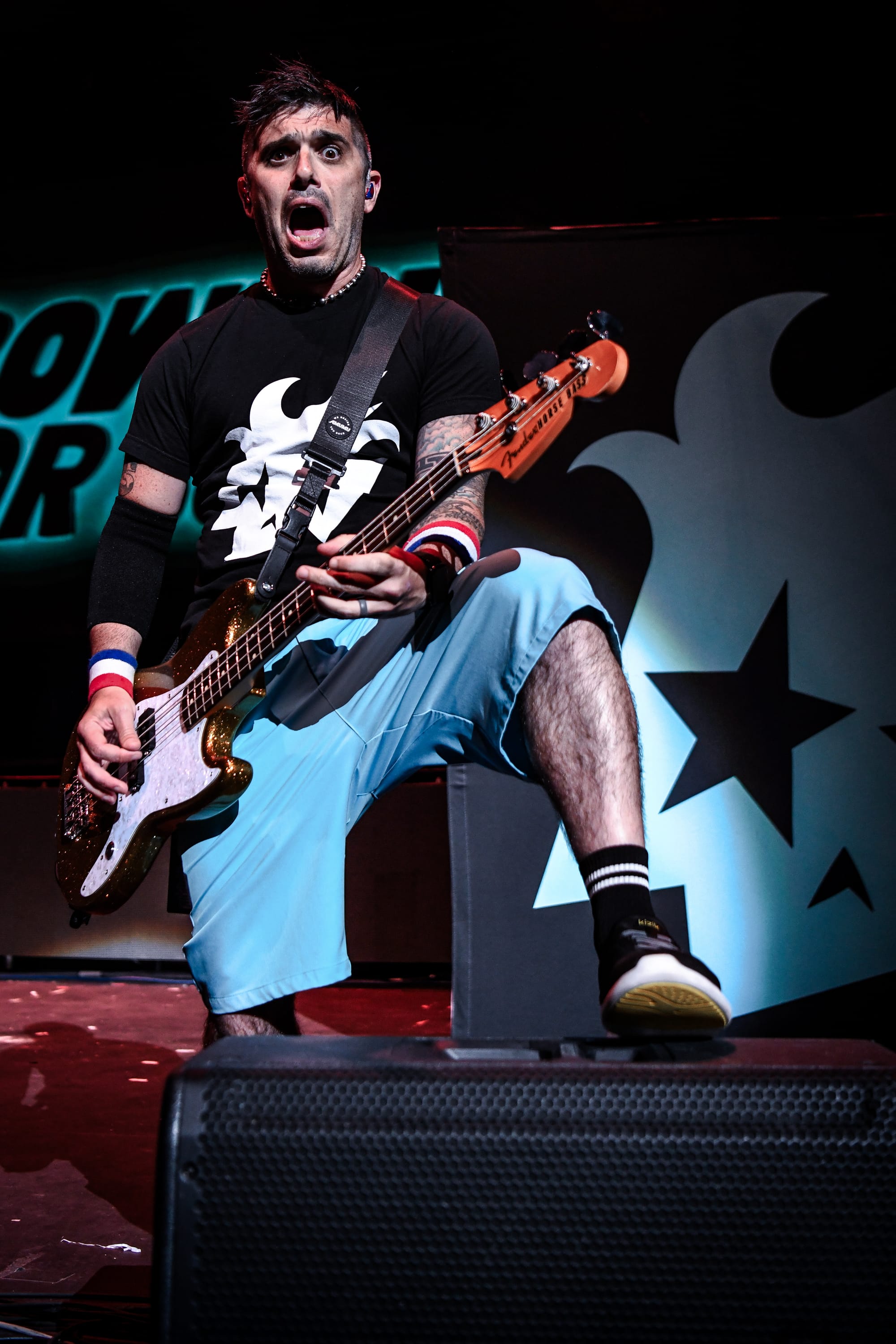Up next, Bowling For Soup gave a standout performance, which had the audience dancing, singing along, and laughing. The Texas-based trio brings the comedy; it’s impossible to move throughout their set without a goofy grin plastered across your face. While the band has an impressive discography, with newer music as well as songs dating all the way back to 1998, the setlist was focused around their earlier hits. Entering to a Bowling For Soup theme song, the band kicked off their set with “Girl All the Bad Guys Want.” They joked about how a bunch of 40- and 50-year-old men would spend the rest of the night singing songs they wrote in and about high school before launching into “High School Never Ends.” Their engagement with the audience was top-notch, and they often had fans rolling with laughter with their onstage antics. They heckled the audience a bit and made a playful jab at tourmates Simple Plan as they discussed how they had the theme song for the number one cartoon, which was "Phineas and Ferb" (not "Scooby Doo"), subsequently playing “Today is Gonna Be a Great Day.” The band also had a funny way of praising themselves after each song, exclaiming, “Wow, wasn’t that great?,” which had the audience laughing. In a particularly funny exchange with a fan, singer and guitarist Jaret Reddick asked a fan if he was supposed to be able to read what they had written from far away before retrieving the note, only to admit that he still couldn’t read it because he is 53 and does not wear his glasses on stage. Another fan removed their shirt and threw it at Reddick, asking for his autograph, despite the band being in the middle of a performance. While he did sign it, he noted that if they did not have time to play "1985," it would be her fault. This had the crowd playfully booing before the band moved directly into the song, bringing the entire venue to their feet as they sang along to every word.