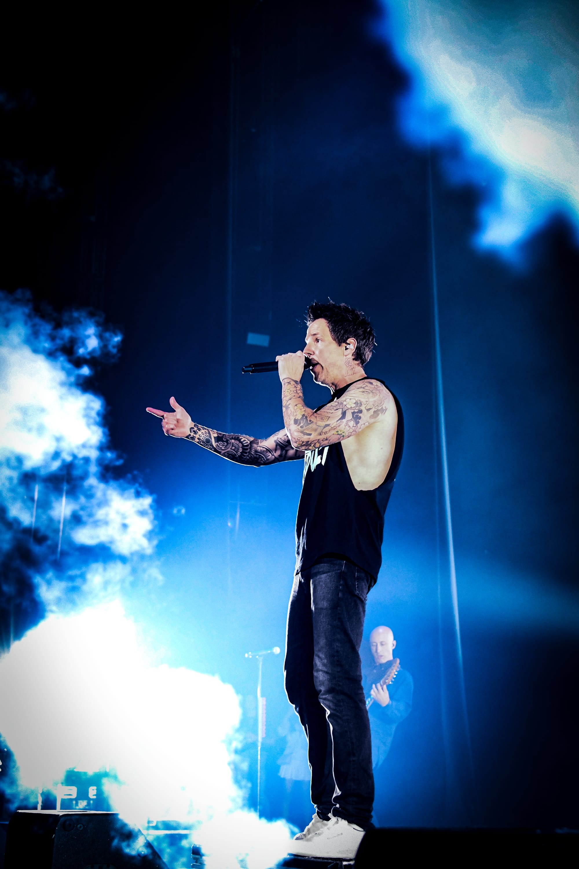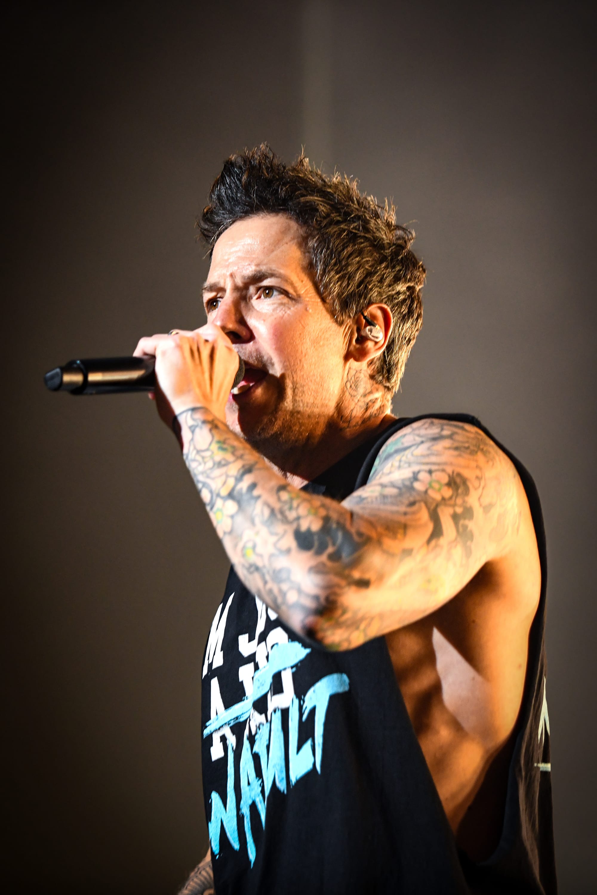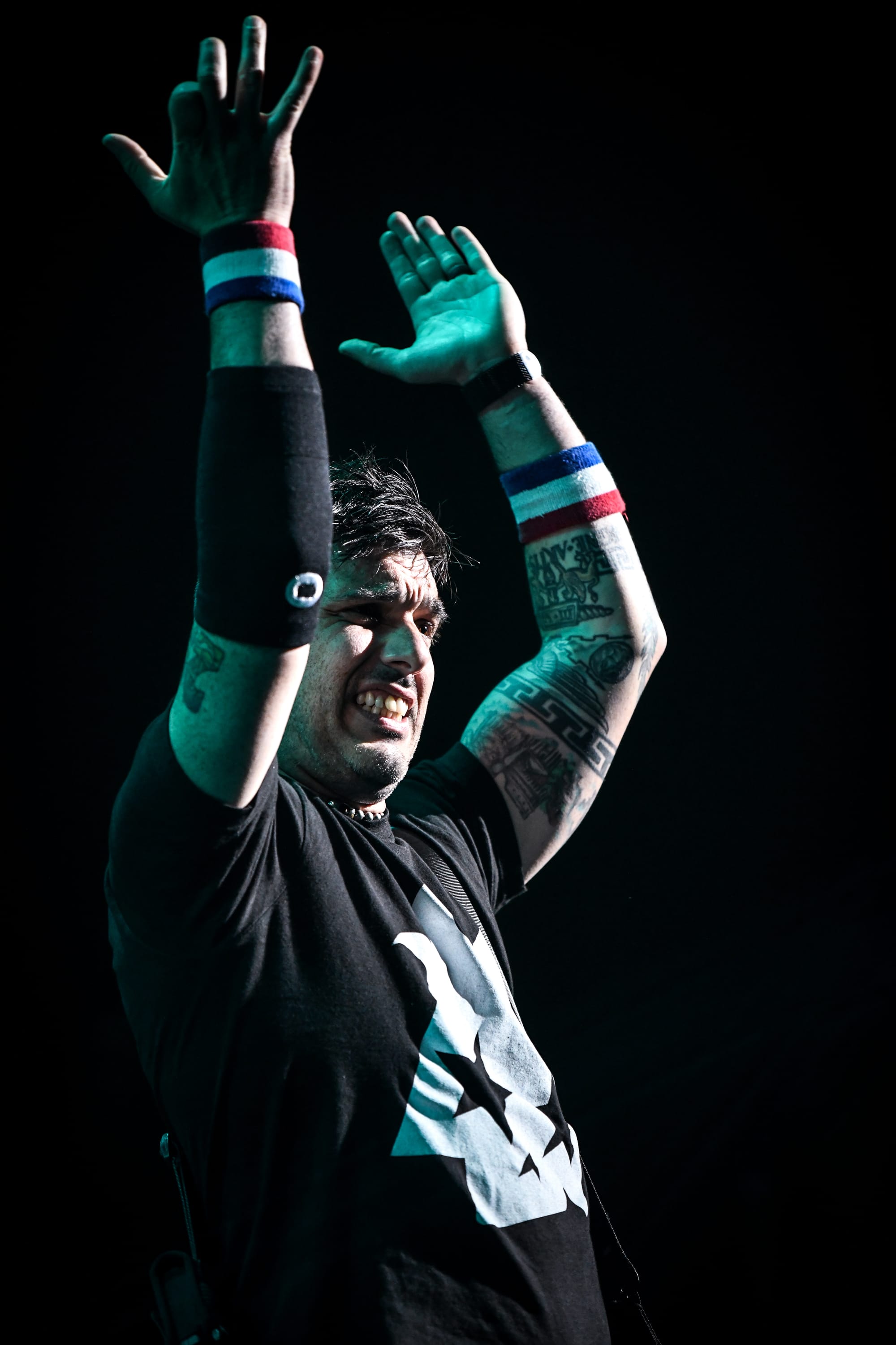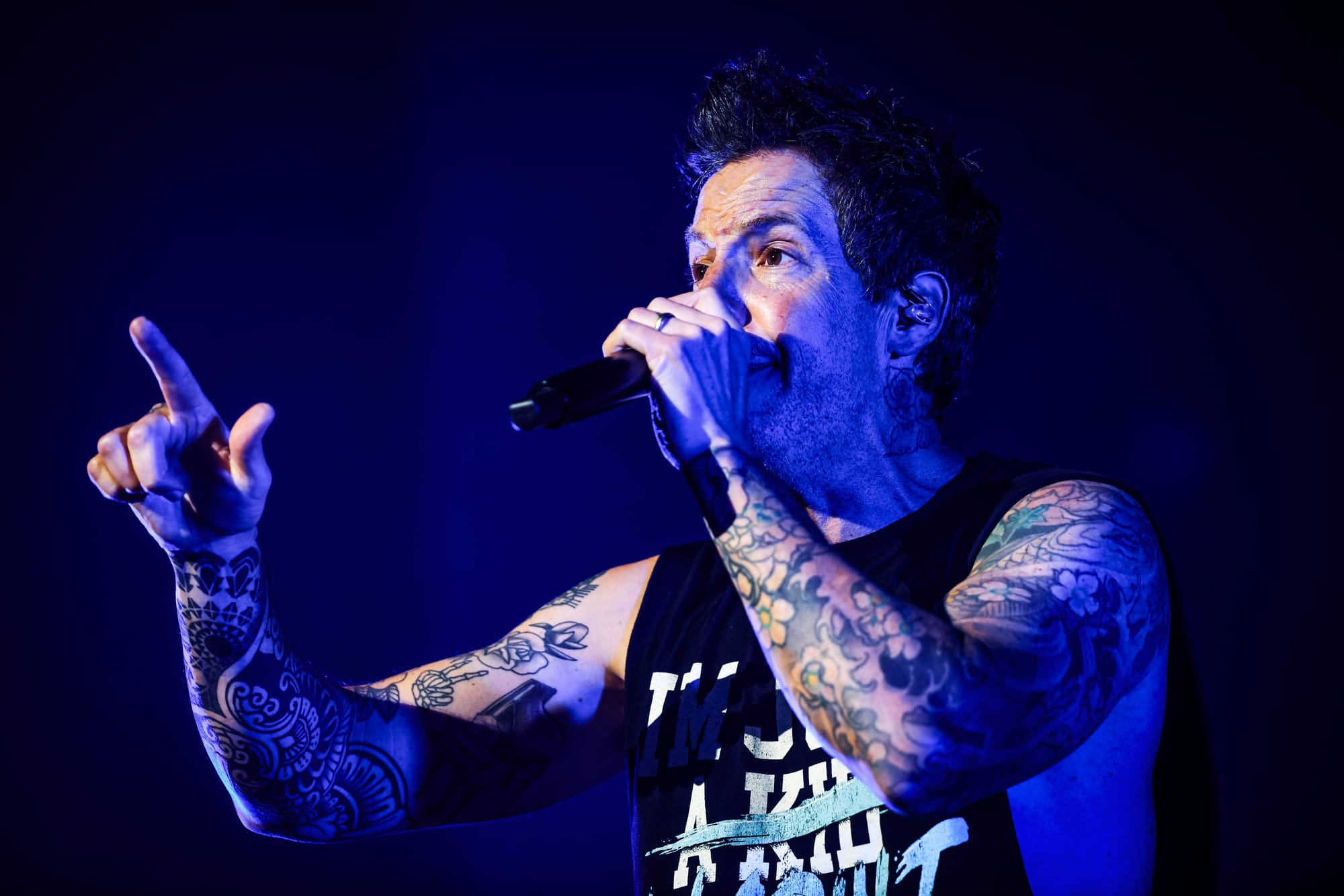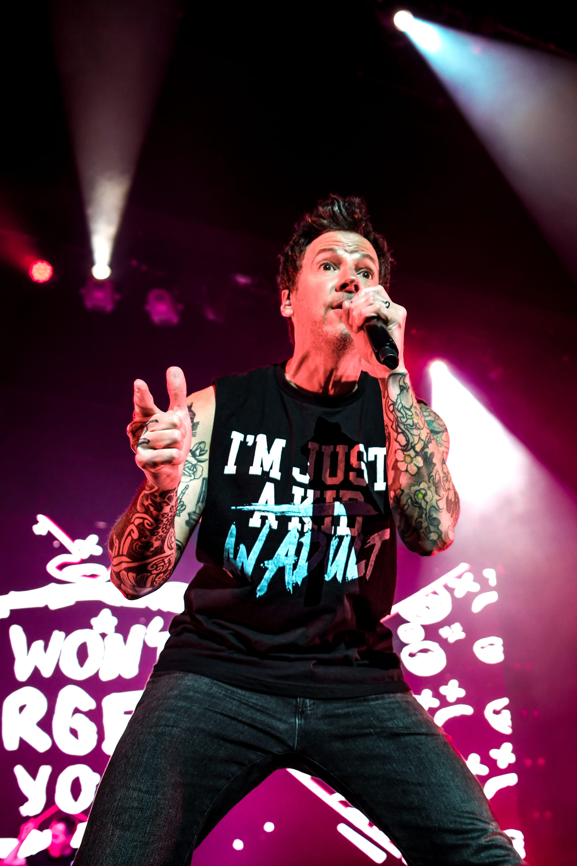 Pierre returned to the main stage for a medley of “The Worst Day Ever,” “My Alien,” “God Must Hate Me,” “Grow Up,” and “Vacation,” before immediately moving into another medley of covers, which included “All Star,” “Sk8er Boi,” and “Mr. Brightside.” For “What’s New Scooby Doo?,” the band invited all fans who had dressed the part to the stage for a giant dance party. Approximately 30 fans who, despite the unbearable Phoenix heat, donned Scooby Doo onesies, as well as a few men who were dressed in Velma’s garb, poured over the barricade, some crowdsurfing to the stage, to join Simple Plan for the iconic song. The set ended with “Where I Belong” before the band returned to the stage for another medley of songs, this time including “Crazy,” “Perfect World,” “Save You,” and “This Song Saved My Life.” Pierre thanked fans who, after all these years, proved to their parents that, in fact, “it was never a phase!” by continuing to support the band. Images of the band as children appeared on the screen as they played through “I’m Just a Kid” before officially ending the nostalgic night with a heartfelt performance of “Perfect.” Fans held up their flashlights, some crying, as they sang along to that final song, thinking about how it felt to try to live up to their parents' expectations.