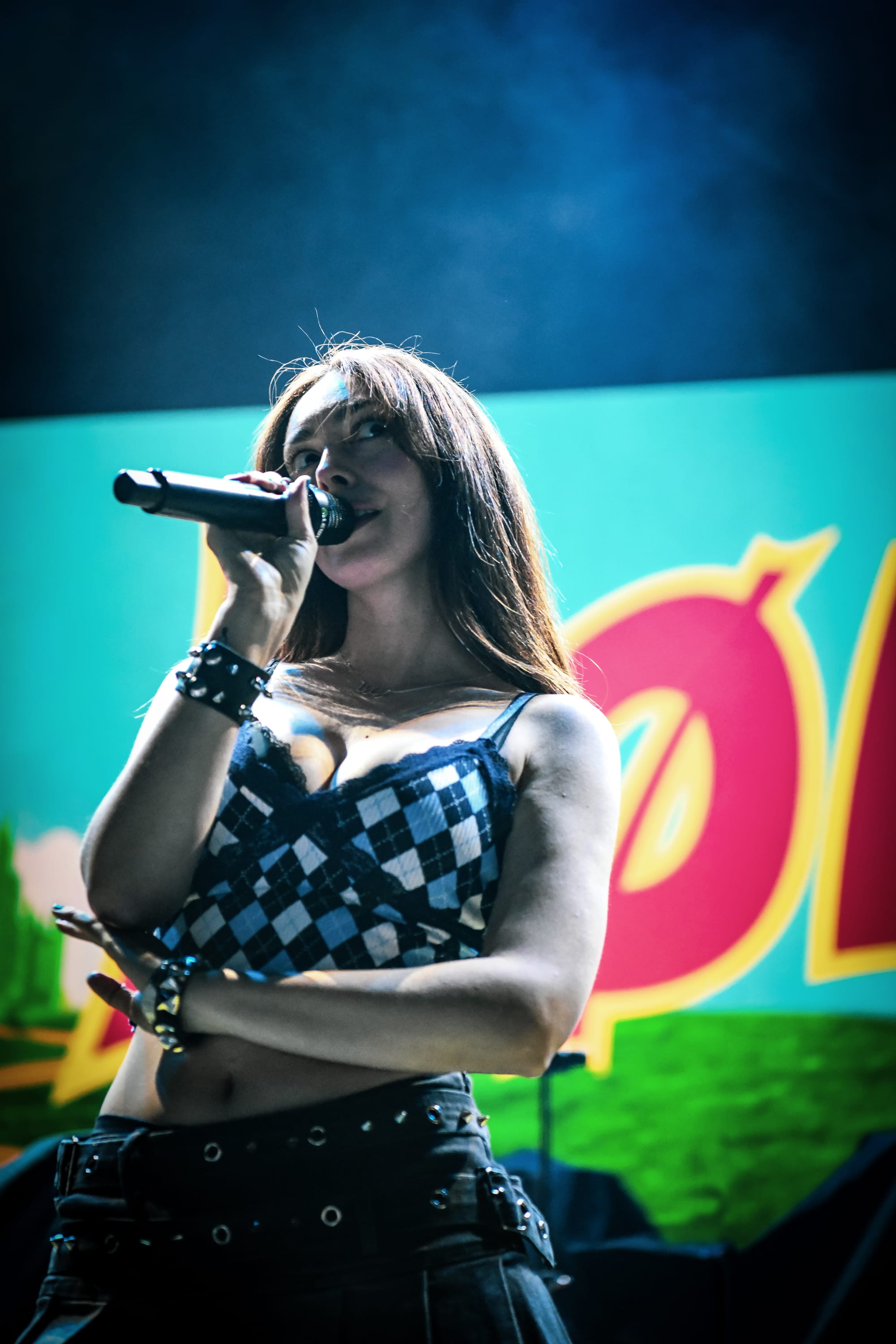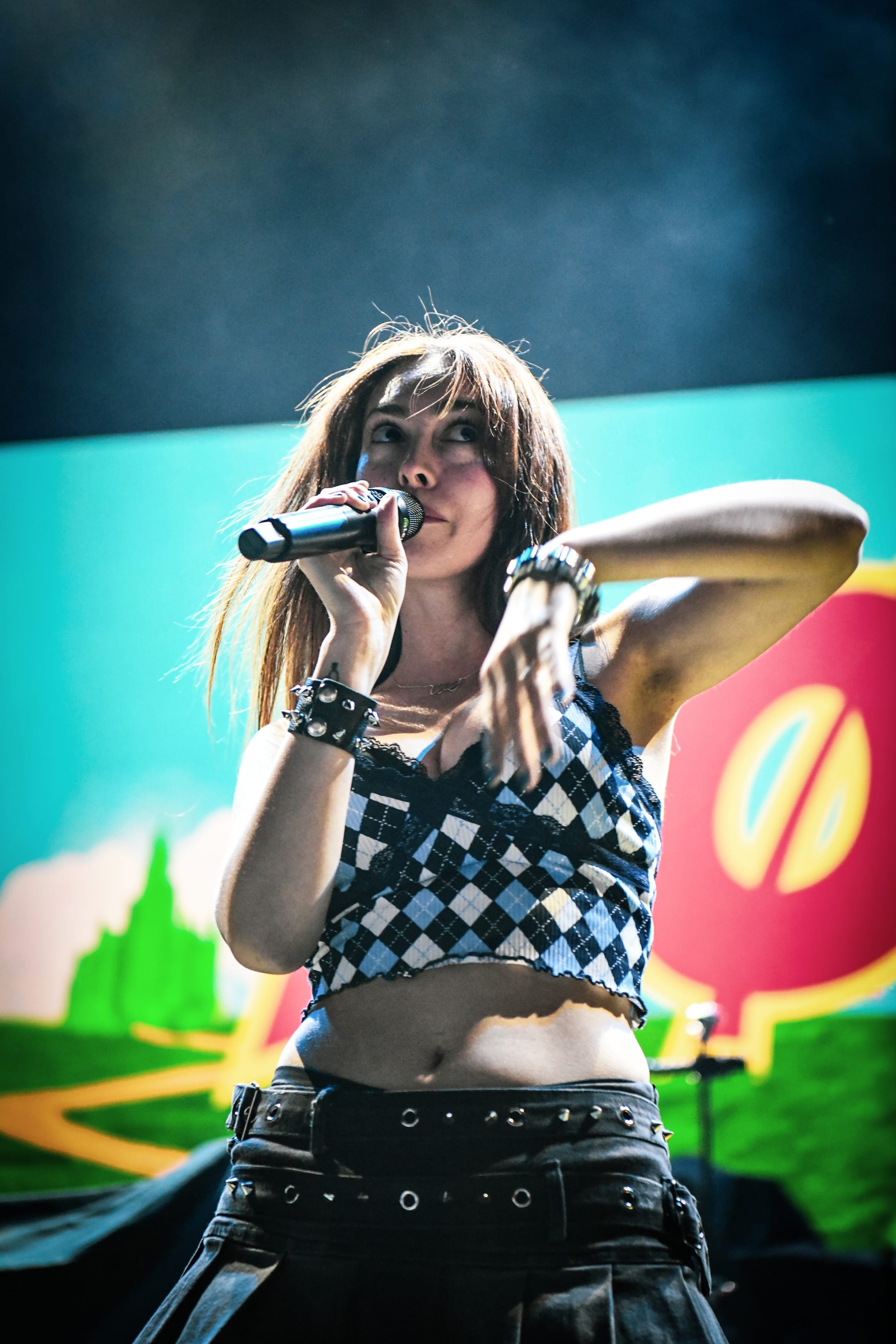 Kicking off the night early, LØLØ burst onto the stage, opening her set with “faceplant,” a track off of her 2024 debut album, falling for robots and wishing i was one which was inspired by a face plant incident that left her with a broken nose, chin, and jaw, and an inability to eat for two months. The Canadian singer-songwriter’s stage setup, much like the cover of her album, was reminiscent of "The Wizard of Oz," complete with a yellow brick road, a backdrop similar to that of the movie, and a little dog pictured on the front of the kick drum, which the singer revealed as her own dog, Slim, named after Eminem’s Slim Shady. LØLØ kept the energy high throughout her set, running, jumping, and headbanging as she took the audience on a journey through her setlist of pop-punk/alt-rock-influenced tunes, including tracks like "u turn me on (but u give me depression)," a song she wrote about someone she was obsessed with that made her mentally ill, and her newest track, “the devil wears converse.” Although audience engagement was already high, LØLØ incorporated an alt-rock cover of Icona Pop’s “I Love It” to get everyone moving and singing along. LØLØ asked the audience to raise their hands if they had an ex they hated and noted that, while she is all about kindness, “if someone f*cks with you, it’s perfectly reasonable that they burn in hell,” before launching into her last song of the evening, “hot girls in hell.” The band took a bow as they exited to “Over the Rainbow.”