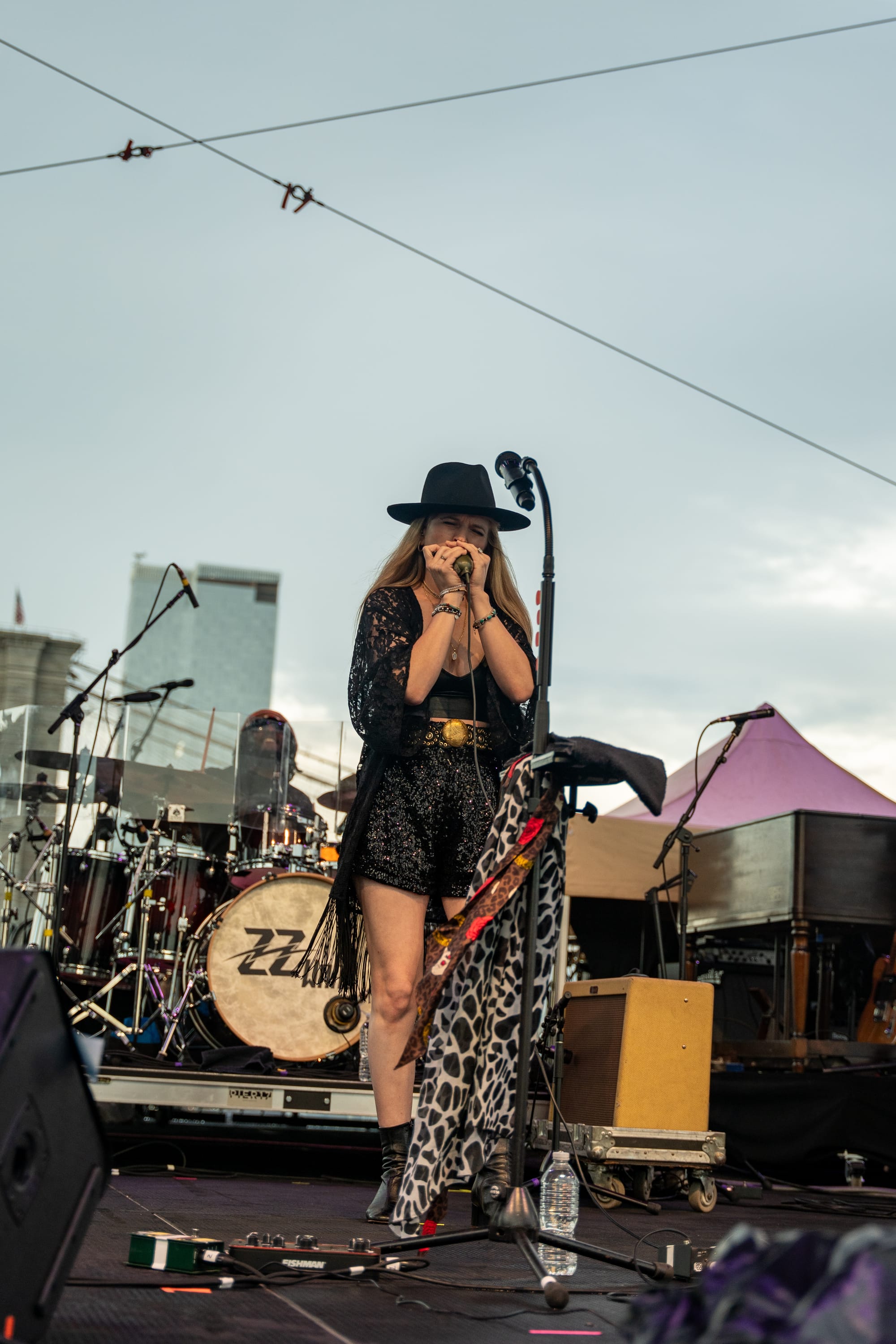 On a rainy summer night in New York City, the Serpent Festival came alive with the sounds of famed guitarist Slash, country star ZZ Ward, and blues legend Keb' Mo'. S.E.R.P.E.N.T. stands for Solidarity, Engagement, Restoration, Peace, Equality, and Tolerance. Once the venue declared it safe for the show to continue after an unprecedented amount of rain, the crowd buzzed with excitement. After the chairs were wiped down and the speakers uncovered, we finally saw the beautiful outdoor venue that is Pier 17. The house was packed and ready to go crazy!