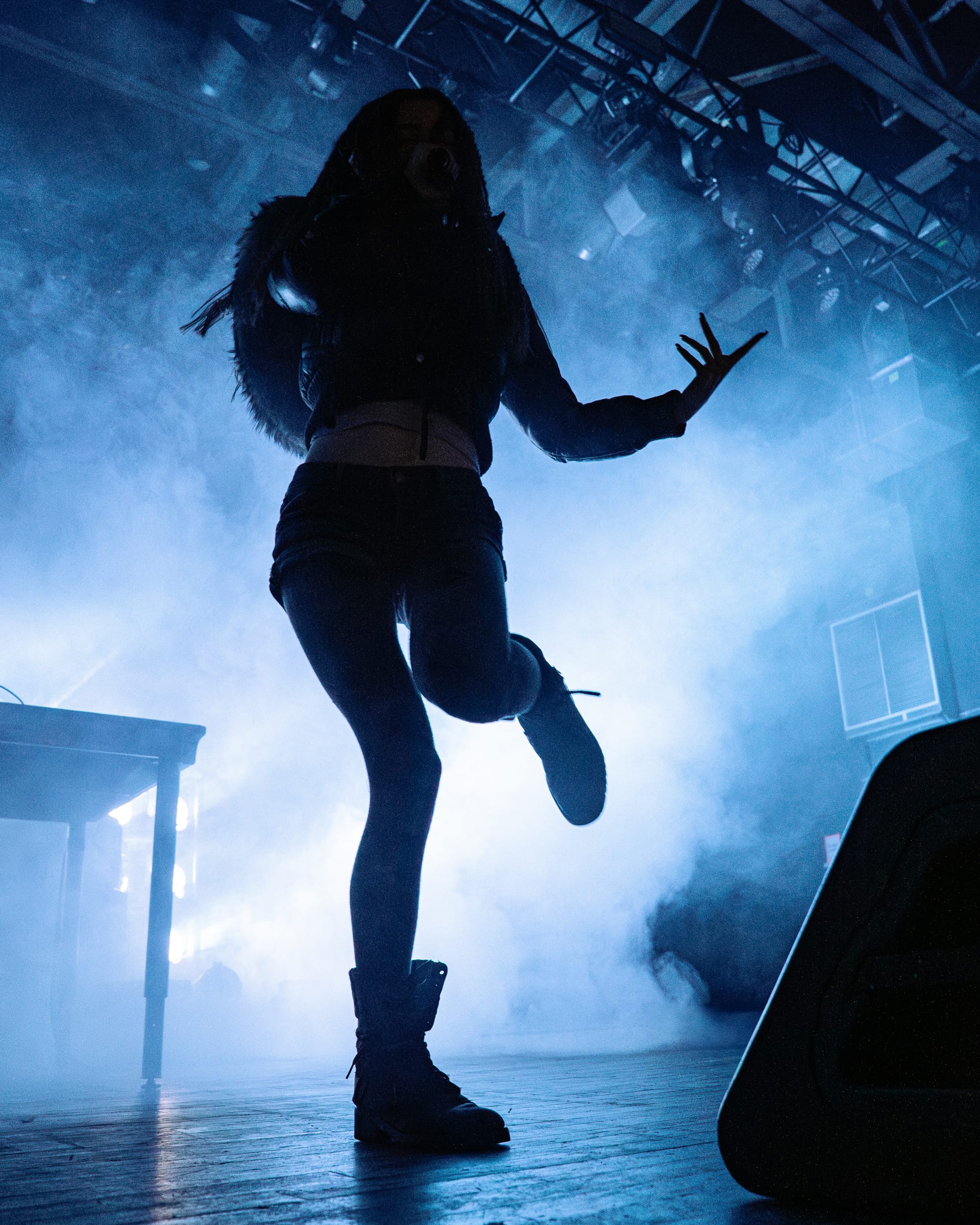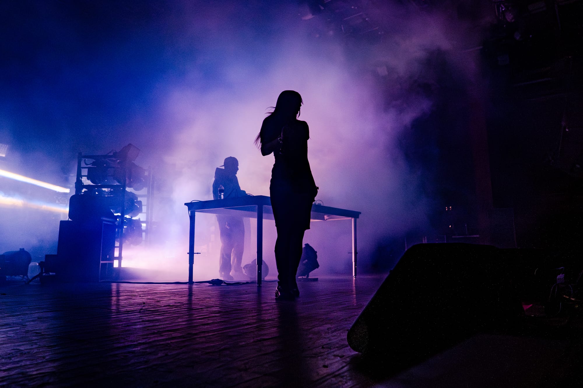 Starting their set at 10pm on the dot, Snow Strippers opened with "Just Your Doll", and the crowd went insane, jumping to the beat with their hands raised high. Tatiana worked the crowd from beginning to end, with her amazing stage presence, dancing and singing around the stage with ease, with a fan blowing in her hair. Paired with the beautiful strobe light setup constantly going off, it added a whole new level of immersion to the experience. Graham was mostly live mixing in the back, but don't think he was stuck there the whole time. He would occasionally come towards the front with Tatiana, dancing along with everyone, and the crowd loved it.