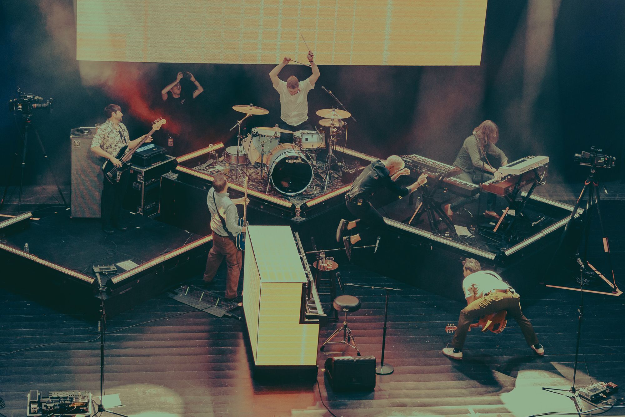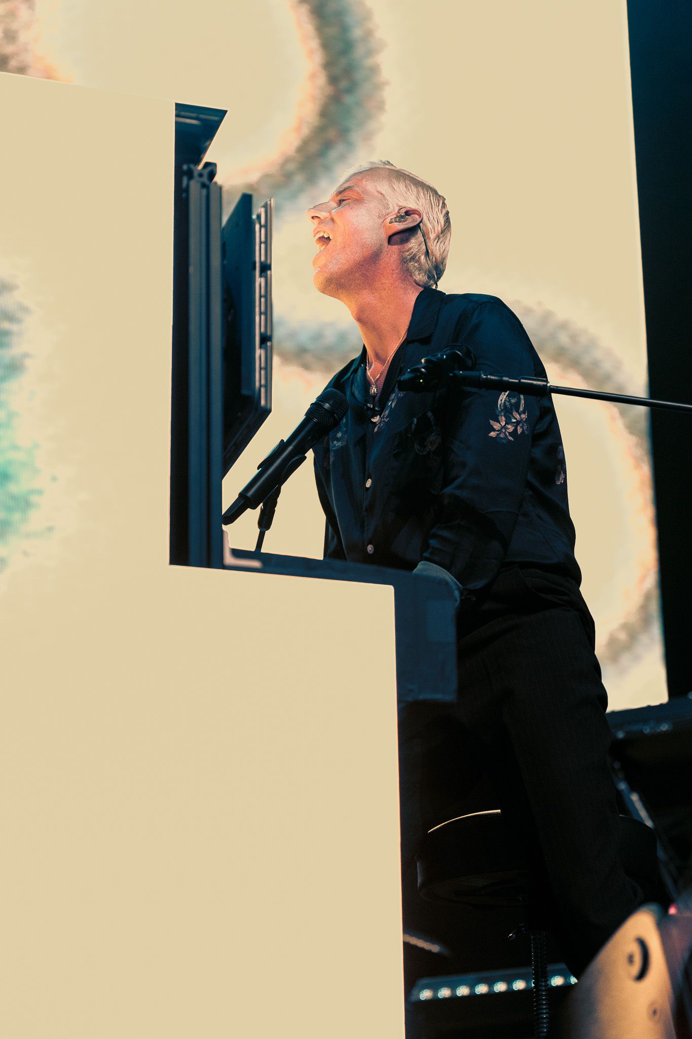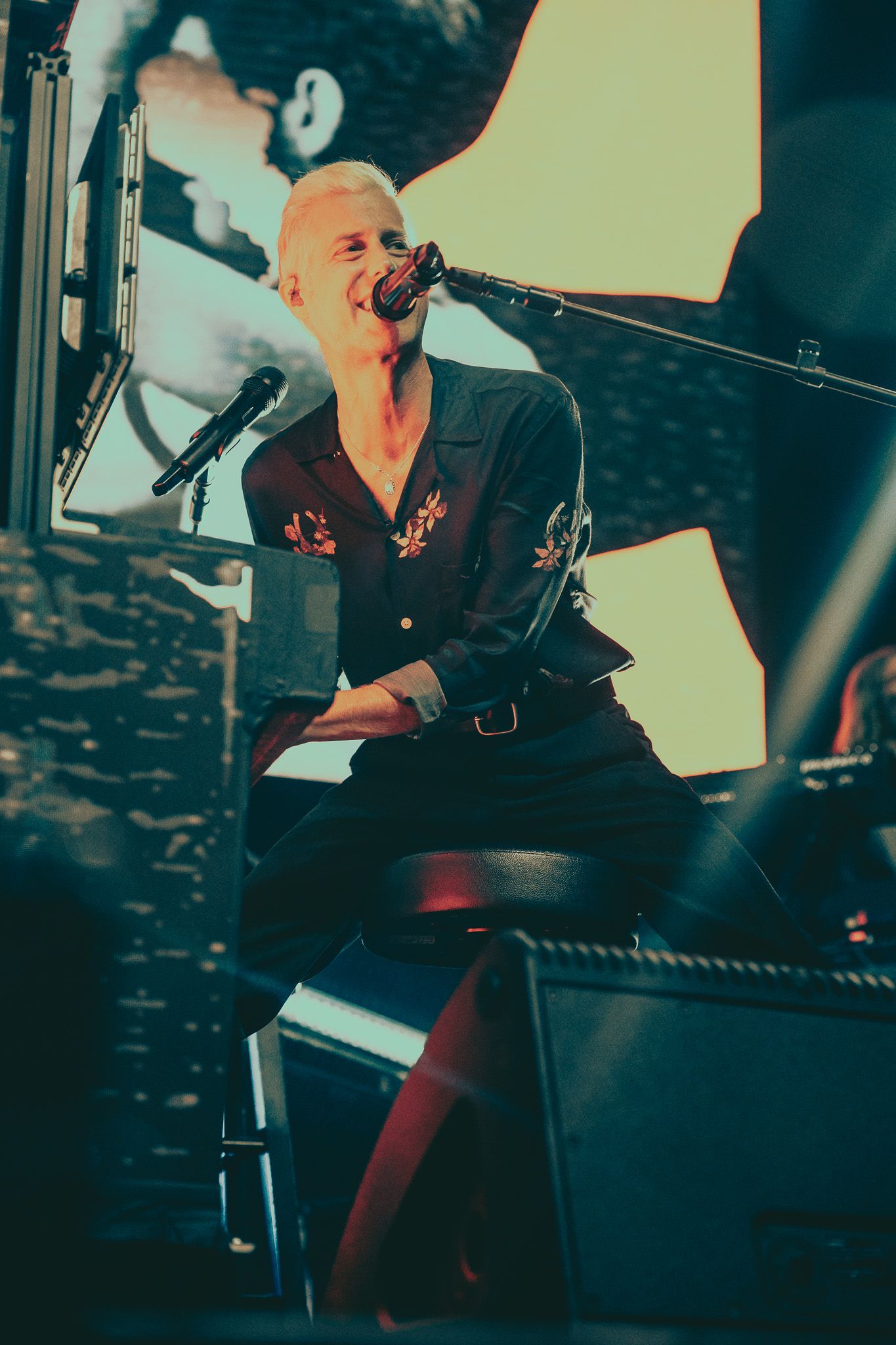 Between sets, Something Corporate teased an upcoming event that McMahon has hinted to quite a bit recently. While the details aren’t released just yet, the unveiling of a screen promising a weekend in 2024 featuring all three of McMahon’s musical projects was greeted with screams and cheers, lighting up the room before the band even set foot on stage. Met with further cheers was the reveal of McMahon’s piano for the night; he’d traded in his usual baby grand for an upright, an homage to the pianos he toured with circa 2003, but with a modern twist - outfitted with LED screens, the piano sported multiple looks throughout the concert.