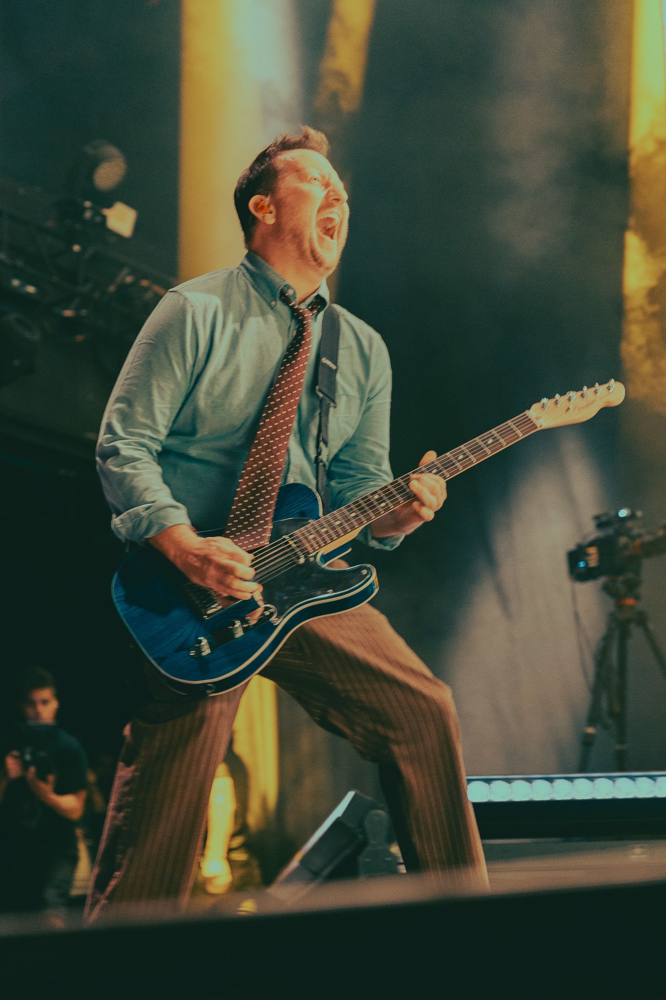 Drummer Brian Ireland’s younger self commented on how lucky the five friends are to be creating music in “Something Brian,” a sentiment the older version of himself clearly shares; though drummers are often the unsung heroes of a live performance, Ireland’s joy was infectious even from his spot at the back of the stage. McMahon then began “Konstantine” solo; rarely played due to the song’s impressive length of nearly ten minutes, the House of Blues was lucky to be treated to the entire, full version of the song, while the weekend’s festival sets would only get a single chorus for the sake of saving time. A holy grail song for many SoCo fans, many tears were shed throughout the audience during this one; the rest of the band took their time to say hello to each other and share a few hugs before joining in one by one for the rest of the song. The band then closed the main set with “If U C Jordan,” a song truly one of its time; almost comical in its description of a petty feud McMahon had with a high school rival, even so many later, there is something just so cathartic about screaming expletives in a room full of strangers who somehow also all feel like long time friends. Before leaving the stage, McMahon took time to introduce the rest of the band, with a special shout out to Zac Clark. Though not a member of the original SoCo lineup, Clark has been a part of McMahon’s touring band in more recent years after being a devout fan for many years, and so getting to perform with one of his teenage self’s favorite bands was an incredibly full circle moment for him. A good friend to crew and crowd alike, Clark’s presence has become an intrinsic part of McMahon’s performance in any iteration, and the audience was deeply proud to share the experience with him.