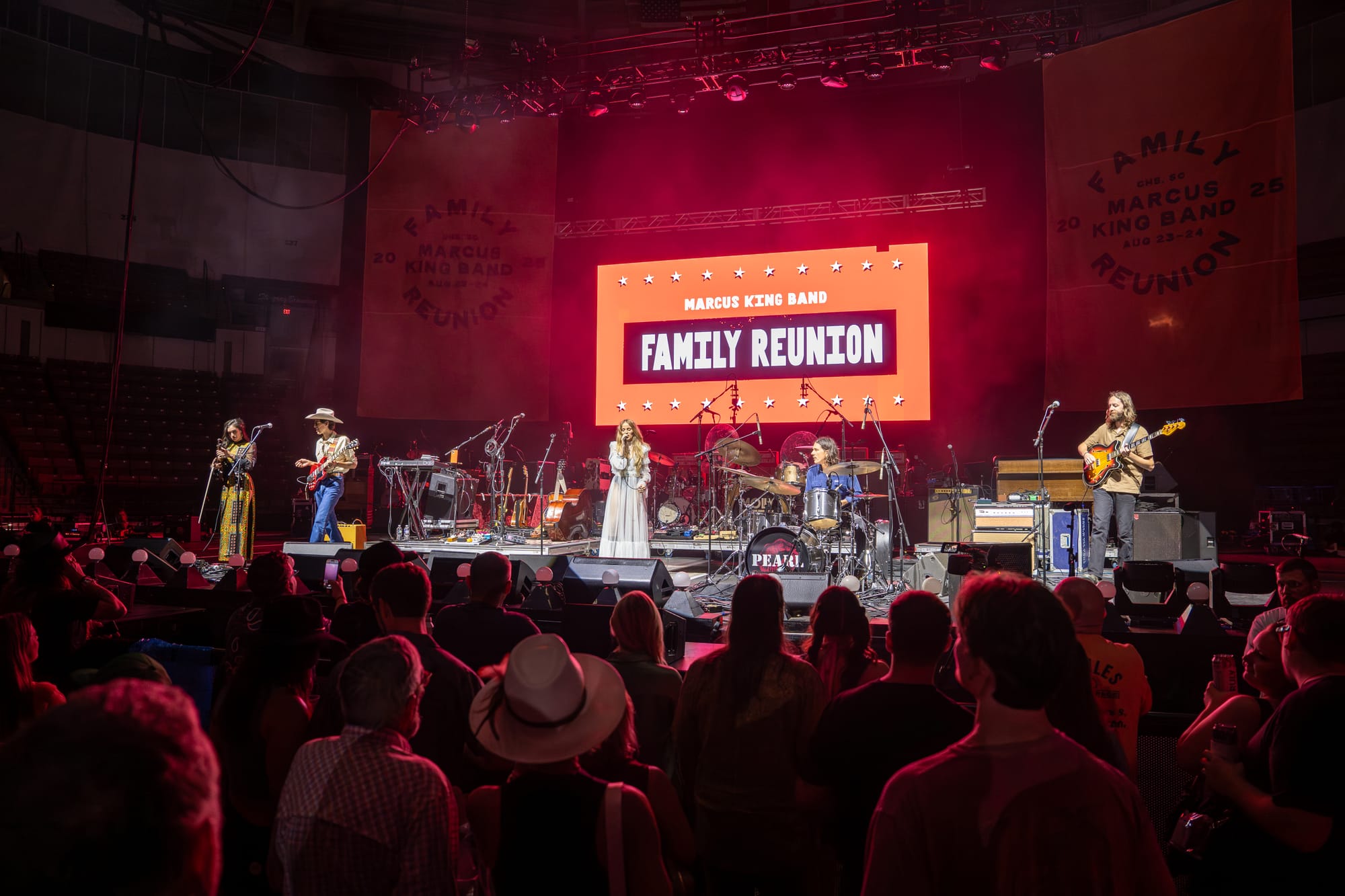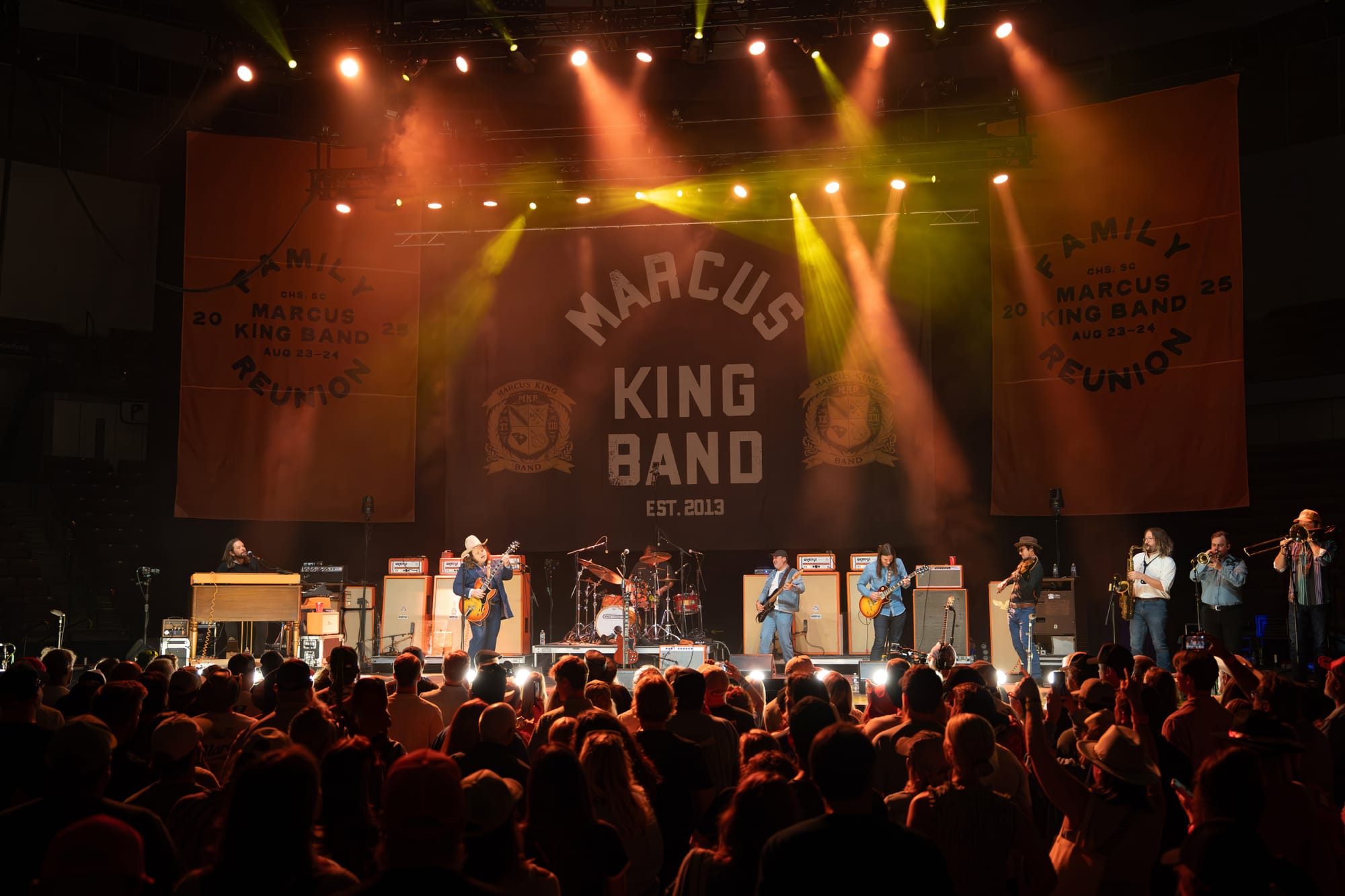 When Marcus King throws a party, you can bet it’ll be soaked in soul, sweat, and lit by an inner southern fire, and the 2025 Family Reunion in Charleston didn’t disappoint. You can probably imagine what Marcus might have originally envisioned. A warm end-of-summer gathering under South Carolina skies, the smell of open-fire BBQ pits bellowing through the air, and the twang of guitars echoing off the weeping trees surrounding Firefly Distillery. But when August storms swept through Charleston with little warning, the show had to pivot, and pivot it did. In under 24 hours, King’s hardworking crew packed up and moved the entire operation indoors to the North Charleston Coliseum. While some may have missed the open sky, what we got was something far more unexpected. A rockabilly music cathedral, with acoustics as crisp as the string pickin' and a crowd whose energy was reminiscent of a Grand Ole Opry audience. The two-day music and food celebration wasn’t just a concert. It was a gathering filled with gratitude and grit. Each artist made their mark on the weekend. From honky-tonk tributes to cosmic jams and high-octane bluegrass, it was two days of celebration, with Marcus himself anchoring both nights.