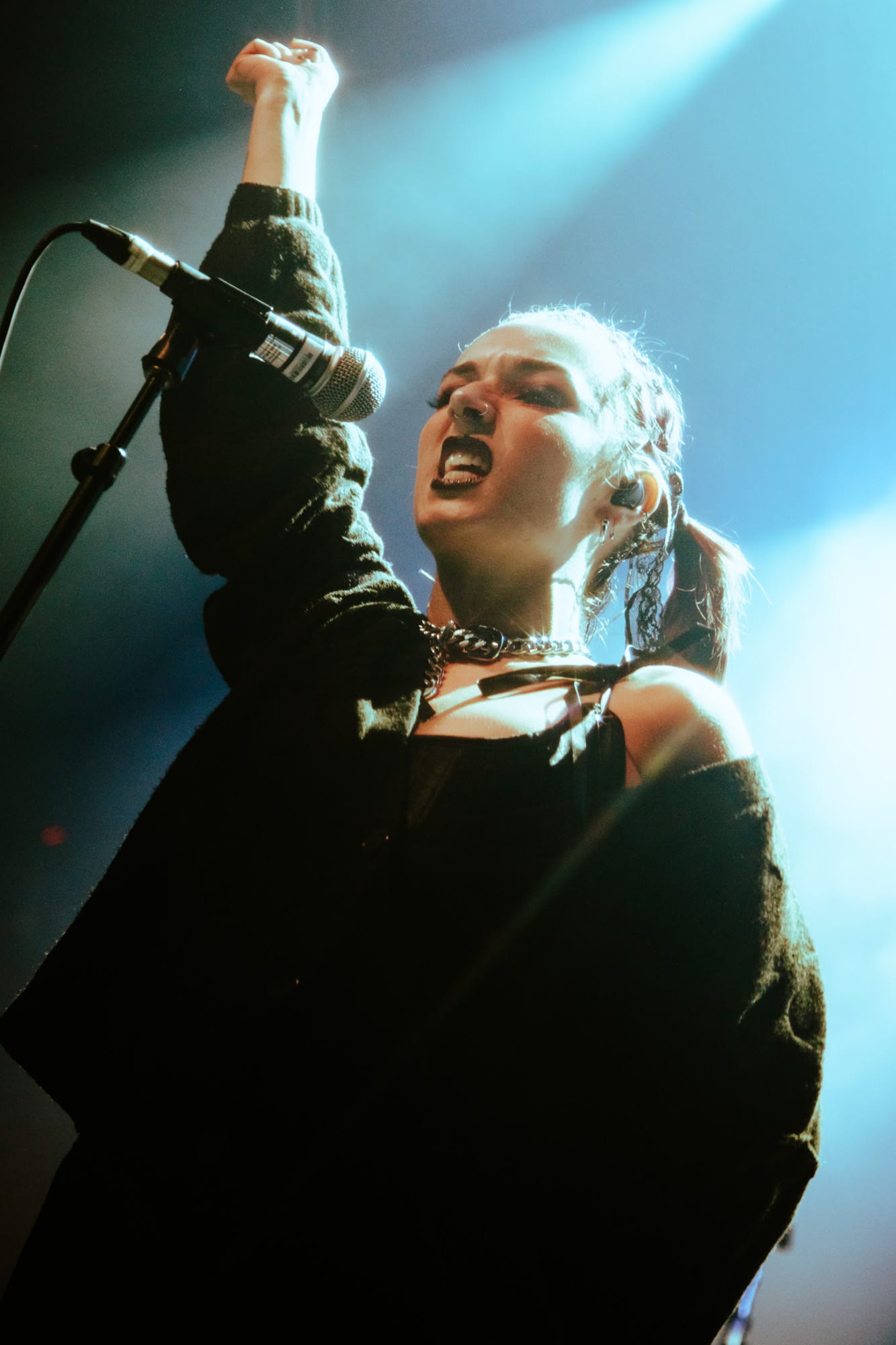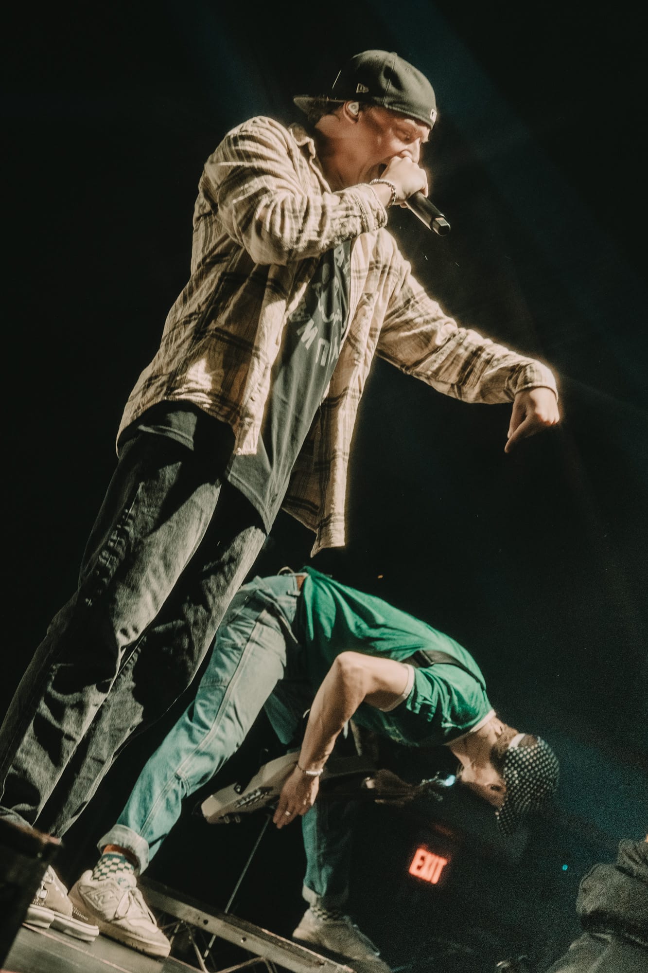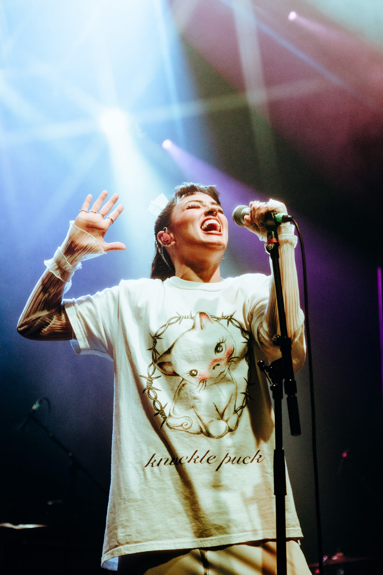 Meet Me @ The Altar bounded on stage next with bright vibes and even brighter smiles. The band is deceiving when three members grace the stage, but don't be fooled their sound fills a room like none other. Singer, Edith Victoria, led into the track “Hit Like A Girl” by having the audience start a circle pit where boys are not allowed. Quickly, a hole opened with women spinning around each other, a trio even formed their own circle in the center. Guitarist Téa Campbell and drummer Ada Juarez form the stabilizing legs of the trio, bringing their performance to the next level. The band finished out their set with a mashup of covers featuring “Sweetness”, “My Friends Over You,” and “My Own Worst Enemy”.