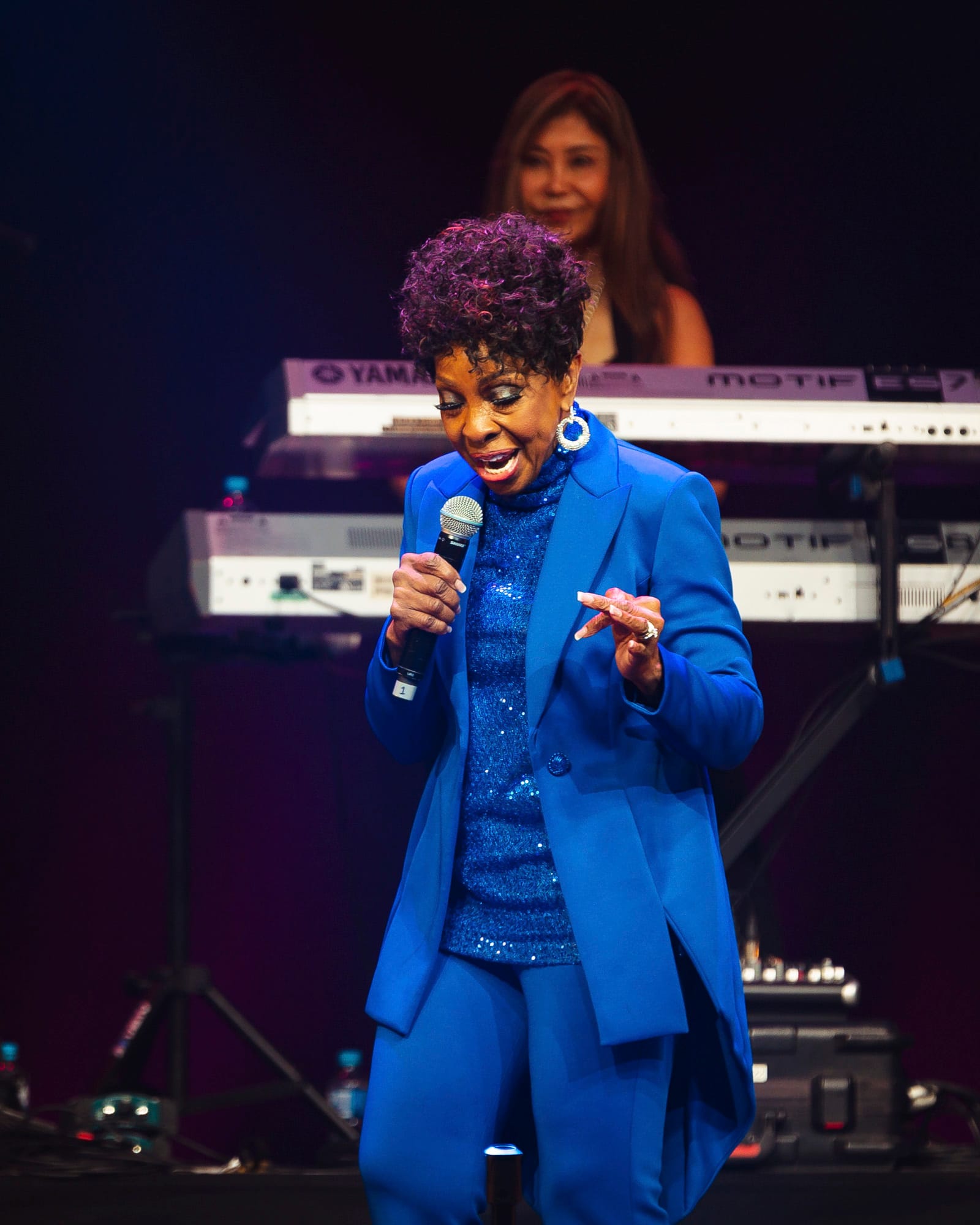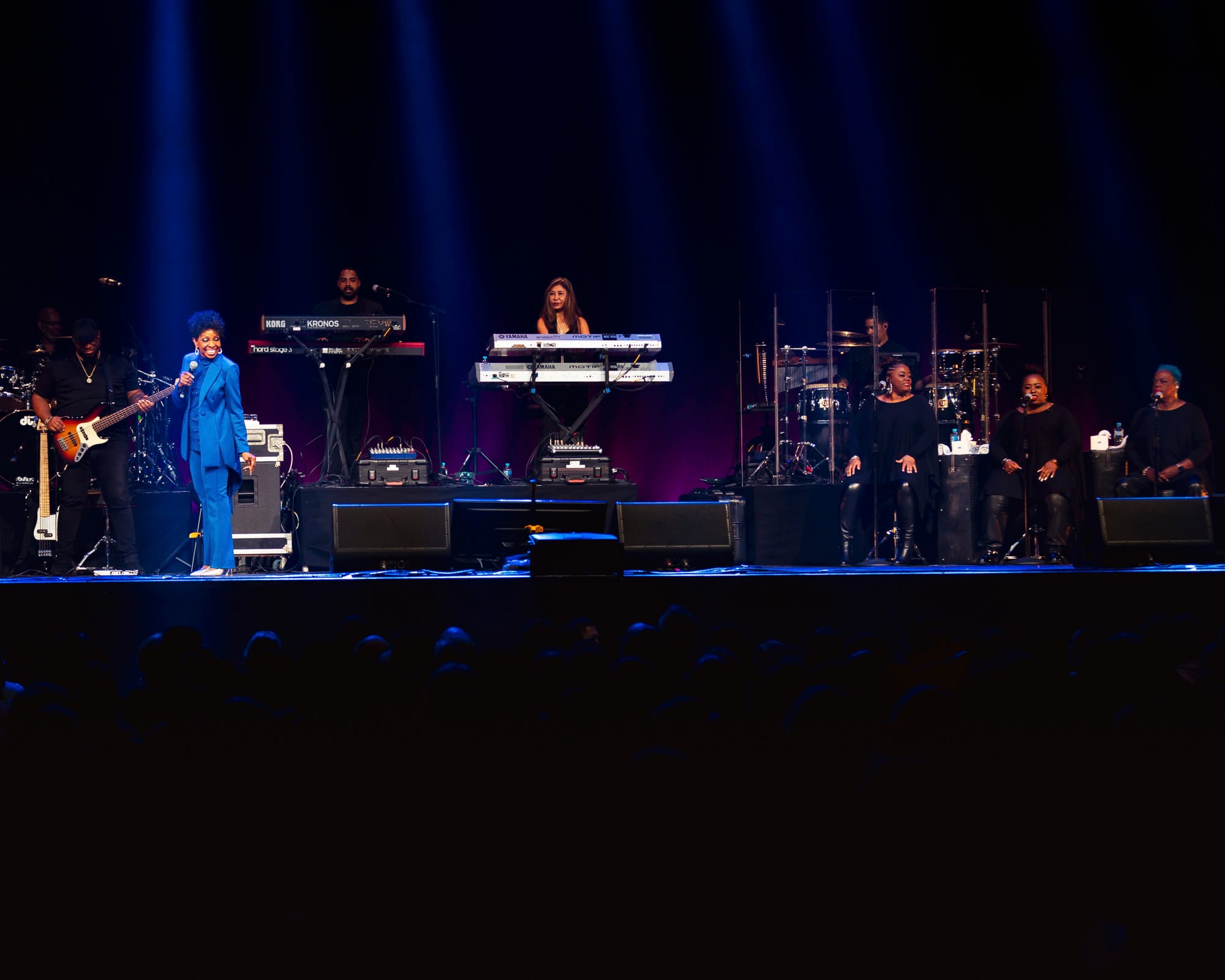 After a little bit of an extended intermission that saw classic tunes fill the room, the lights dimmed and the band took their places. The lighting cast a canopy of soft blues, yellows, and whites over the stage, creating a setting reminiscent of a Sunday service. This turned out to be the perfect setting because Auntie Gladys definitely took us to church!