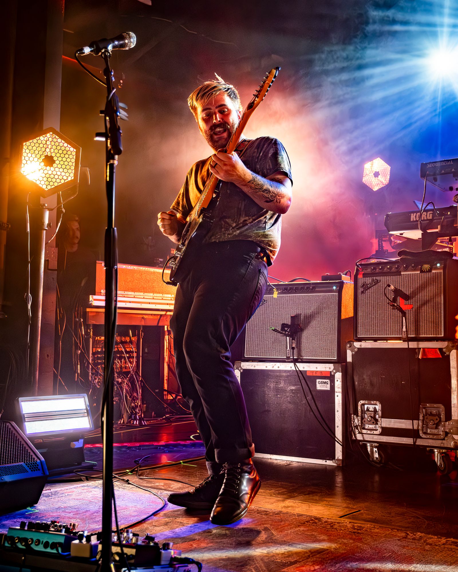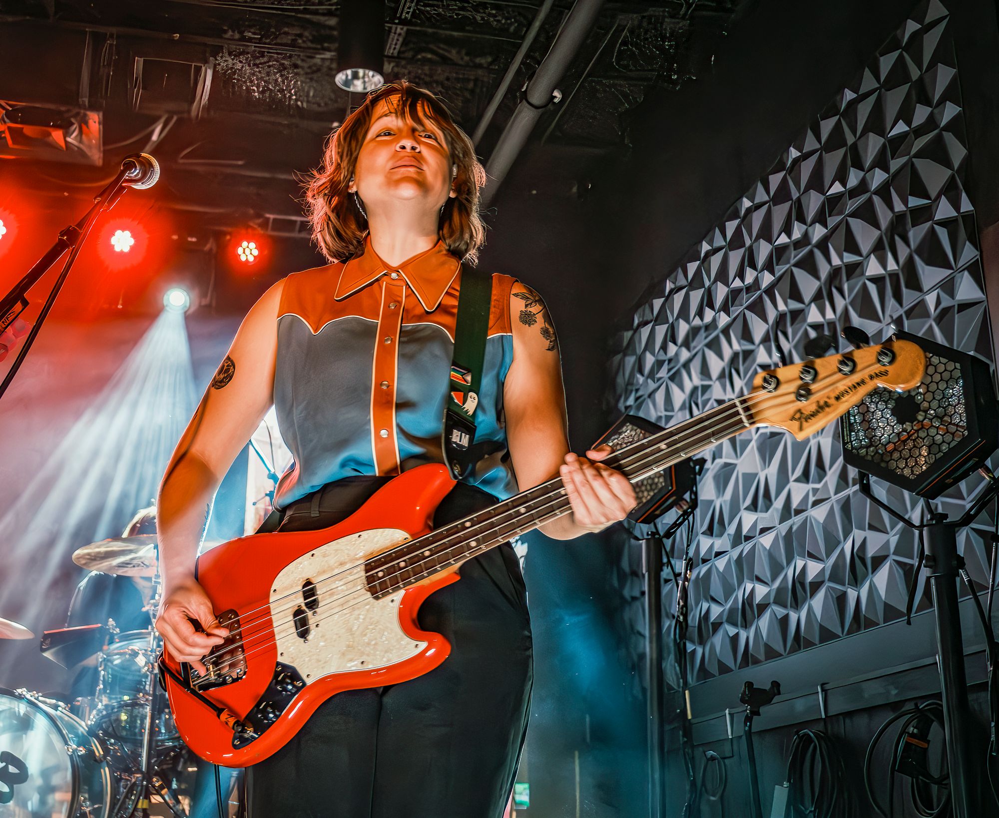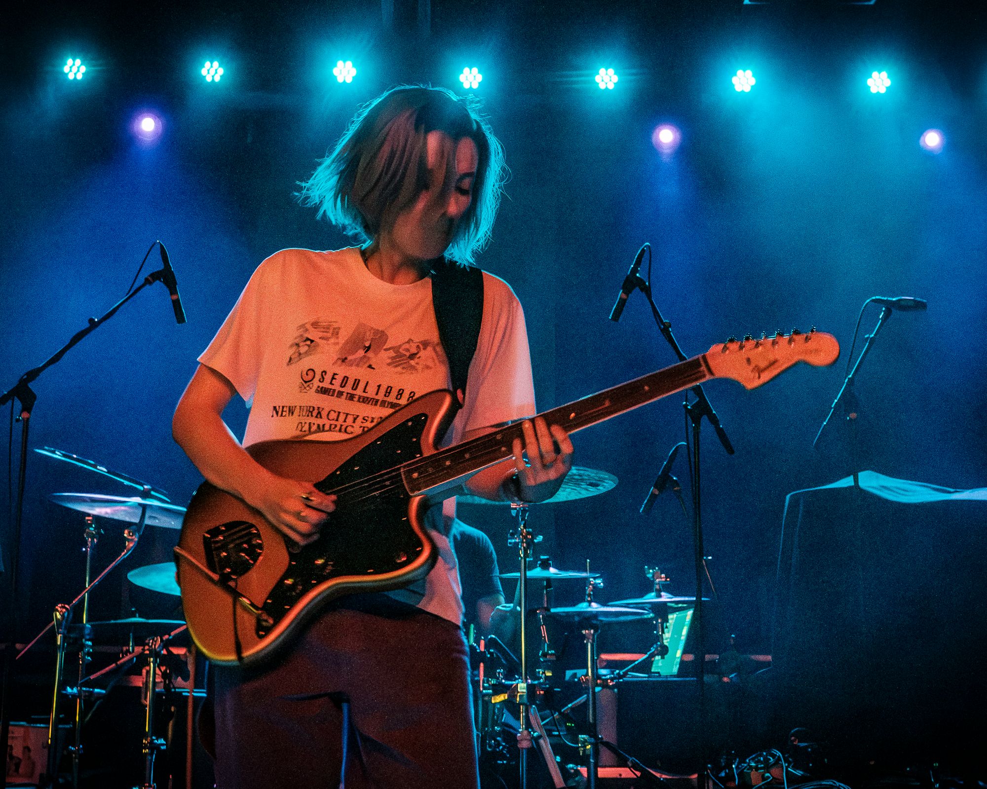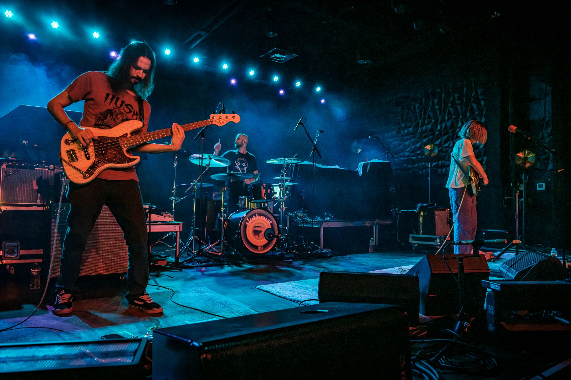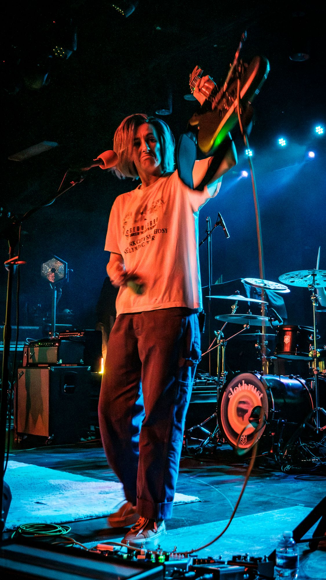 The first act of the night, making their Columbia, SC debut, were Boston based alt rockers Slothrust. Slothrust took the stage to a cheering crowd who was ready to get the show started. A row of purple and teal lights ran across the top side of the back of the dimly lit stage. This was a fitting call back to the 90’s that paired well with Slothrust’s grungy sound. Singer / guitar player Leah Wellbaum donned a guitar and kicked things off with a solo that would have been perfectly at home in a storage unit practice space or a band members garage before greeting the cheering crowd. It was obvious this band was going to have fun playing, and that fun vibe quickly spread throughout the crowd. The first few songs of the night took on a very chill garage rocks meets shoegaze type of vibe before shifting gears into a more old school punk rock sound with "Planetarium". The crowd seemed to be feeding off of Slothrust’s stage presence. Bass player Brooks Allison headbanged along all night while drummer Will Gorin went wild on the kit behind Leah Wellbaum’s funky dance moves. Shifting gears again the band kicked into an extremely well done cover of Ginuwine’s “Pony” that you can hear on their most recent release I Promise. The crowd ate it up from the very first note and sang along nearly as loudly as the band. While this may have been Slothrust’s first time in Columbia they absolutely left with a few new fans, Myself included.