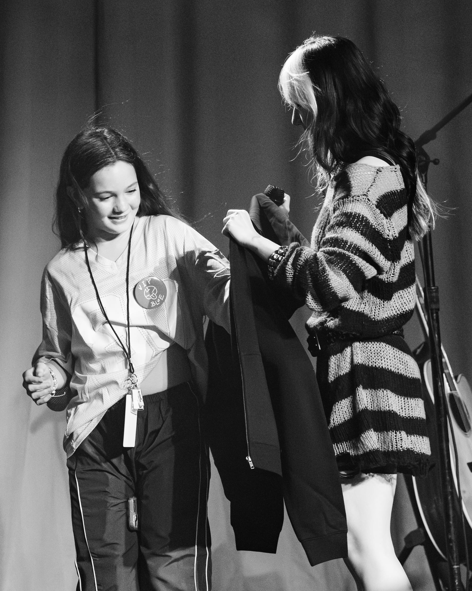 Halfway through the set, Hannah announced she was searching for her "Perfect Blue," and the crowd went nuts, hoping they would get picked. After some time, A young fan was picked and got to show off her outfit, and was later gifted a jacket.