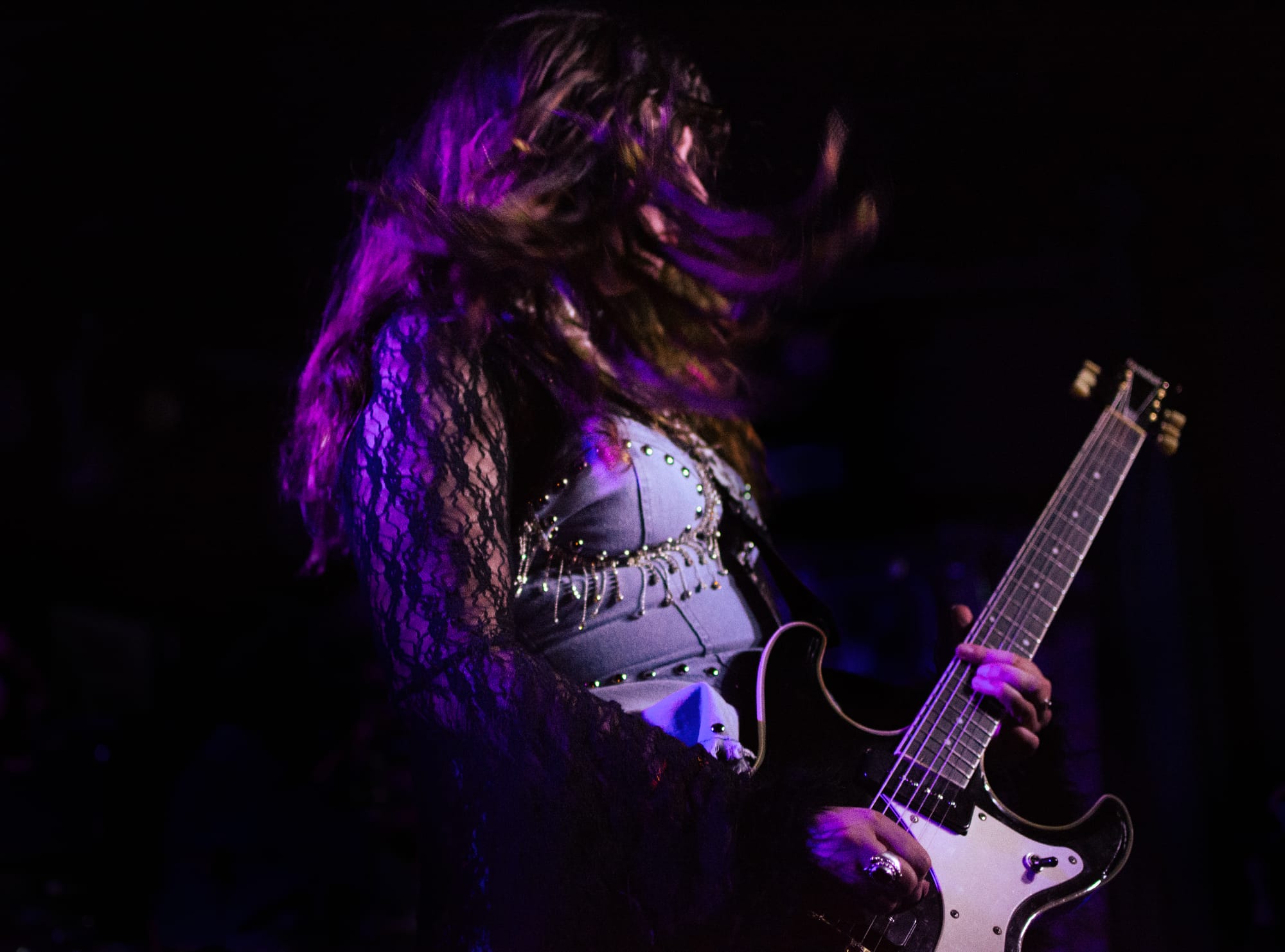 Known for their dreamy rock 'n' roll sound and high-energy sets, The Velveteers kept the audience entranced during their performance at a notable New York City rock venue on October 13. The Velveteers are currently touring in the US, debuting their new single, "Go Fly Away," which will be released as a part of the album A Million Knives on February 14th. Listeners can expect soft/lulling vocals, synth infused guitar, and a driving drum beat.