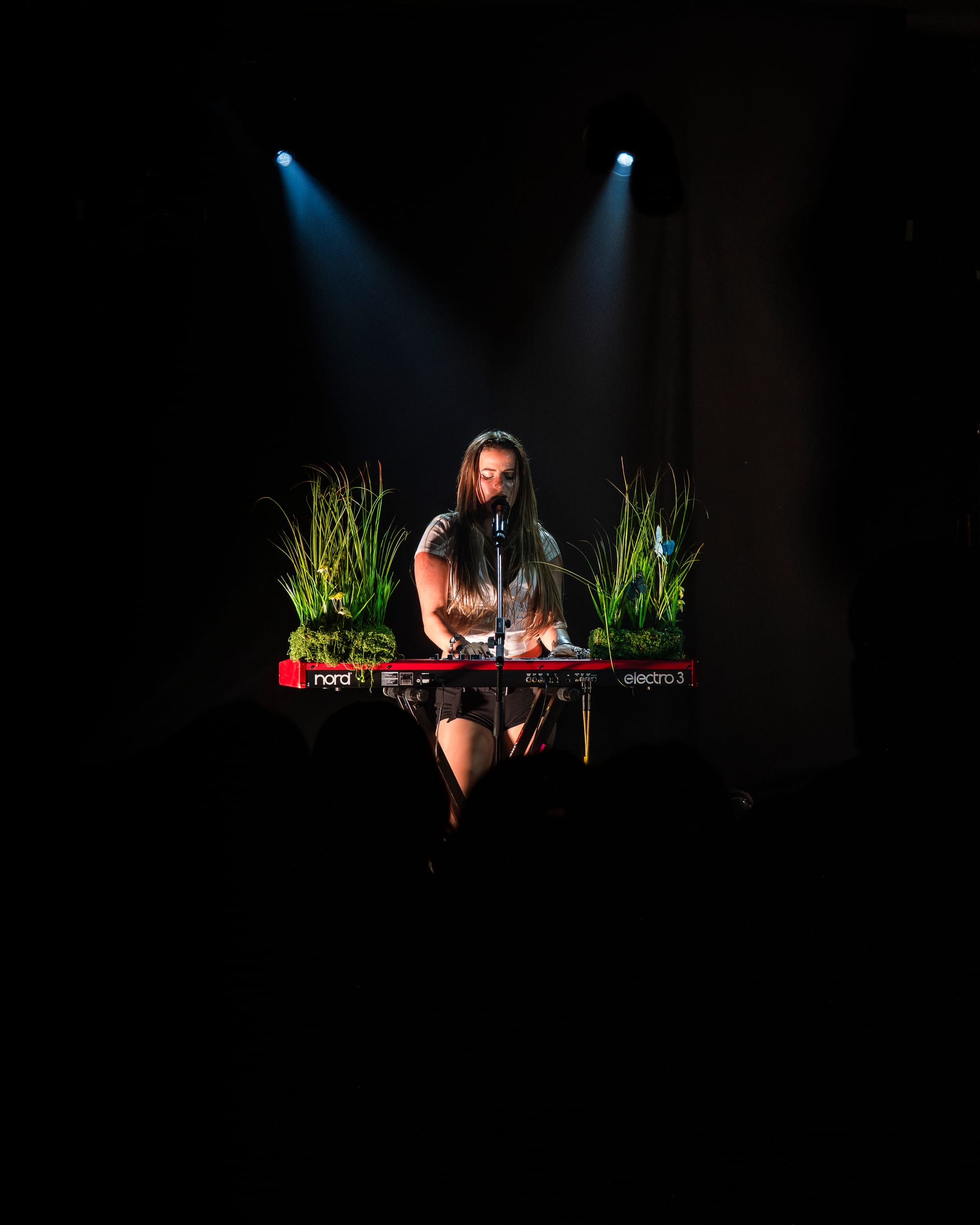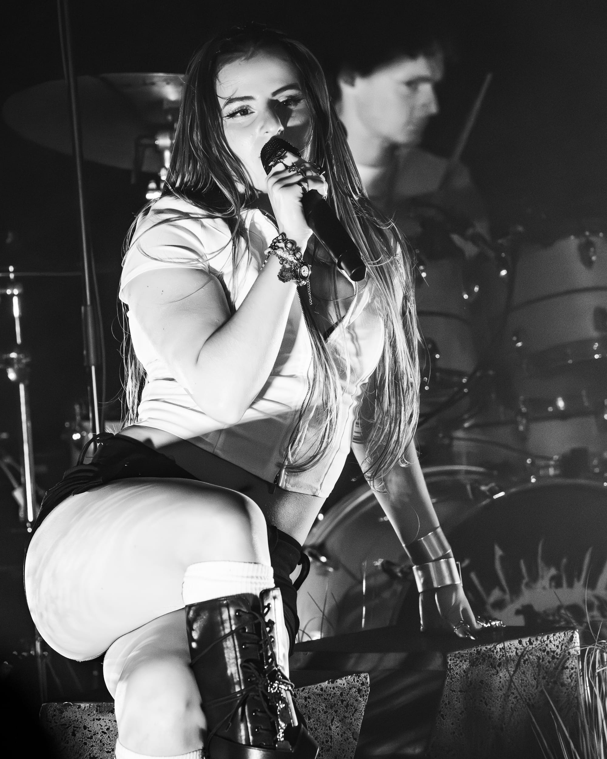 Natalie's intro to her set was one of the most unique I've seen, with the audience being simulated into a train station with a voice-over track playing on the loudspeakers, with Natalie arriving at the stop and then performing her first song, "any1 but myself." The intro to this set was visually and audibly pleasing, with the fan blowing in Natalie's hair, and the extra stage lights added an extra punch to the music. There's always a difference when you hear songs live, and having a drummer in the back helped elevate Natalie's music even more.