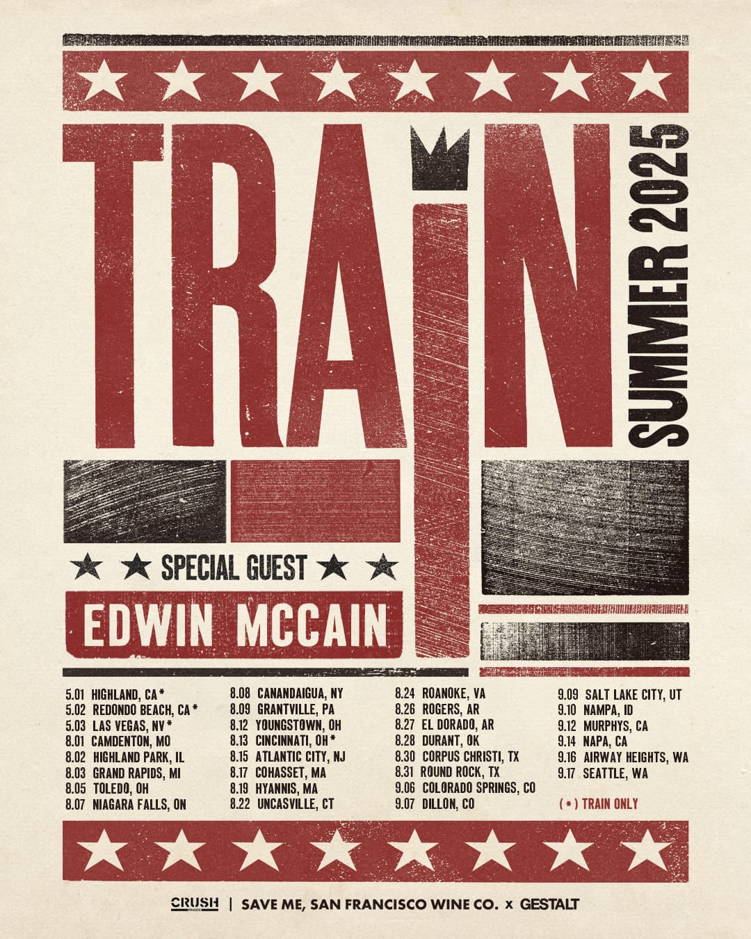 On a beautiful August evening, tens of thousands of fans packed into the CMAC Performing Arts Center in Canandaigua, NY, to see Train perform an unforgettable show! The band's 27-date Summer 2025 Tour kicked off on August 1st and runs till mid-September. The multi-Grammy Award-winning band was formed in 1993 in San Francisco, California, and has amassed a large fan base with 11 studio albums and 14 hits. Joining Train for this tour is singer-songwriter Edwin McCain, who had two monster hits of his own in the late 90s. He has recently returned to touring after taking time off to raise a family. We recently interviewed Edwin, which you can check out here.