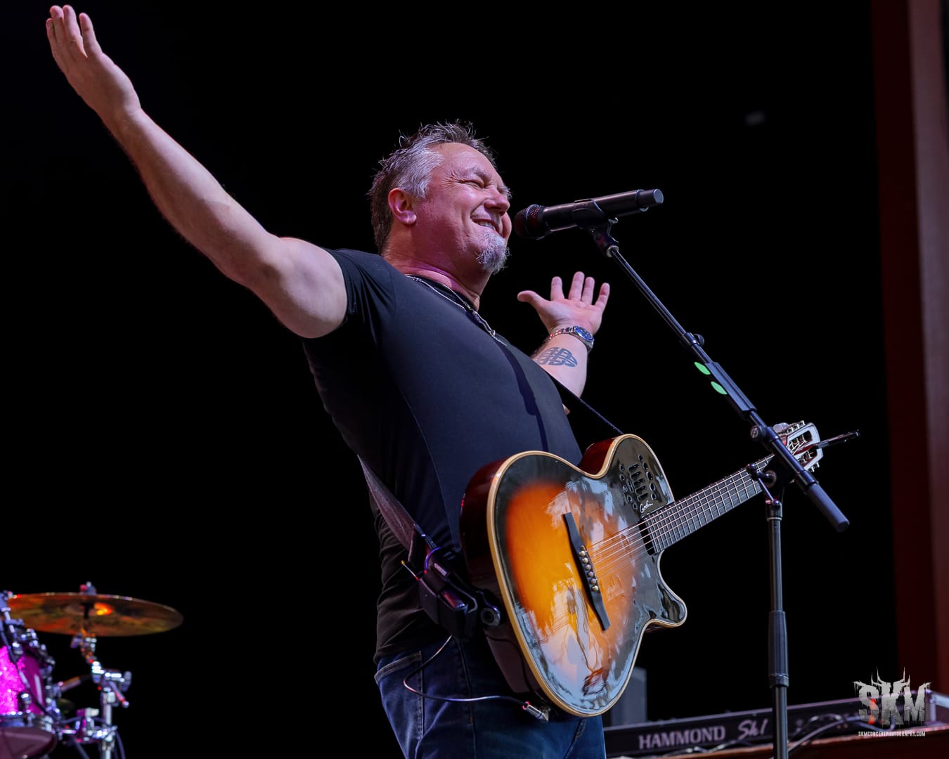 Edwin McCain walked out onto the stage with his band in tow and a smile on his face. Clearly happy to be on stage again, his set was a mix of songs with a bit of humor sprinkled in. He explained, "I'm 55 years old; this is my favorite decade by far, easily my favorite. We were playing this seated theater recently, and it was really quiet when I was walking out, and I heard this woman turn to her husband and go, using a fake woman's voice, "He looks OK. He looks OK," and I was like, "All right, I get credit for just waddling out here. This is awesome!" Fans were laughing at the story. He joked with fans that if you spend more than seven minutes in some home improvement store, you might hear one of his songs playing. He mentioned that when he reaches a particular emotional part in a song that chokes him up, all he has to do is think about how disgusting his 16-year-old daughter's room is right now, and he is good to go. The fans chuckled at his many stories. The band performed an excellent set that lasted forty-five minutes, during which Edwin McCain shared some more stories about what inspired him to write his songs. The performance included a blend of old and new material, including popular hits like "I'll Be" and "I Could Not Ask for More." Fans were on their feet at the end of the set, pumped up for the headliner!