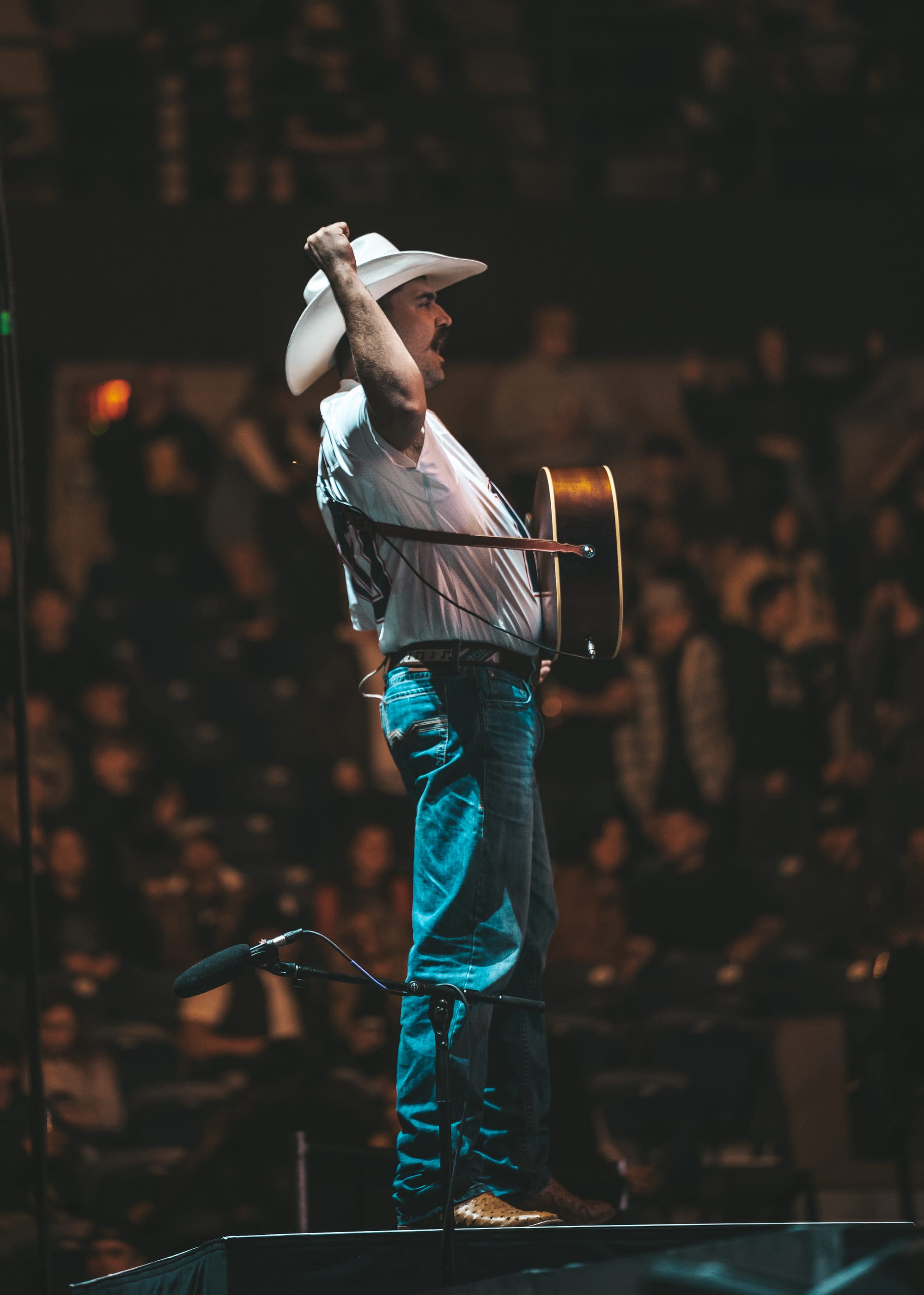 Wade Forster was second up for the night. Forster calls himself "The Australian Cowboy" and hails from, you guessed it, Australia. As a more traditional country type of musician, if people came for some hootin' and hollerin' country, you got it with Forster. Forster has a very unique voice. It brings you back to the older generation of the genre. He is a great singer and guitarist. His energy was more than the Huser Brothers, which I did not expect. It was a pleasure to watch and totally different than what we were about to experience with Treaty Oak Revival. Wade Forster had the crowd hyped for Treaty Oak Revival. Wearing a Drake Maye shirt added to the love he got from the sold-out arena.