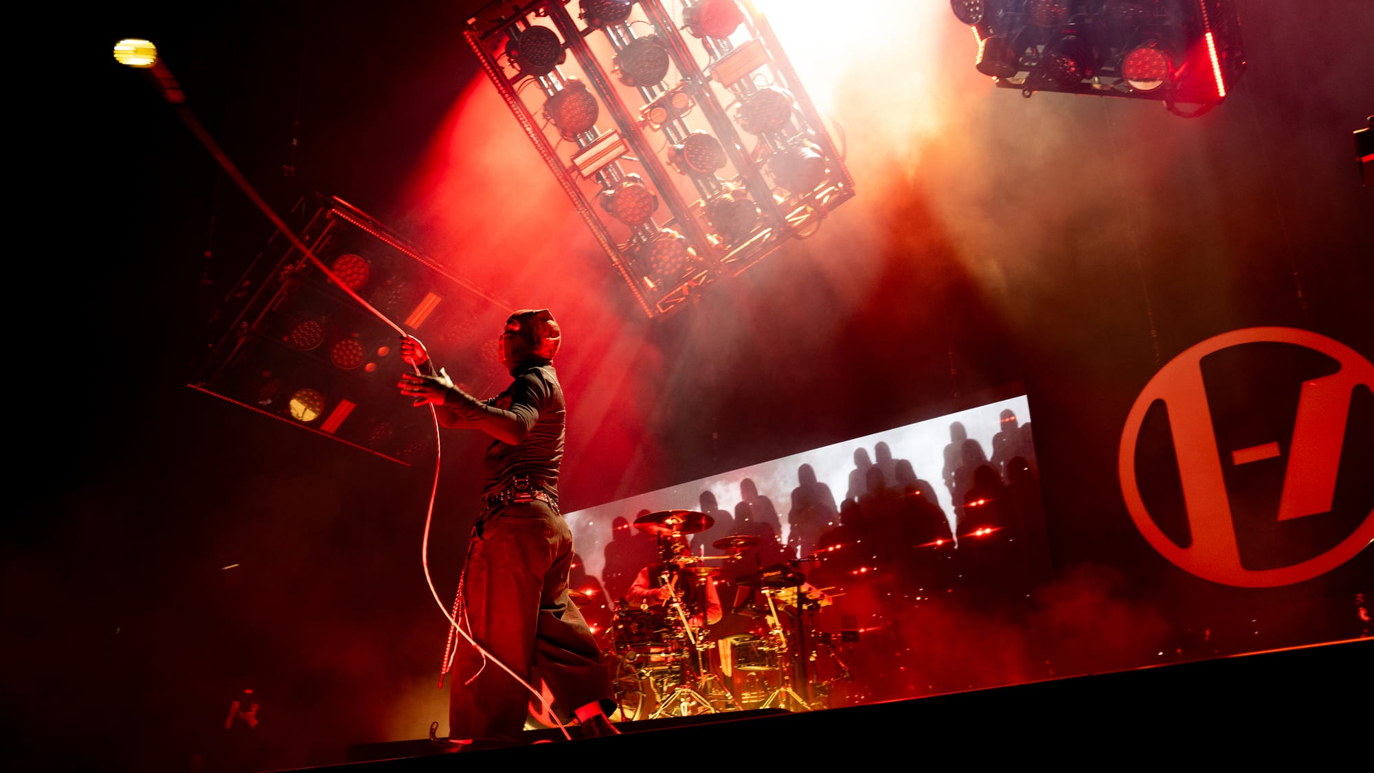 For songs like "Message Man," "Polarize," and "Chlorine," the duo took over Stage B, where a beat-up old car was set on fire, adding a gritty and cinematic backdrop to the performance.
