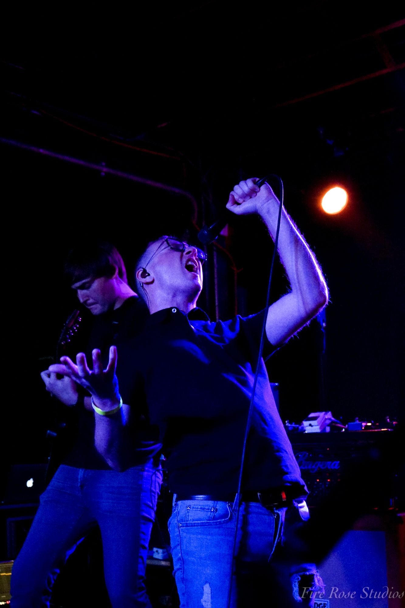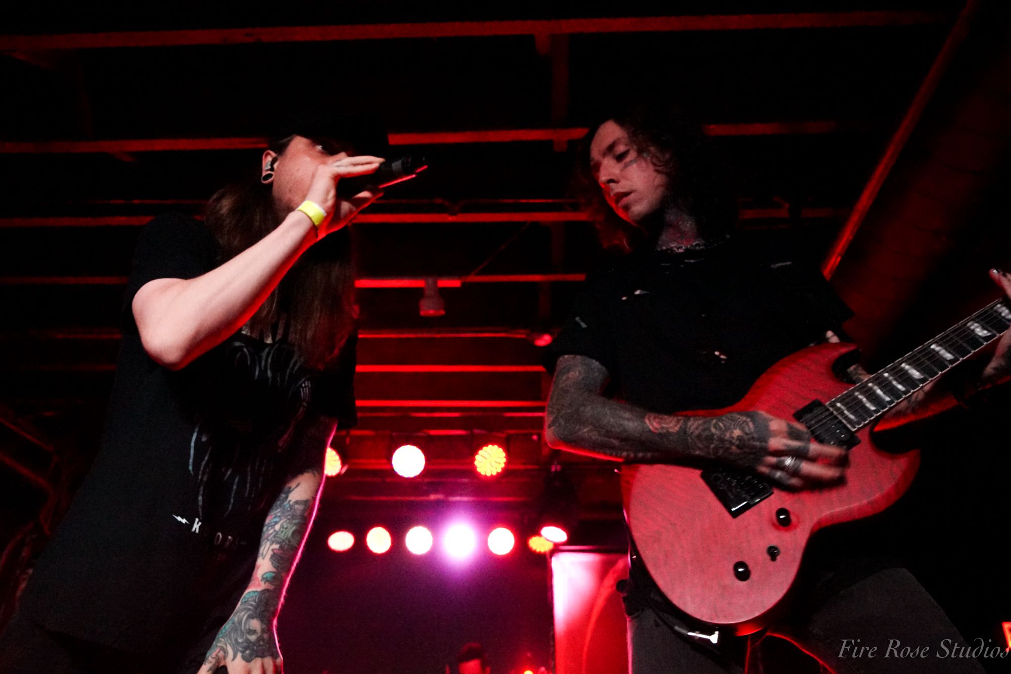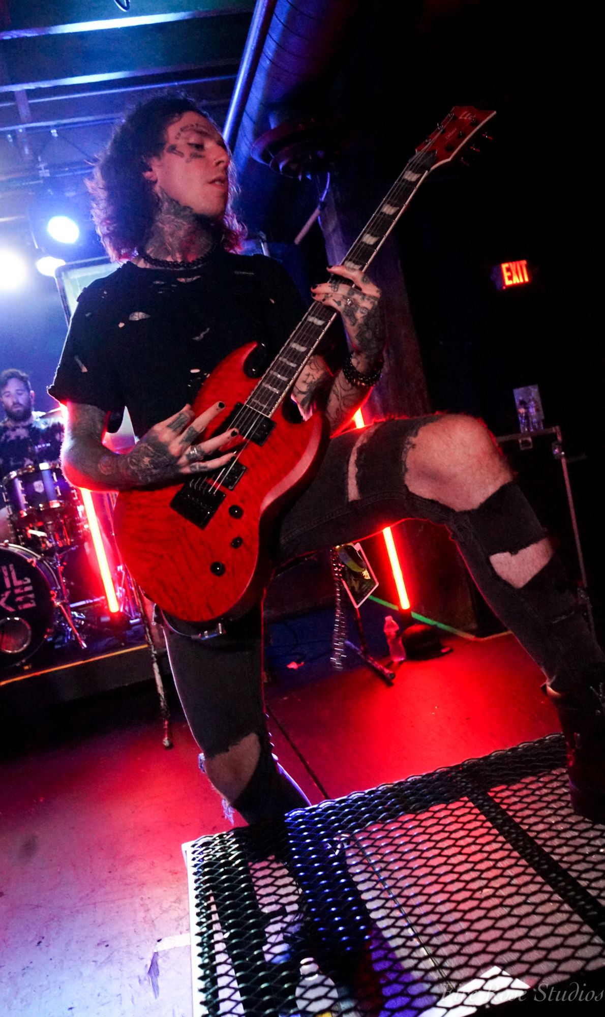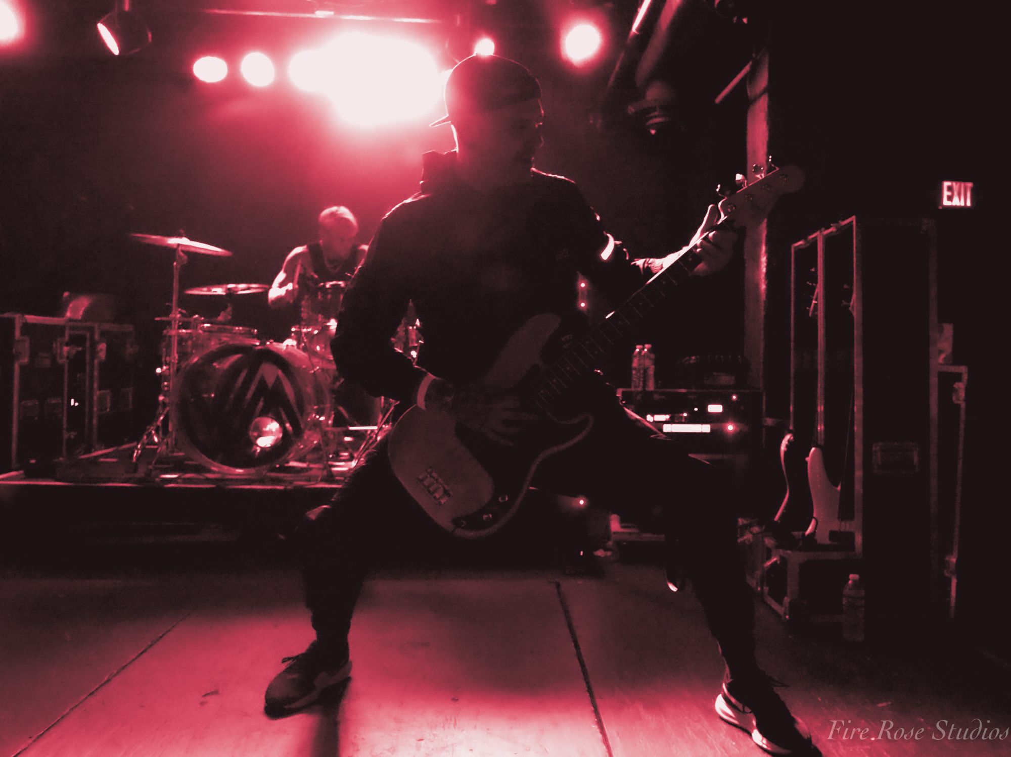The night continued to be fueled by the powerful Janesville, WI, metalcore band Versus Me. Opening with their iconic song “Control,” the four-piece presented themselves in black outfits and red-lighted armbands around their biceps. Slipping right into their next song, powerful vocalist James Milbrandt revealed a new single coming out the following day. The crowd cheered as the band unloaded their floor-stomping heavy single entitled “Blackout.” Guitarist Dustin Hansen and bassist Lee Milbrandt danced around in almost choreographed unison while drummer JJ Johnson beamed with delight to the new song. James Milbrandt encouraged the crowd to keep jumping while he intimidatingly leaned over the railing, living up to the edgy appearances they portrayed.