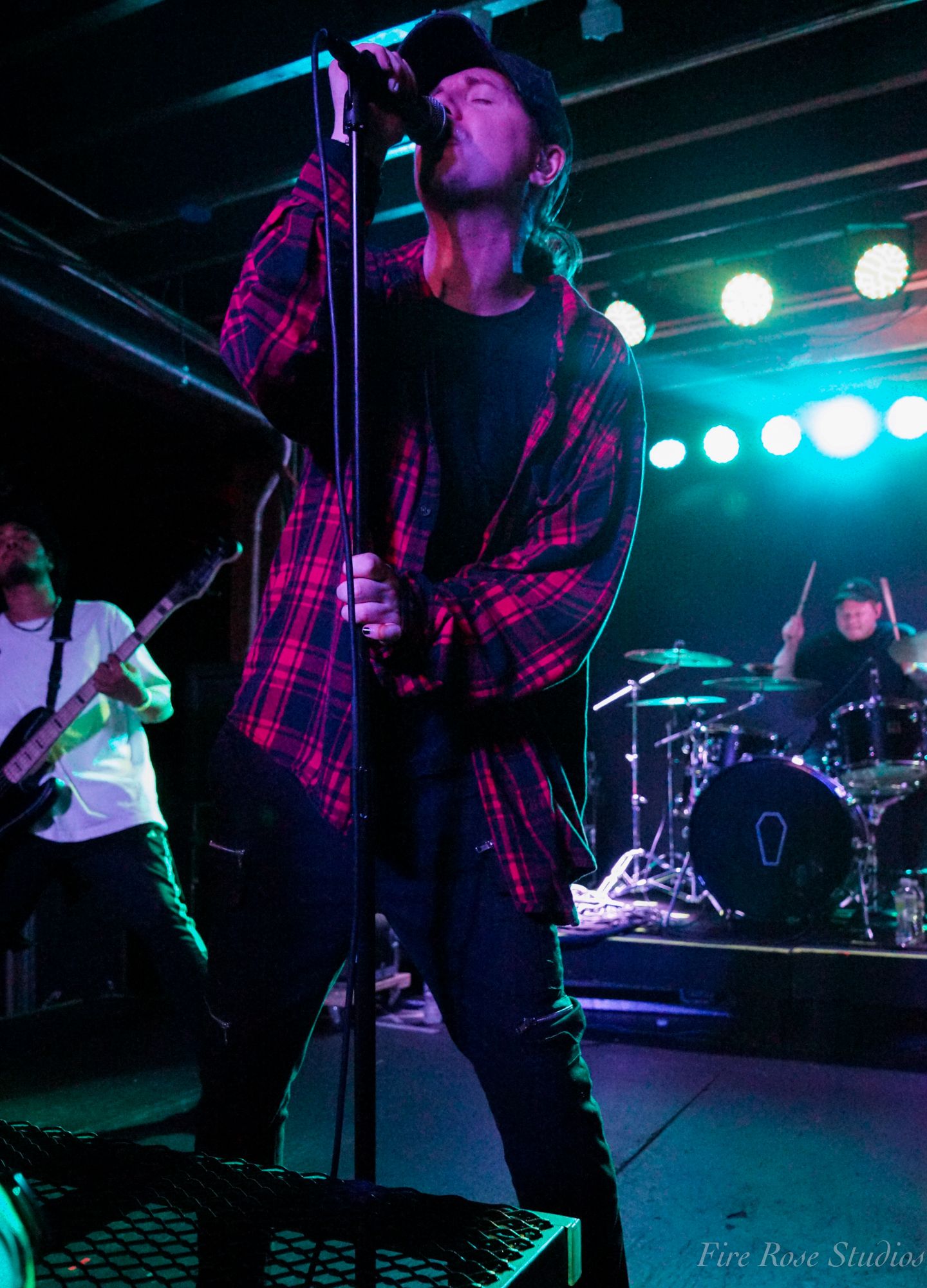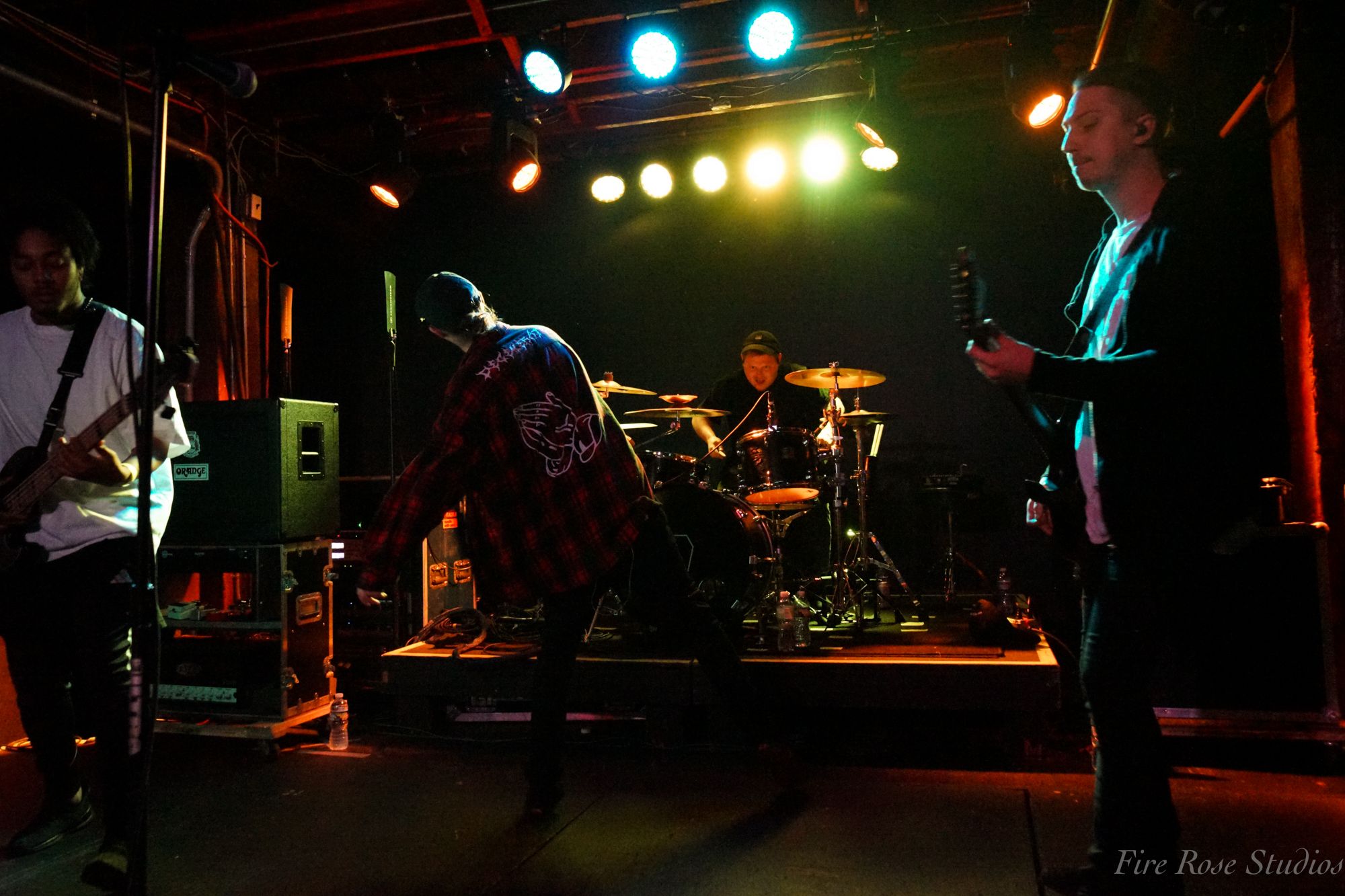 Virginia Beach-based post-hardcore band Solarset started the night with an exciting announcement from lead singer Russ Bradshaw. It was revealed that the band had qualified for one of the categories to play at the Louder Than Life Festival. After encouraging the crowd to vote for them on the Louder Than Life Twitch stream, they began their show with a motivational intro featuring positive words of admiration for the band’s talent. Once the band took the stage, they proved how factual those inspiring statements were. Between Russ Bradshaw’s radiant voice, Austin Powers ripping on guitar, Ryan Bieber smashing on the drums, and Dylan Harrison shredding on bass while also sharing his magnificent voice, it was apparent how much talent, professionalism, and dedication this band has. Despite starting with a smaller crowd, Solarset did not let that affect their performance. From the jumping, spinning, and encouraging the crowd to continue to persevere, Solarset put on a remarkable show.