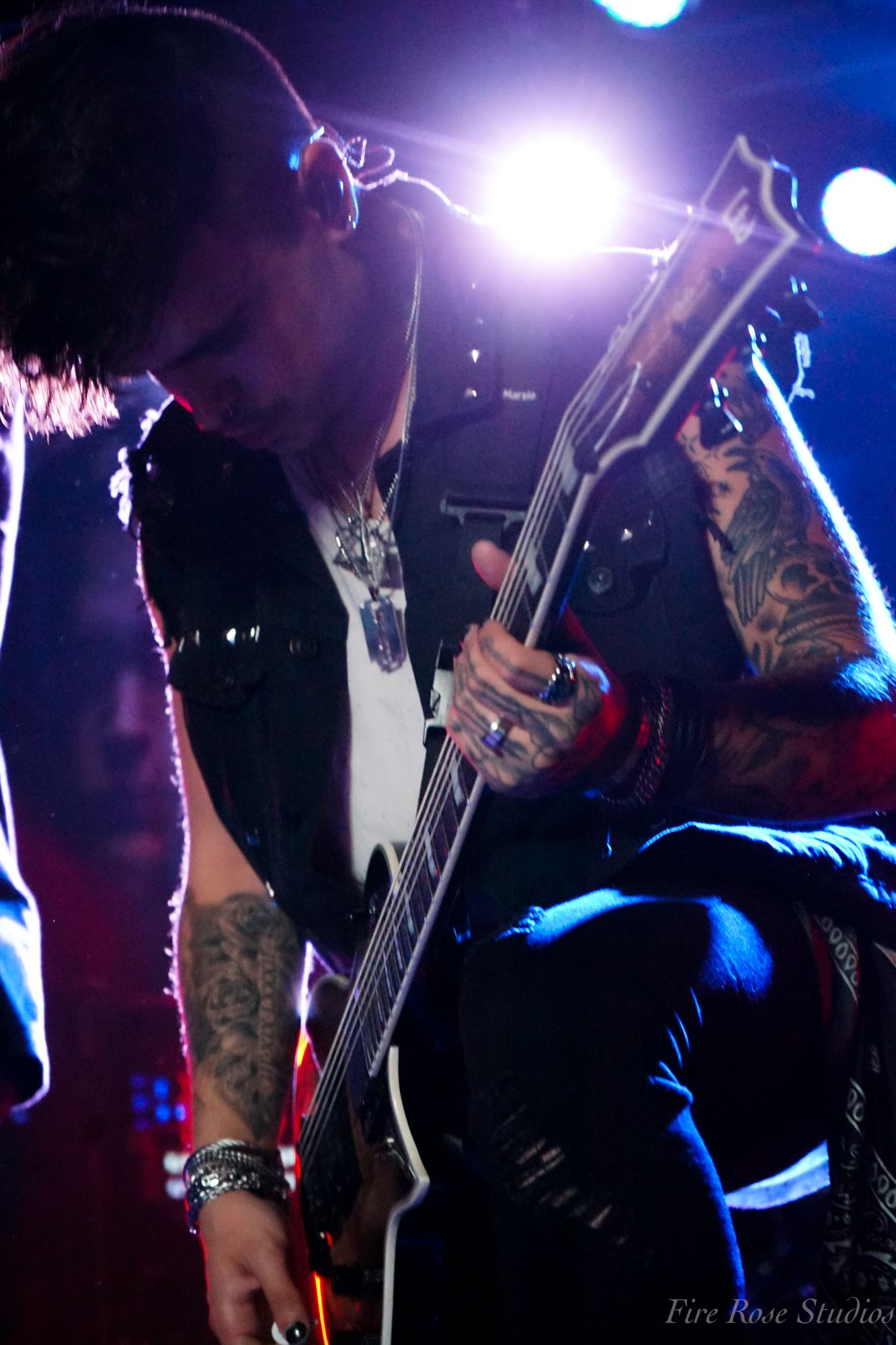 Vilified followed through by taking control of the stage with their heavy-hitting, head-banging songs. Based out of Fredericksburg, VA, Vilified not only brought the overzealous energy every metal/rock fan is addicted to. Even though they encountered unfortunate tech problems, the band showed professionalism by taking the issues in stride, entertaining the crowd while attempting to resolve them, then moving on to the next song as if nothing ever happened. Bassist John Francis was truly unfazed, as he produced highly intense energy during the set. John moved across the stage by jumping and spinning around his fellow bandmates while challenging the crowd to meet his energy. Vocalist Scott Maxwell projected his intense vocals worthy of pulling a muscle from headbanging. Maxwell informed the audience that the night was special since it was guitarist Michael Woods’ first show back with them in five years. It was obvious that Woods was thrilled to be there as he smiled away while never missing a beat and, interacting with drummer Elijah Ferguson then shredding with fellow guitarist Kyle Richards.