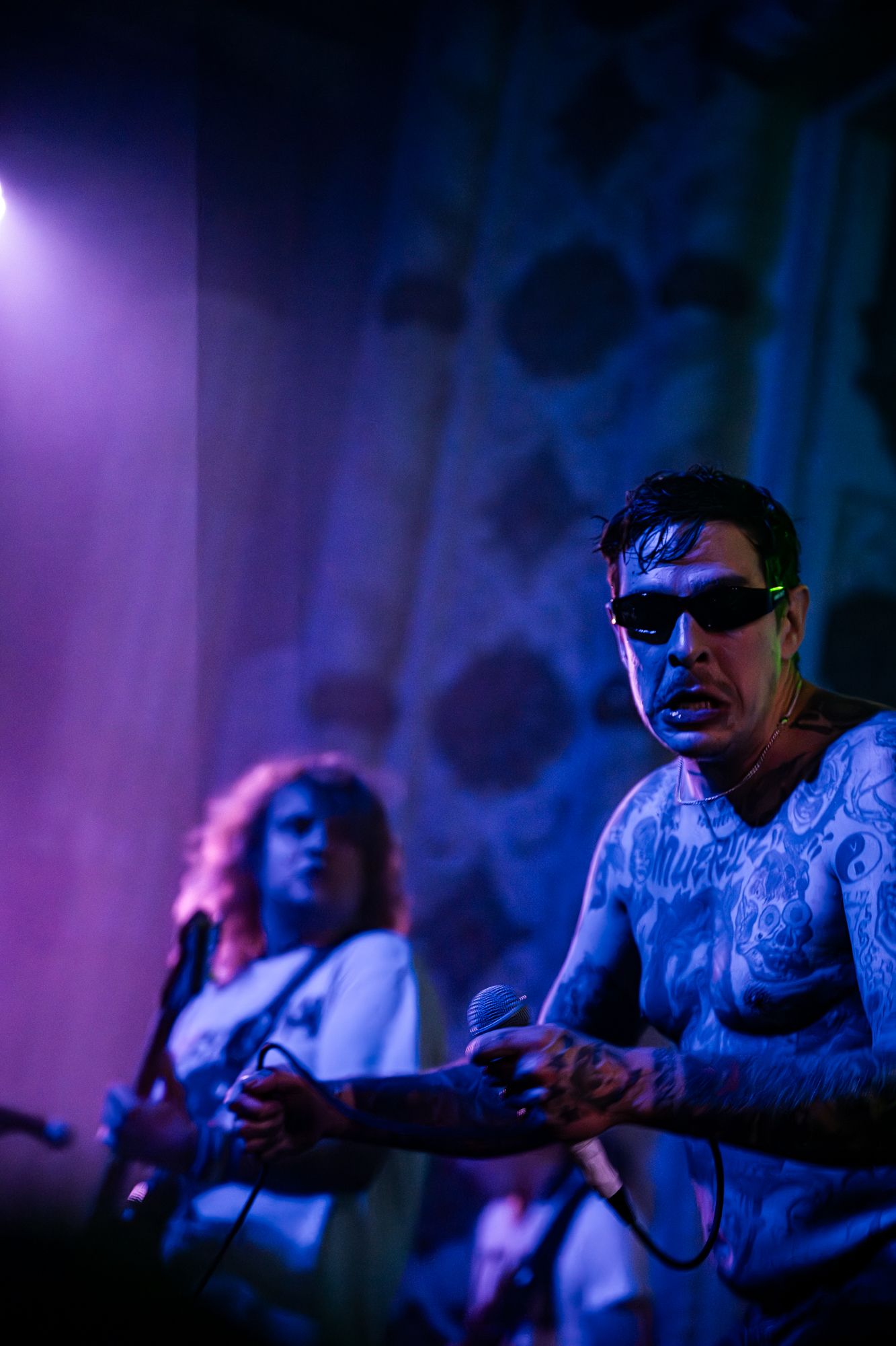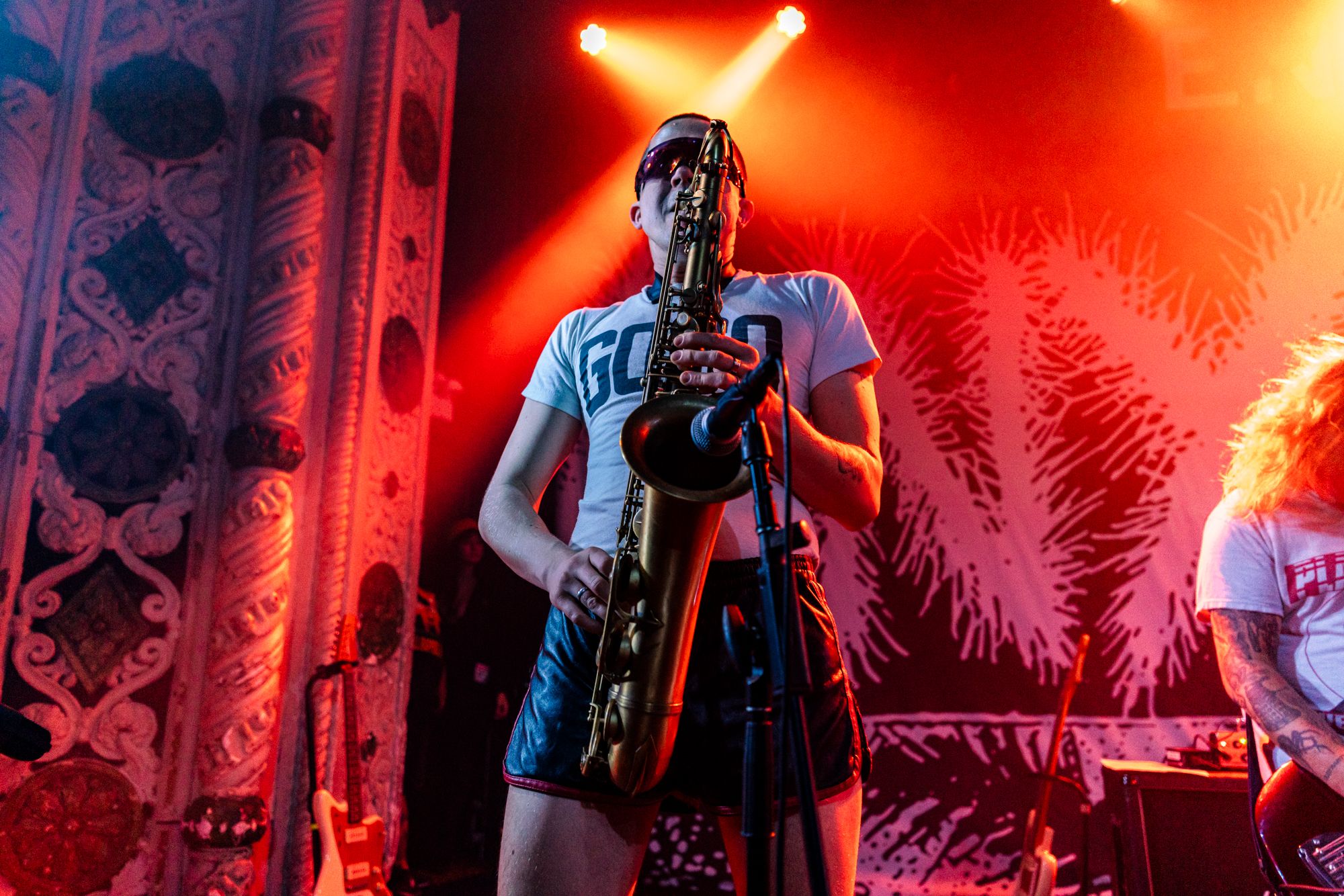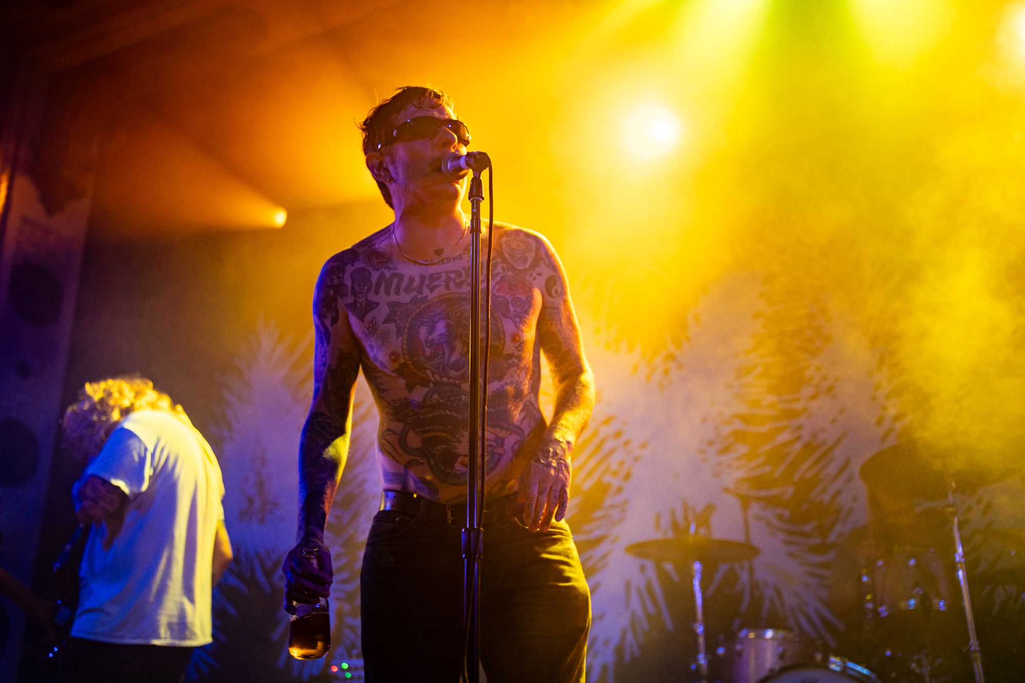 None of the band's swagger and attitude would work for a second if they weren't exceptional musicians. With the group's wild look and subject matter of their songs, it's easy to overlook the fact that they can only pull it off because they absolutely shred as a live band. Taking the exact same energy they'd use the next afternoon to play to a few thousand Riot Fest attendees on an outdoor headlining stage and bringing it to a sellout crowd of 1,100, the band and audience seemed to feed off of each other for the entire blistering 13 song set that mostly focused on the group's debut album Street Worms and their most recent release, 2022's Cave World. Their encore performance of 'Sports' and 'Research Chemicals' back to back was perhaps the most distilled example of the band in action: a dark look at the most American things in the world that doubles as a celebration of that same superficial culture, followed up by musings on chasing the next great high, no matter how disappointing it turns out. There aren't many bands out there that can proudly proclaim onstage to over a thousand screaming fans to be cooking up "psychedelic amphetamine yeah put it in your butt" and be met with thunderous applause.