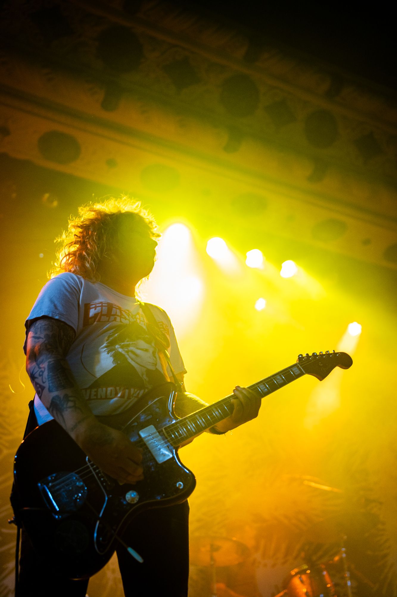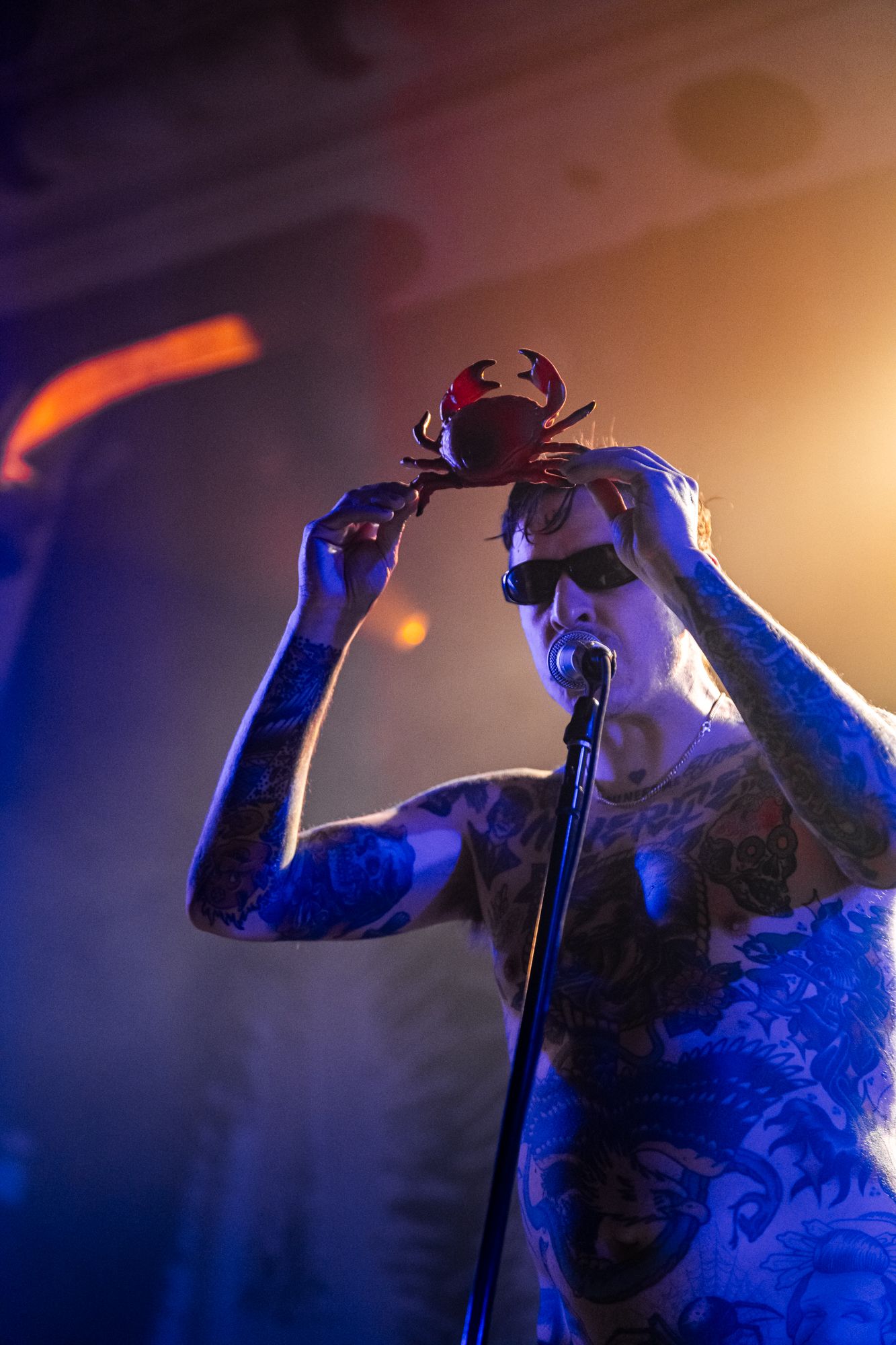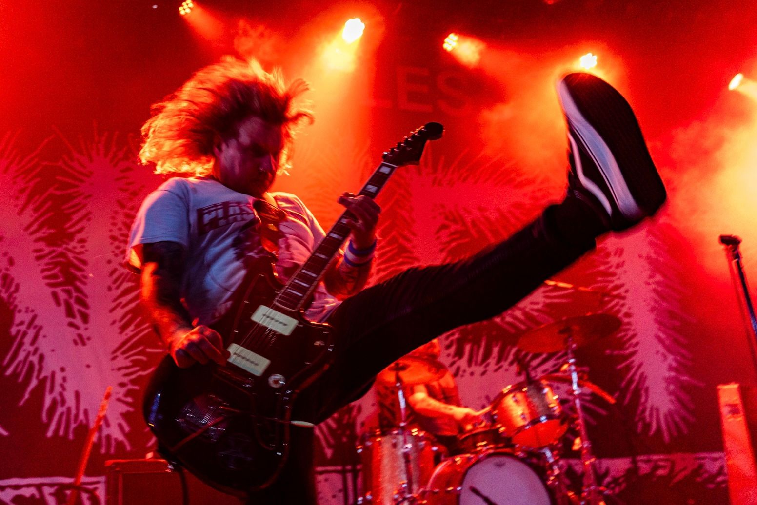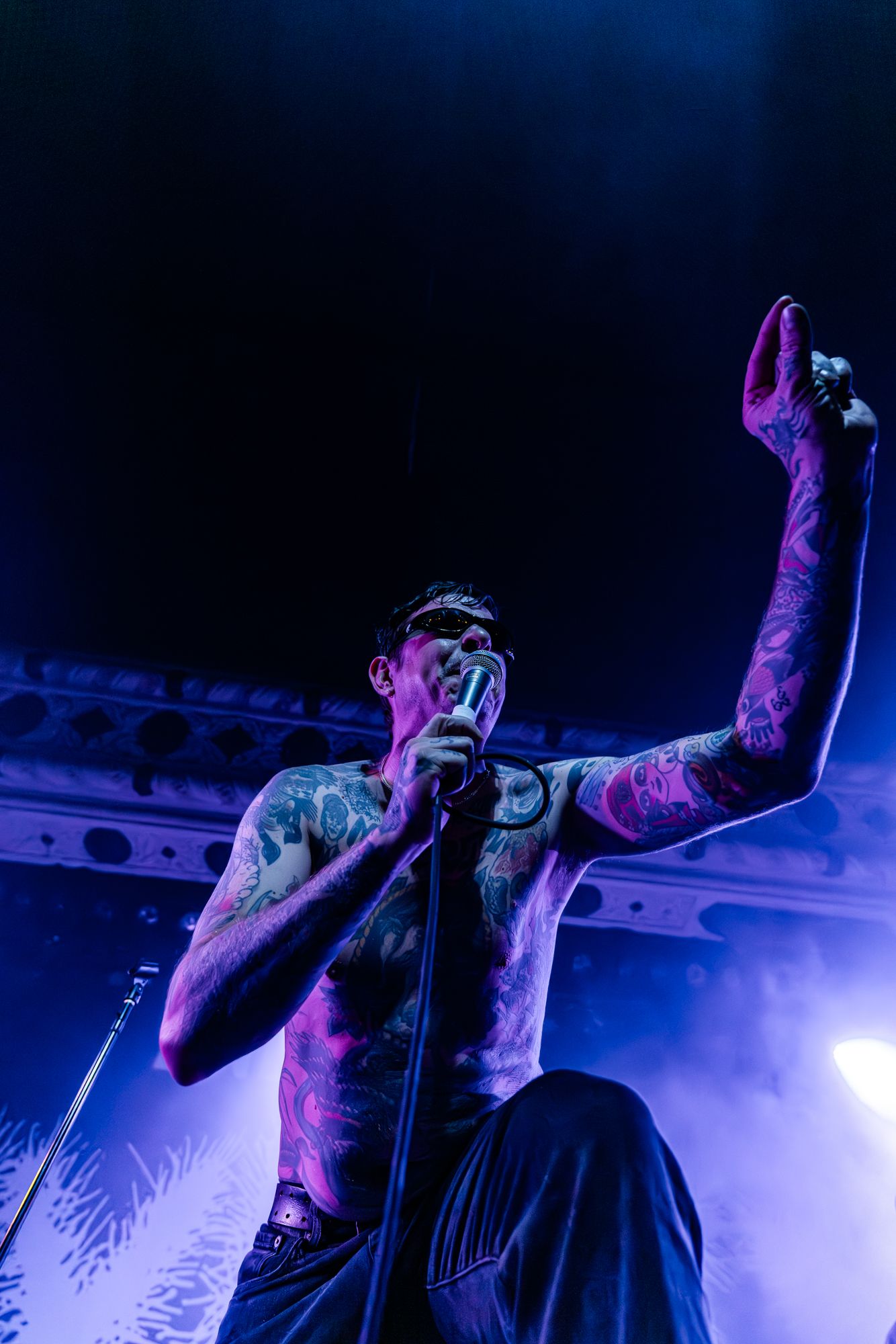 None of the band's swagger and attitude would work for a second if they weren't exceptional musicians. With the group's wild look and subject matter of their songs, it's easy to overlook the fact that they can only pull it off because they absolutely shred as a live band. Taking the exact same energy they'd use the next afternoon to play to a few thousand Riot Fest attendees on an outdoor headlining stage and bringing it to a sellout crowd of 1,100, the band and audience seemed to feed off of each other for the entire blistering 13 song set that mostly focused on the group's debut album Street Worms and their most recent release, 2022's Cave World. Their encore performance of 'Sports' and 'Research Chemicals' back to back was perhaps the most distilled example of the band in action: a dark look at the most American things in the world that doubles as a celebration of that same superficial culture, followed up by musings on chasing the next great high, no matter how disappointing it turns out. There aren't many bands out there that can proudly proclaim onstage to over a thousand screaming fans to be cooking up "psychedelic amphetamine yeah put it in your butt" and be met with thunderous applause.