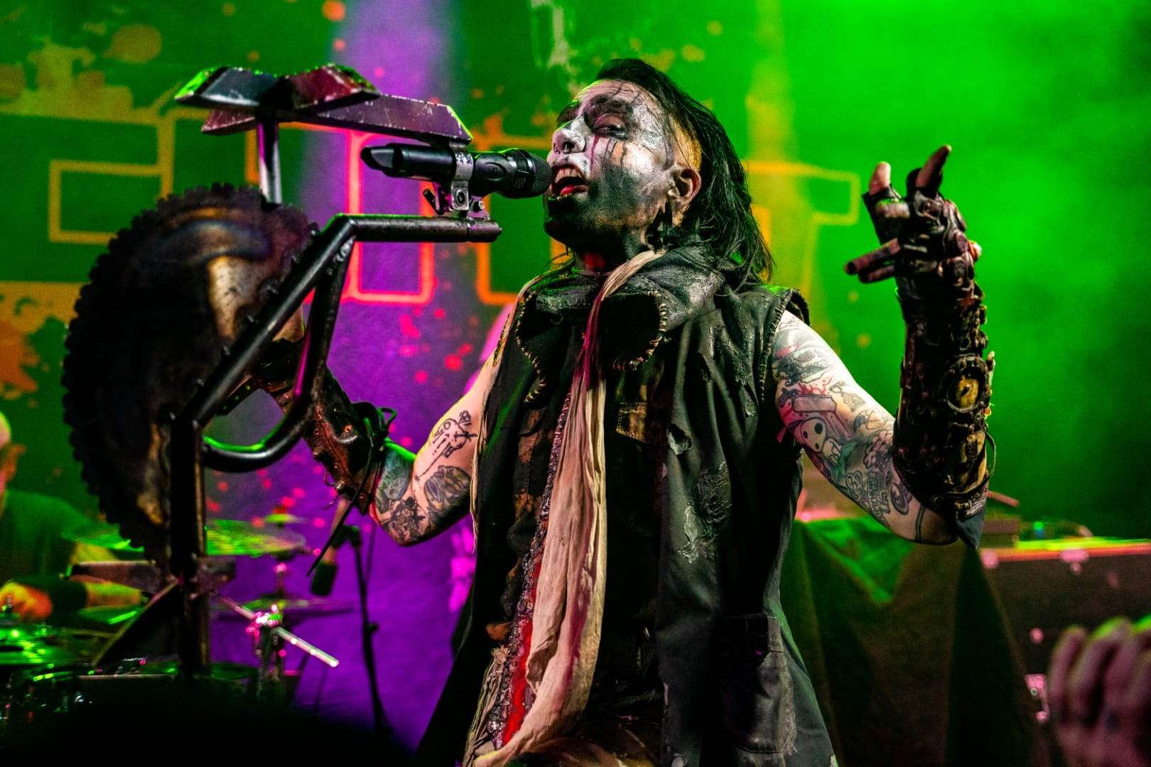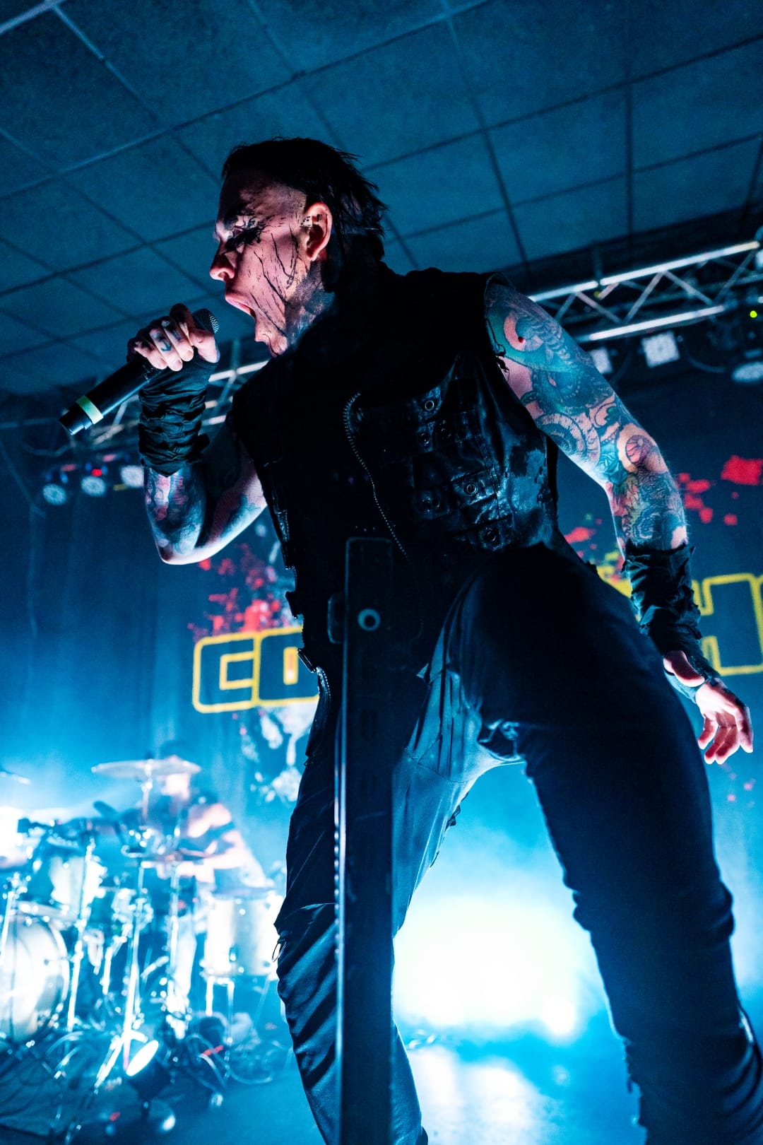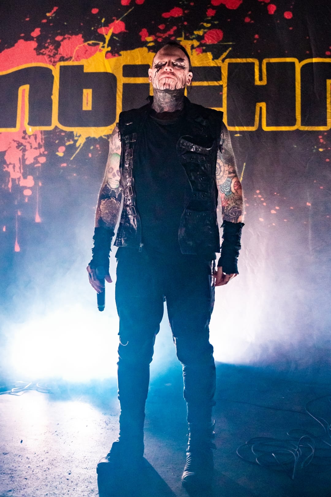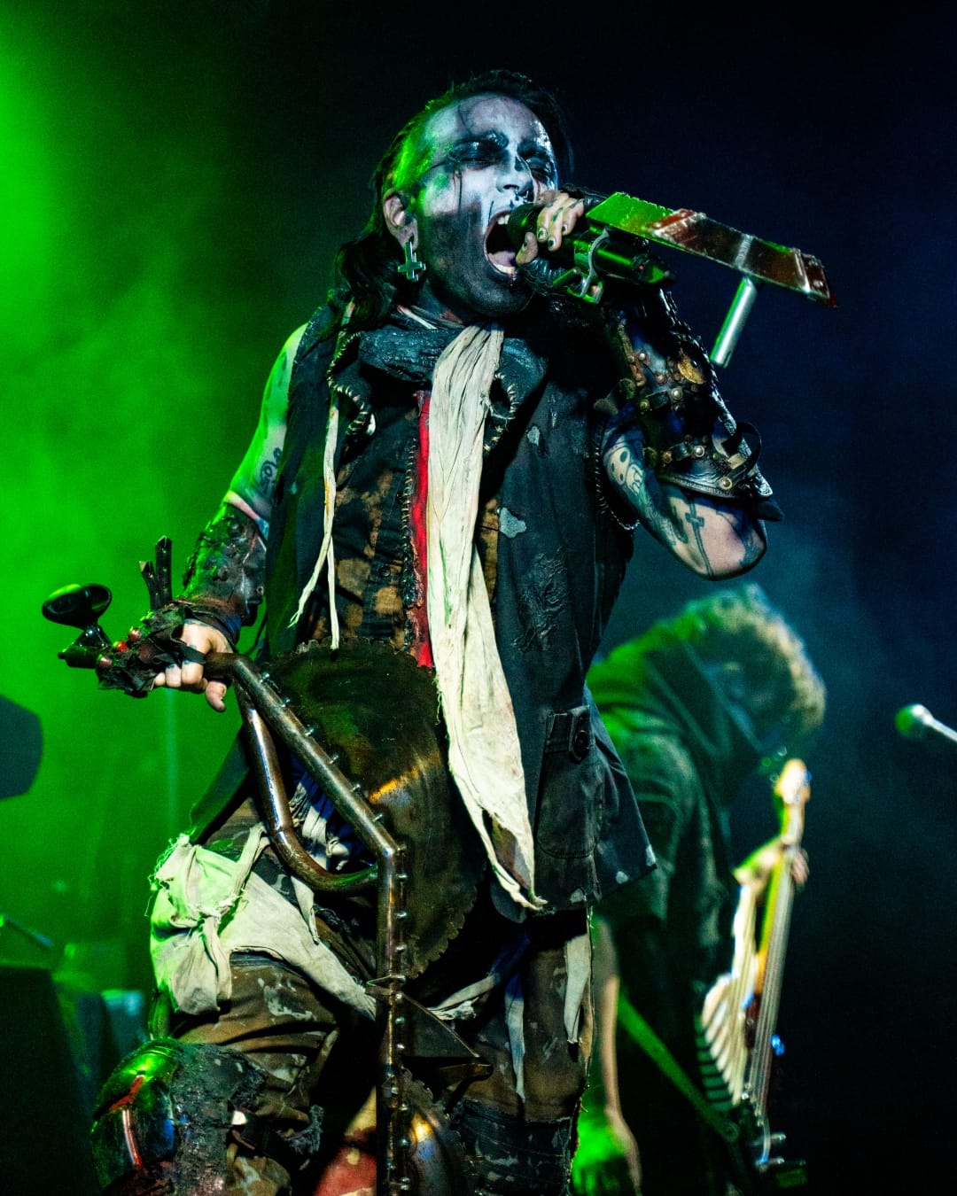 After four hours and five opening bands, it was finally time for Combichrist to hit the stage but the crowd wasn’t tired at all. As soon as they kicked off the set with the newly-released “Planet Doom,” the crowd was jumping and shaking the barricade like mad. Their first release in two years, the Planet Doom EP included a collection of previous releases and singles since their last full album One Fire in 2019. The set included every track off of this new EP, and focused heavily on the last few albums, with a lot more of the industrial metal sound present than their initial “aggrotech” and EBM tracks.