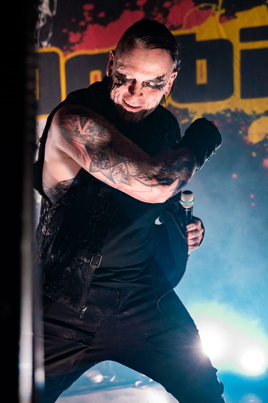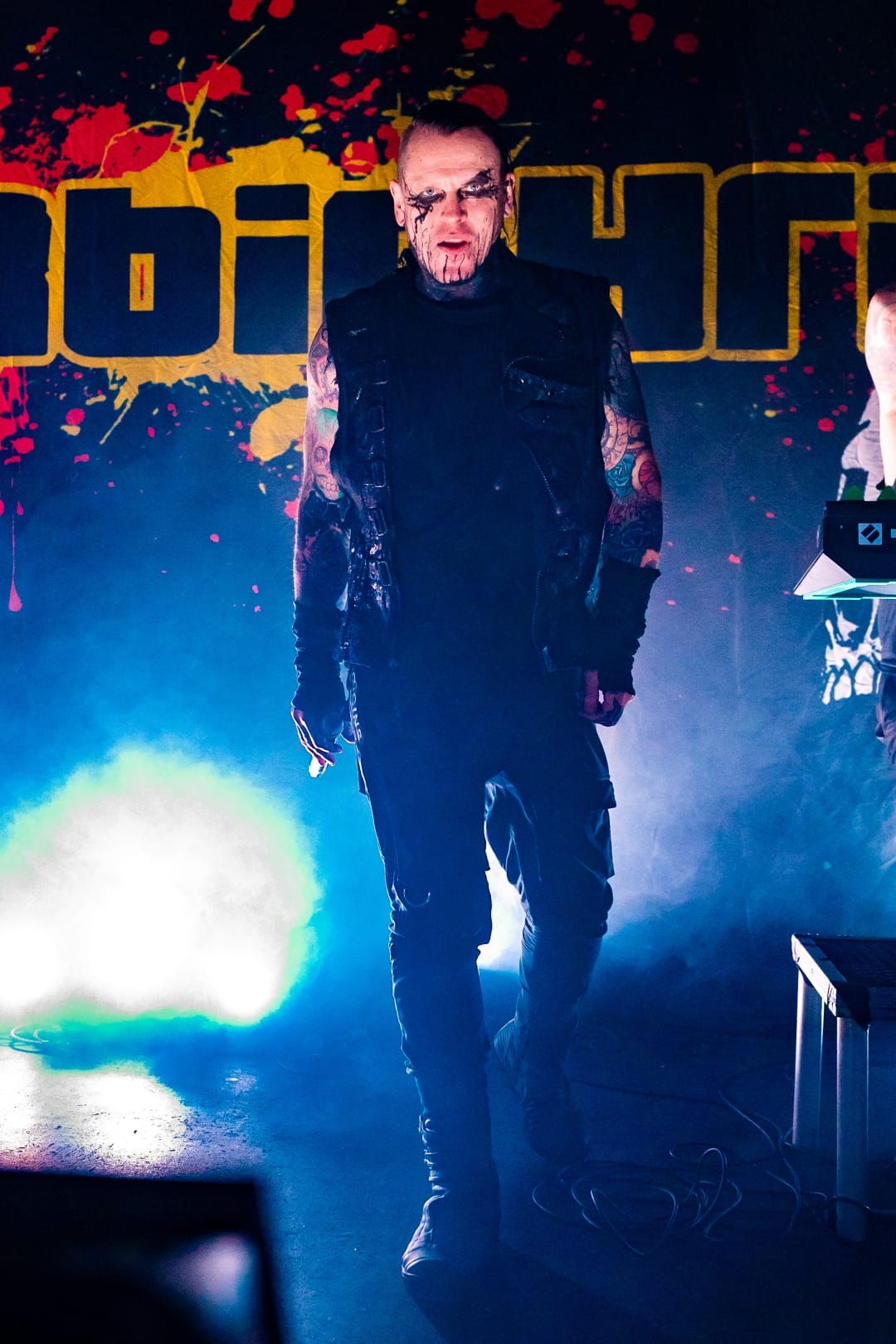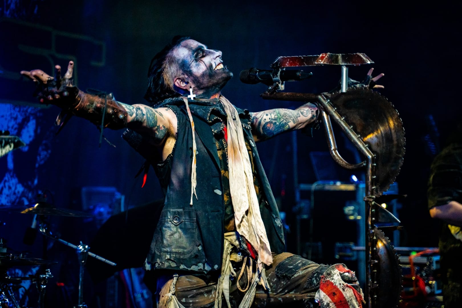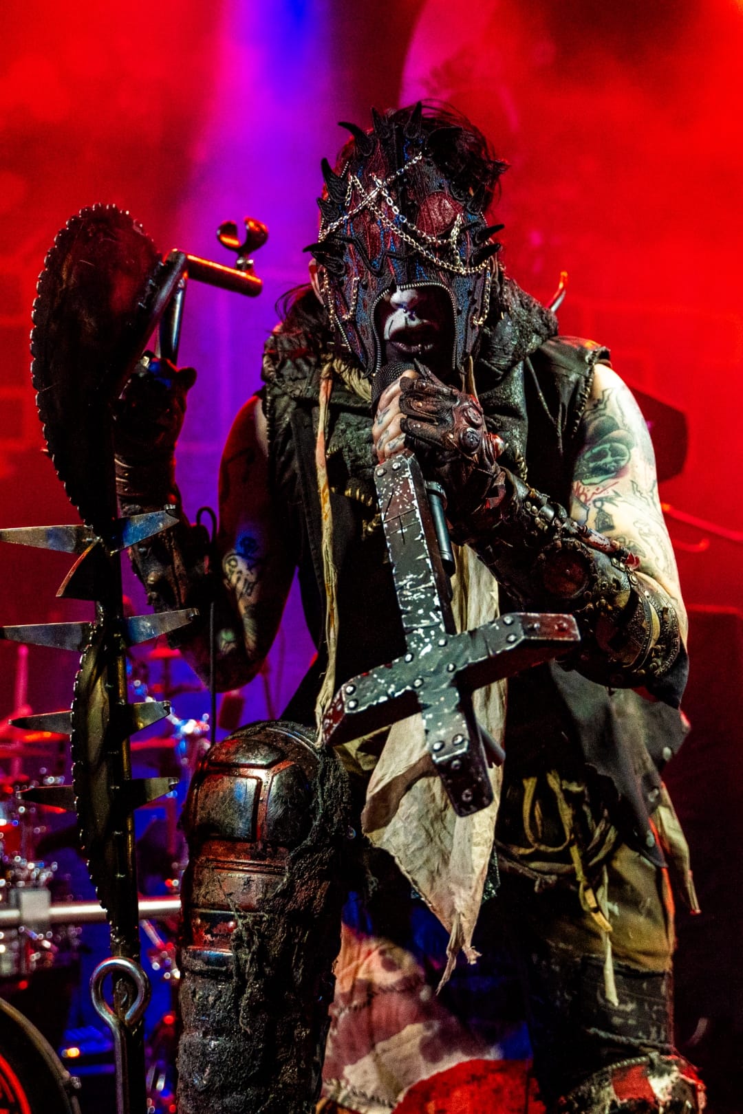 After four hours and five opening bands, it was finally time for Combichrist to hit the stage but the crowd wasn’t tired at all. As soon as they kicked off the set with the newly-released “Planet Doom,” the crowd was jumping and shaking the barricade like mad. Their first release in two years, the Planet Doom EP included a collection of previous releases and singles since their last full album One Fire in 2019. The set included every track off of this new EP, and focused heavily on the last few albums, with a lot more of the industrial metal sound present than their initial “aggrotech” and EBM tracks.
