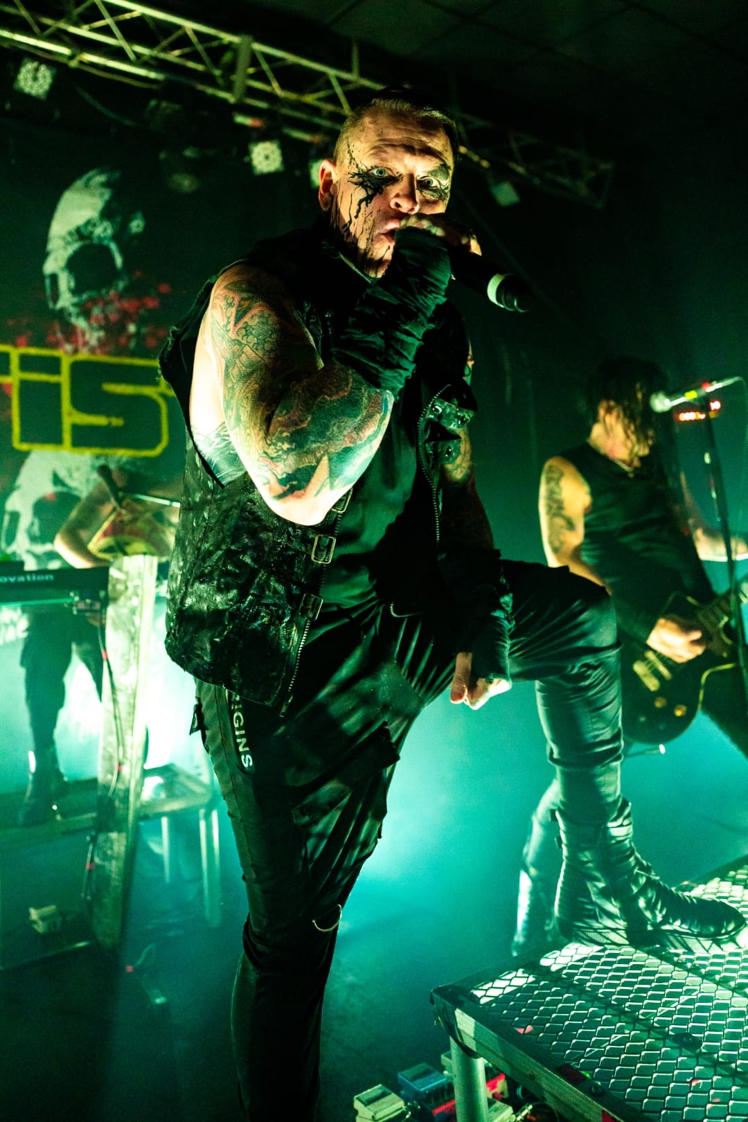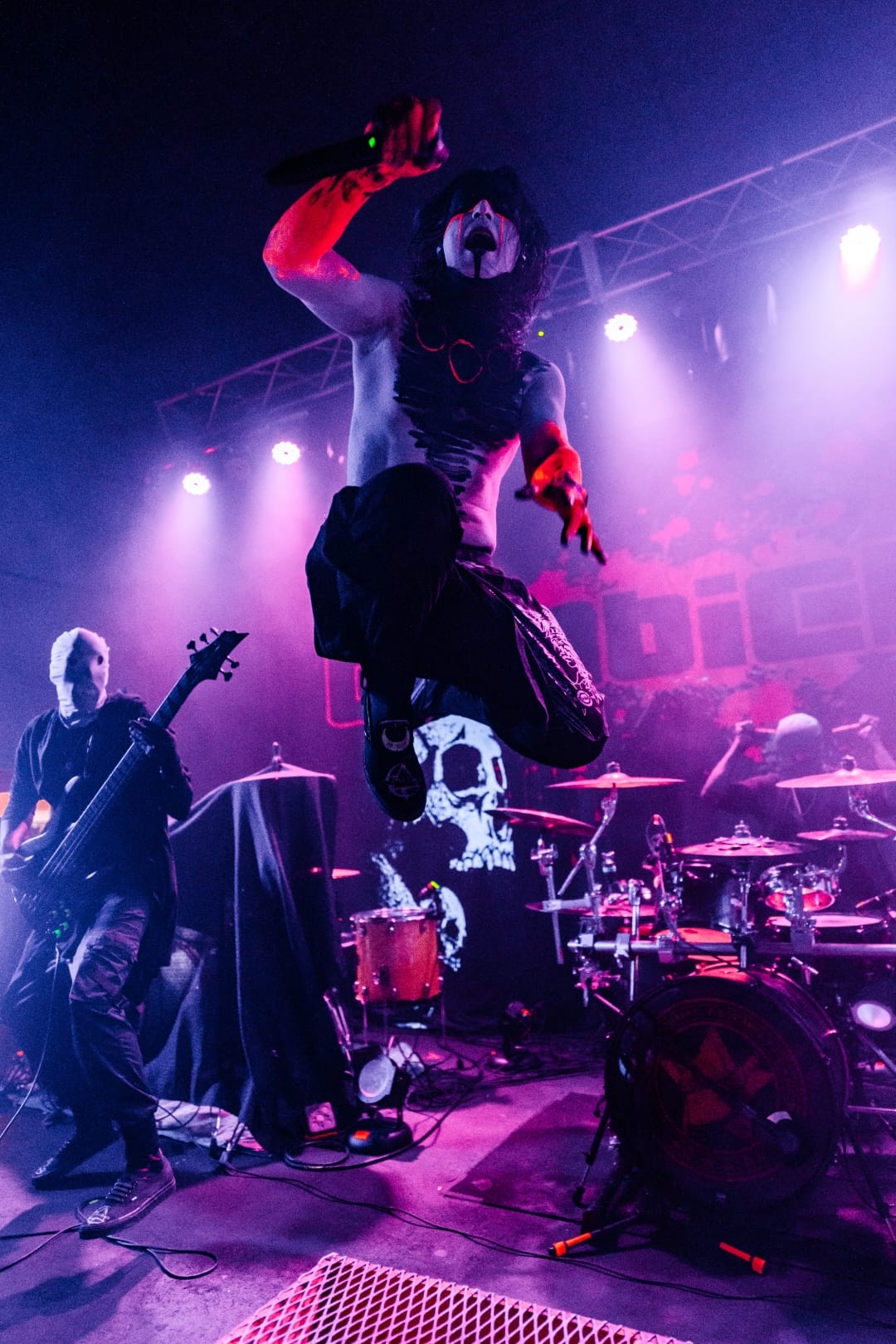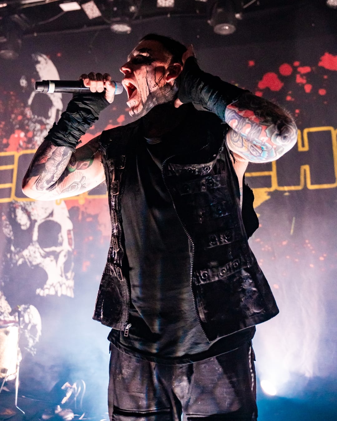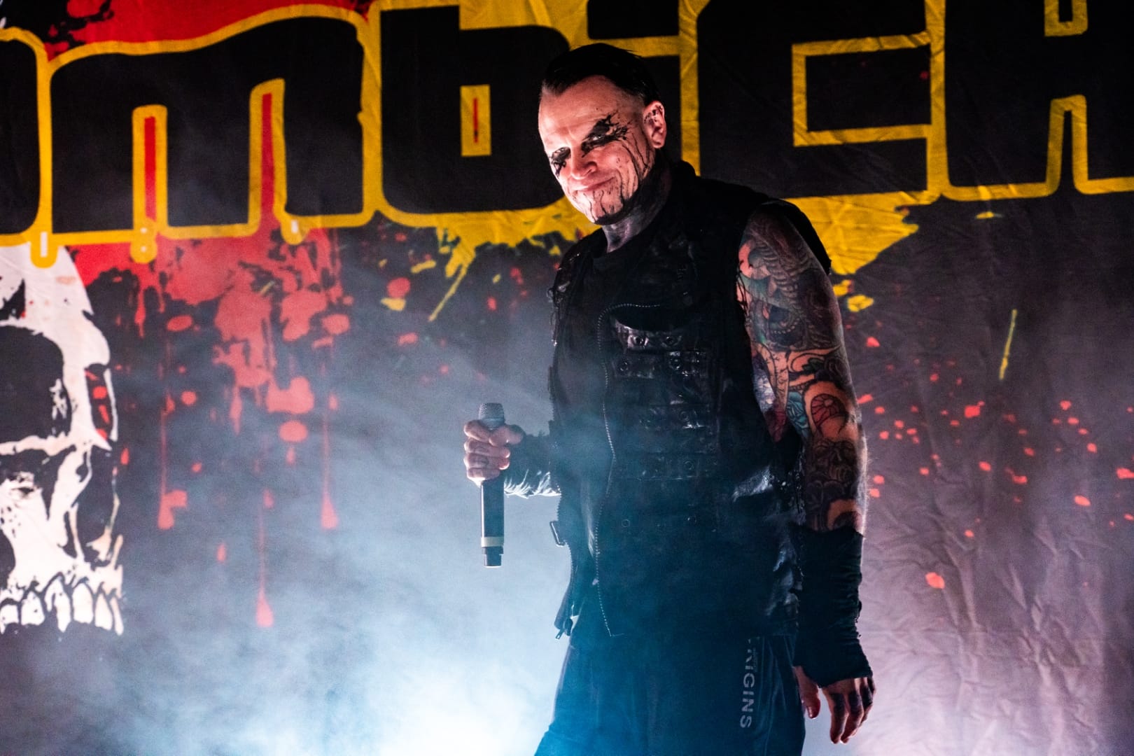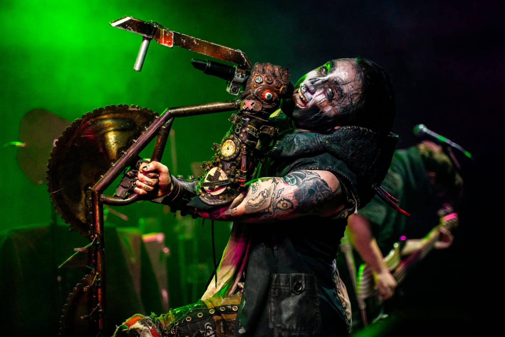 After four hours and five opening bands, it was finally time for Combichrist to hit the stage but the crowd wasn’t tired at all. As soon as they kicked off the set with the newly-released “Planet Doom,” the crowd was jumping and shaking the barricade like mad. Their first release in two years, the Planet Doom EP included a collection of previous releases and singles since their last full album One Fire in 2019. The set included every track off of this new EP, and focused heavily on the last few albums, with a lot more of the industrial metal sound present than their initial “aggrotech” and EBM tracks.