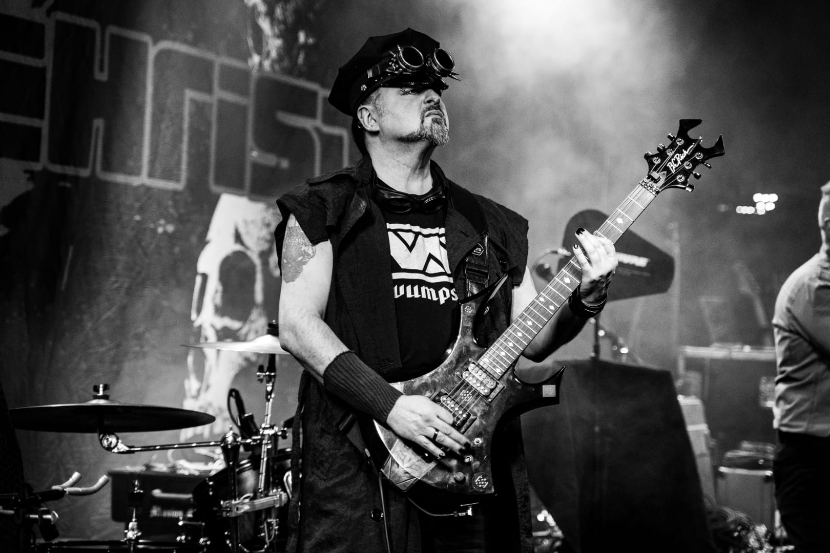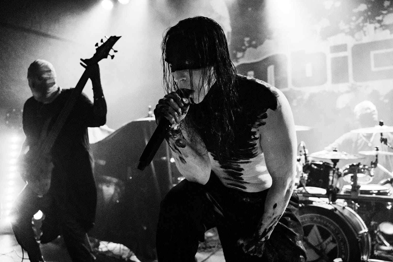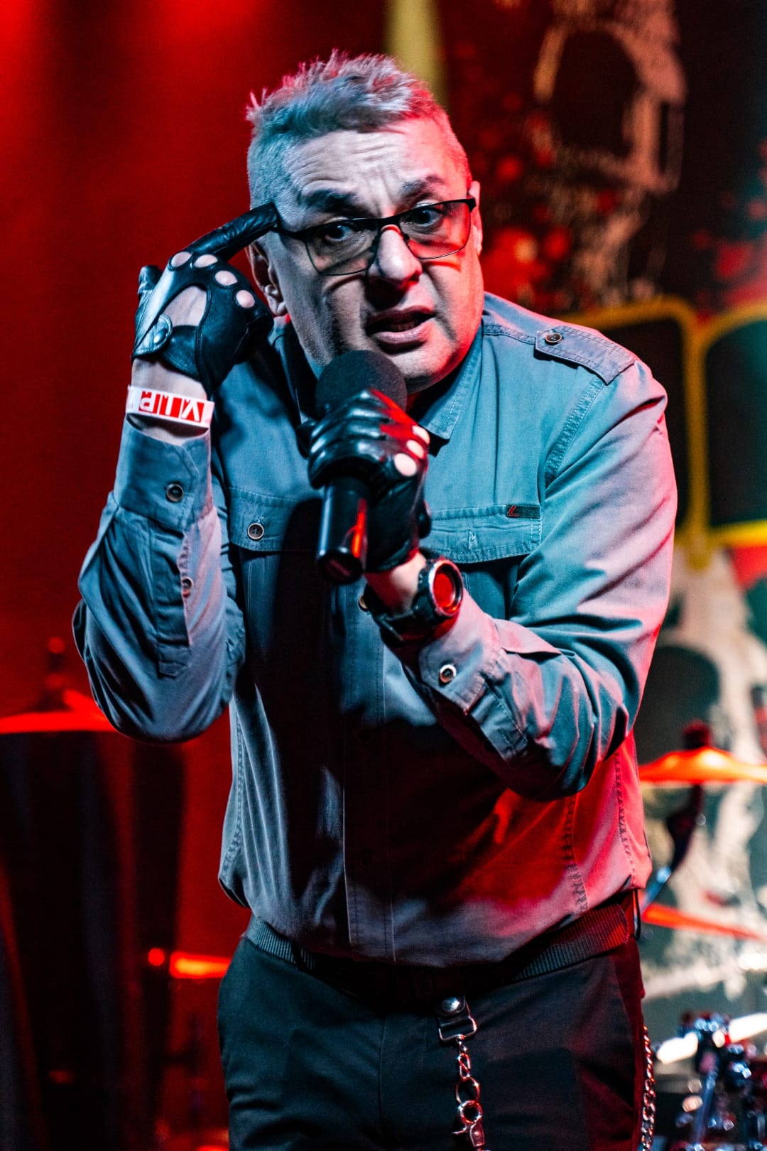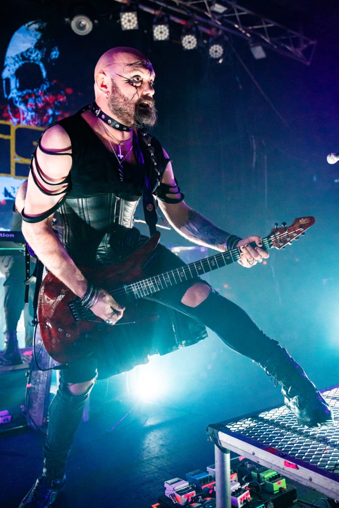 After four hours and five opening bands, it was finally time for Combichrist to hit the stage but the crowd wasn’t tired at all. As soon as they kicked off the set with the newly-released “Planet Doom,” the crowd was jumping and shaking the barricade like mad. Their first release in two years, the Planet Doom EP included a collection of previous releases and singles since their last full album One Fire in 2019. The set included every track off of this new EP, and focused heavily on the last few albums, with a lot more of the industrial metal sound present than their initial “aggrotech” and EBM tracks.