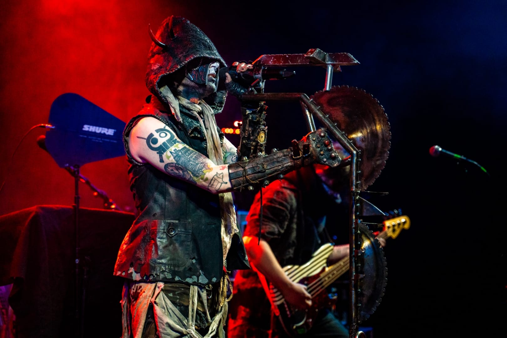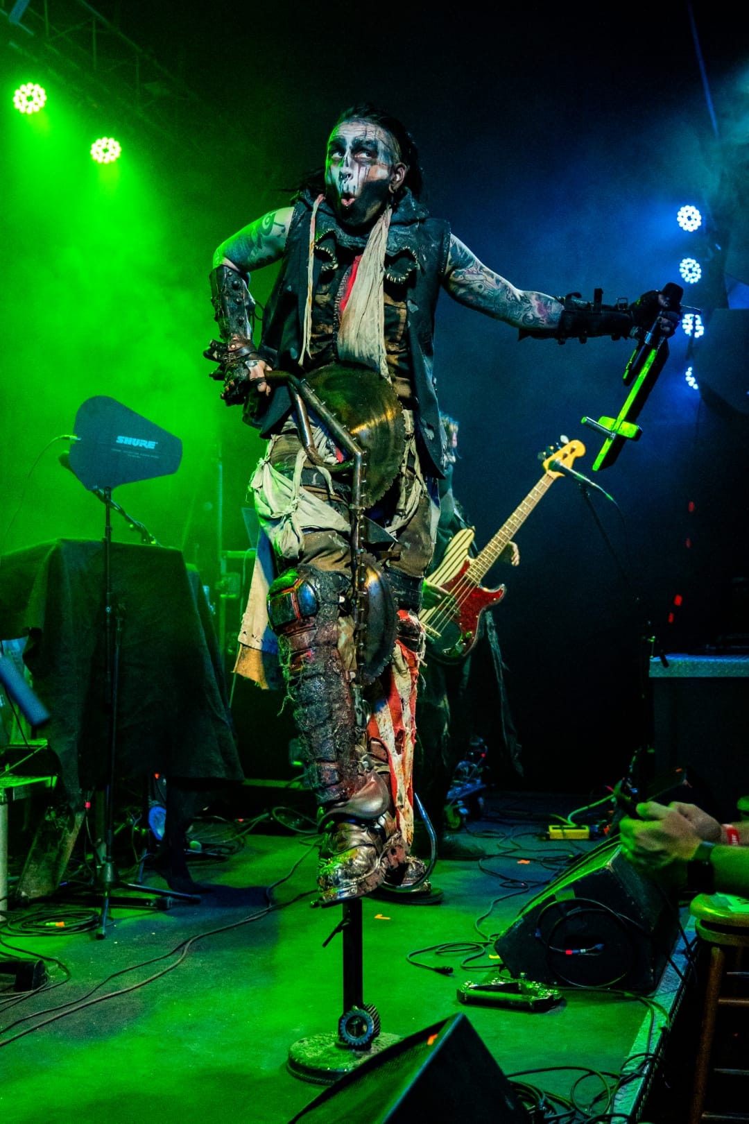 Halfway through the lineup, Dead Animal Assembly Plant took the stage, and things began to feel like the industrial electronic show that the tour had been touting. Aesthetically appearing like a post-apocalyptic, Mad Max horror show, the group ripped through some aggressive tracks that, in a classic punk fashion, threw criticism at the government and modern society. Standout track “Rise With Me” was one such song, focusing on condemnation of the media’s portrayal of violence and school shootings. Visually and musically exciting and entertaining, they had elements of electronic industrial, metal, rap rock, and moments that reminded me of early System of a Down and Marilyn Manson.
